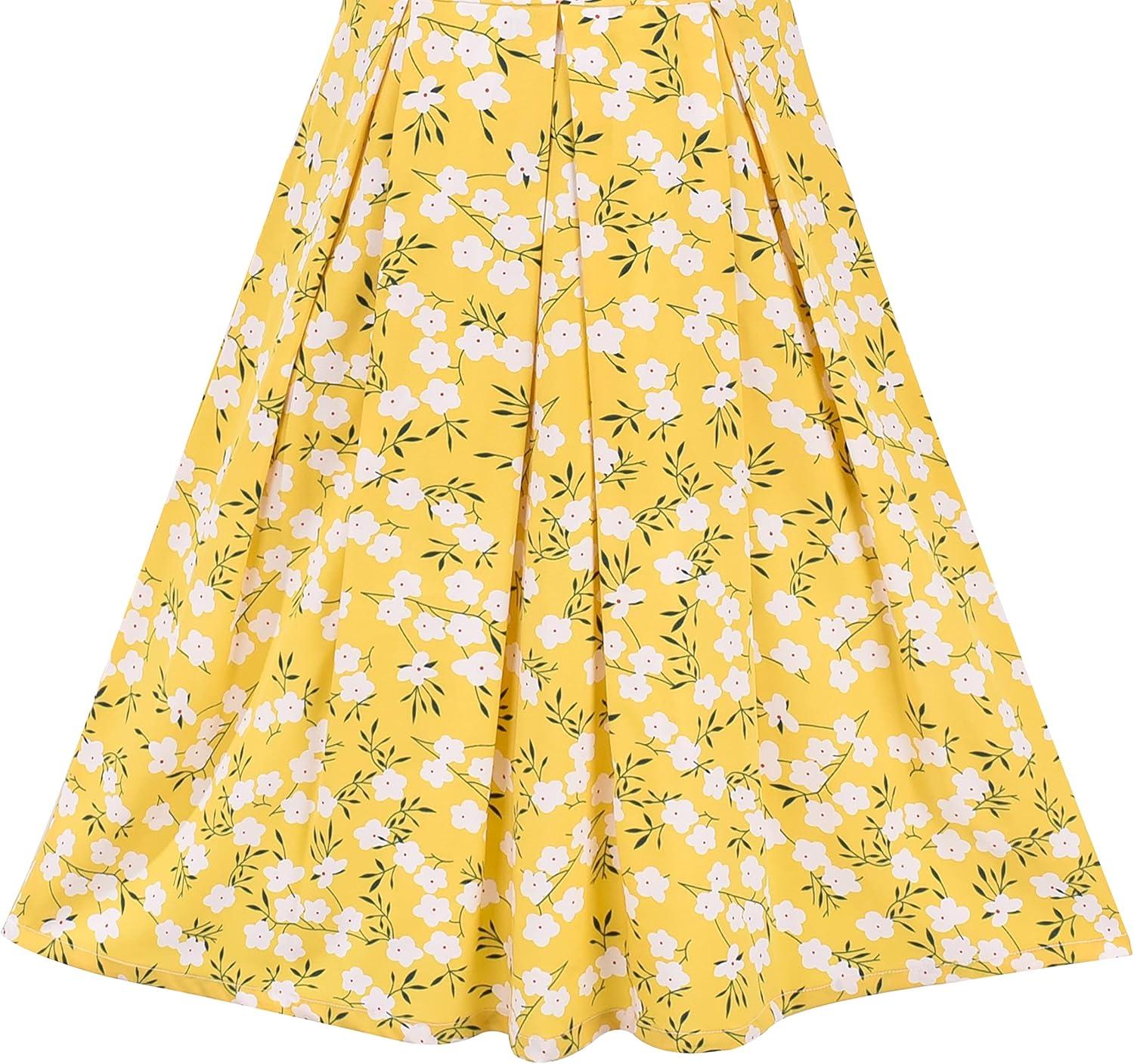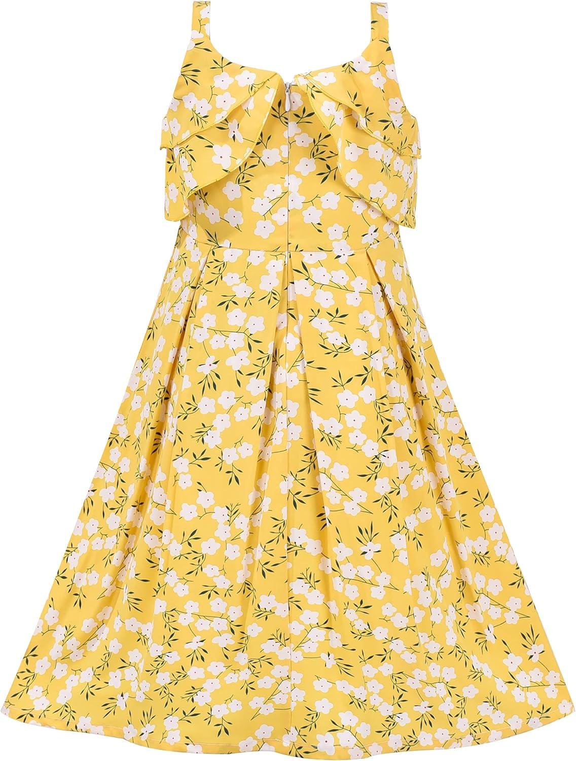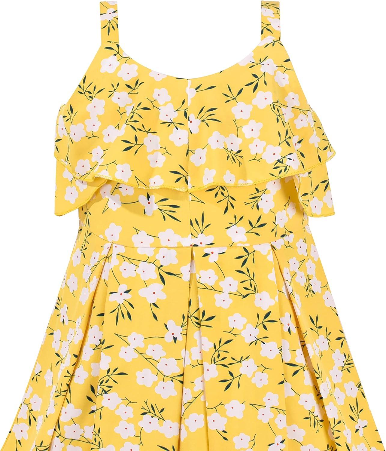 - Sunny Fashion Girls Dress Chiffon Suspender Yellow Floral Ruffle Sleeveless(Yellow Flower)