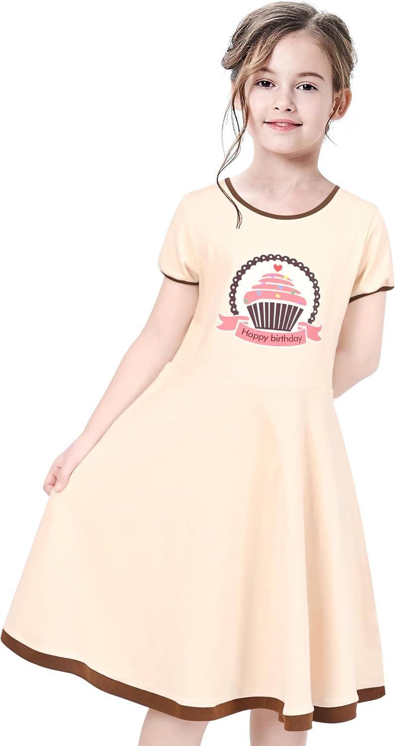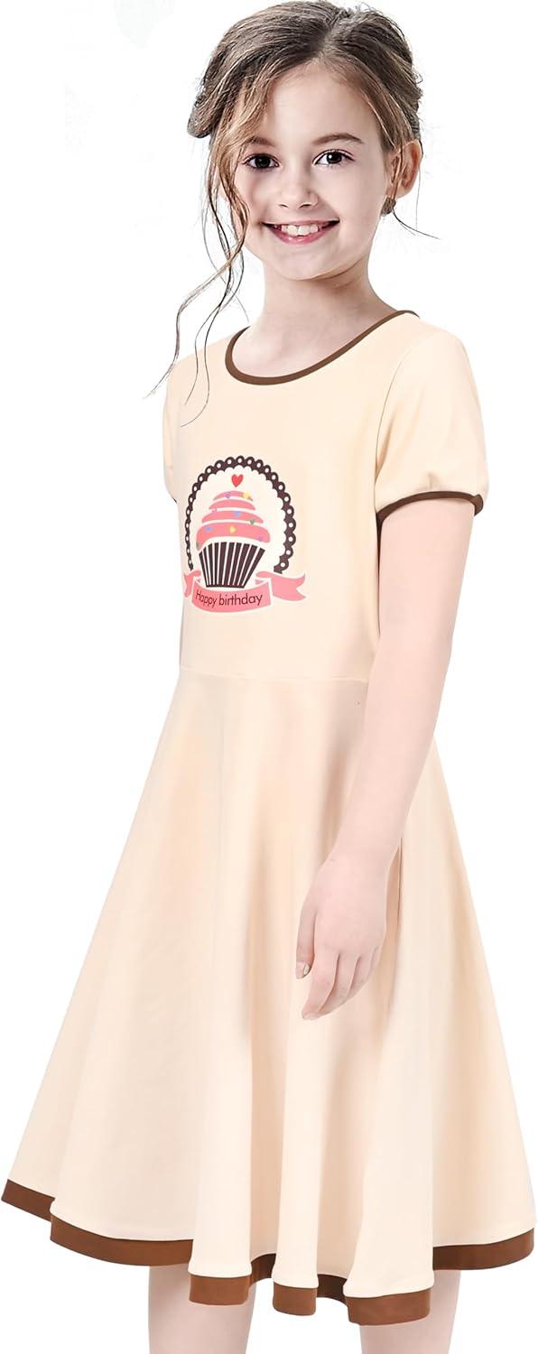 - Sunny Fashion Girls Dress Cat Face Black Tower Ruffle Dancing Party Size 4-10(Ivory White)