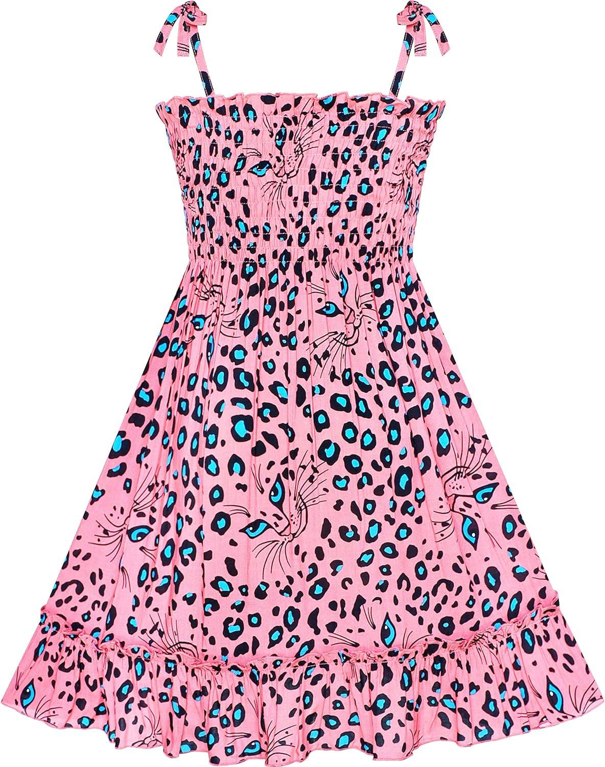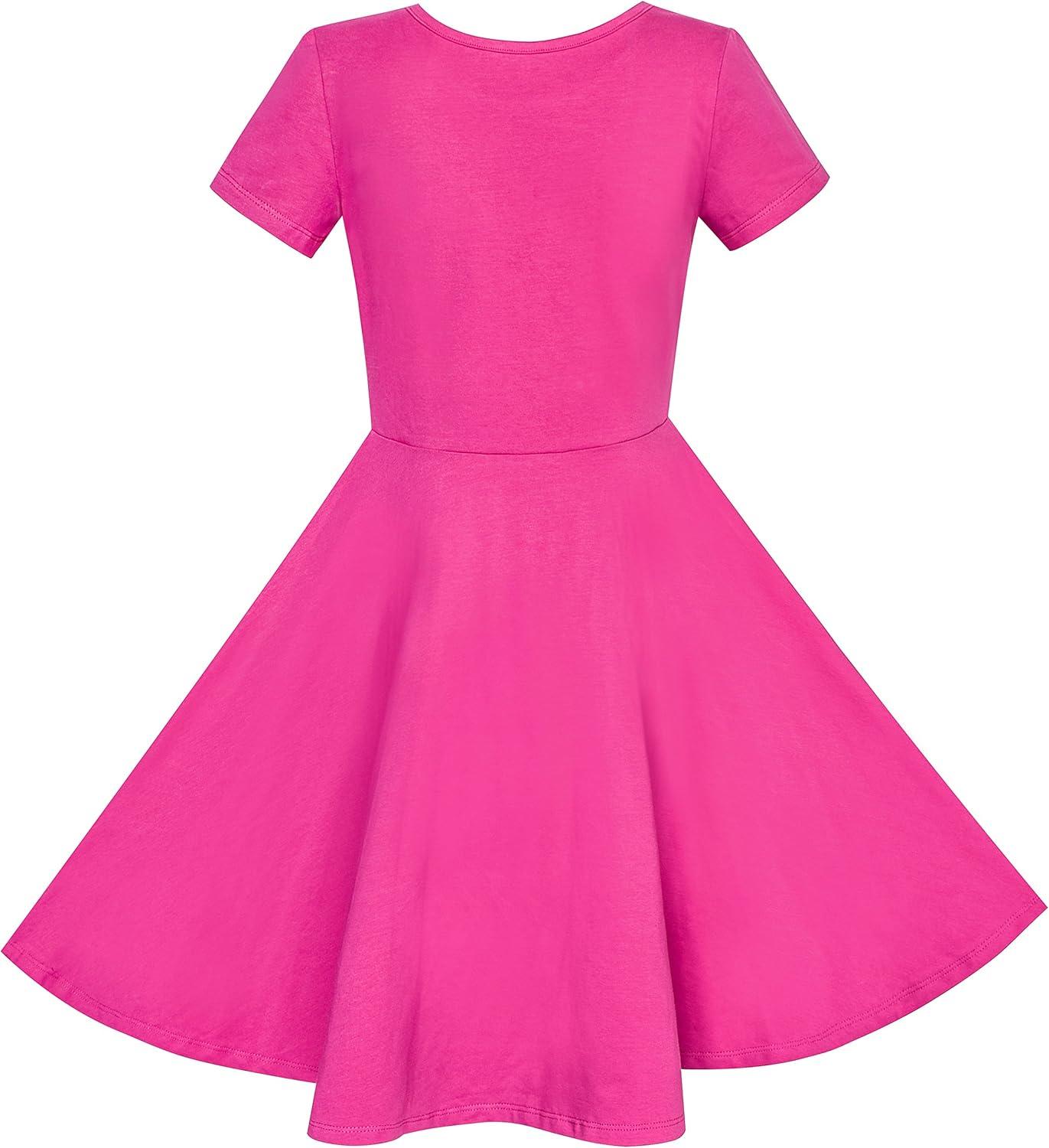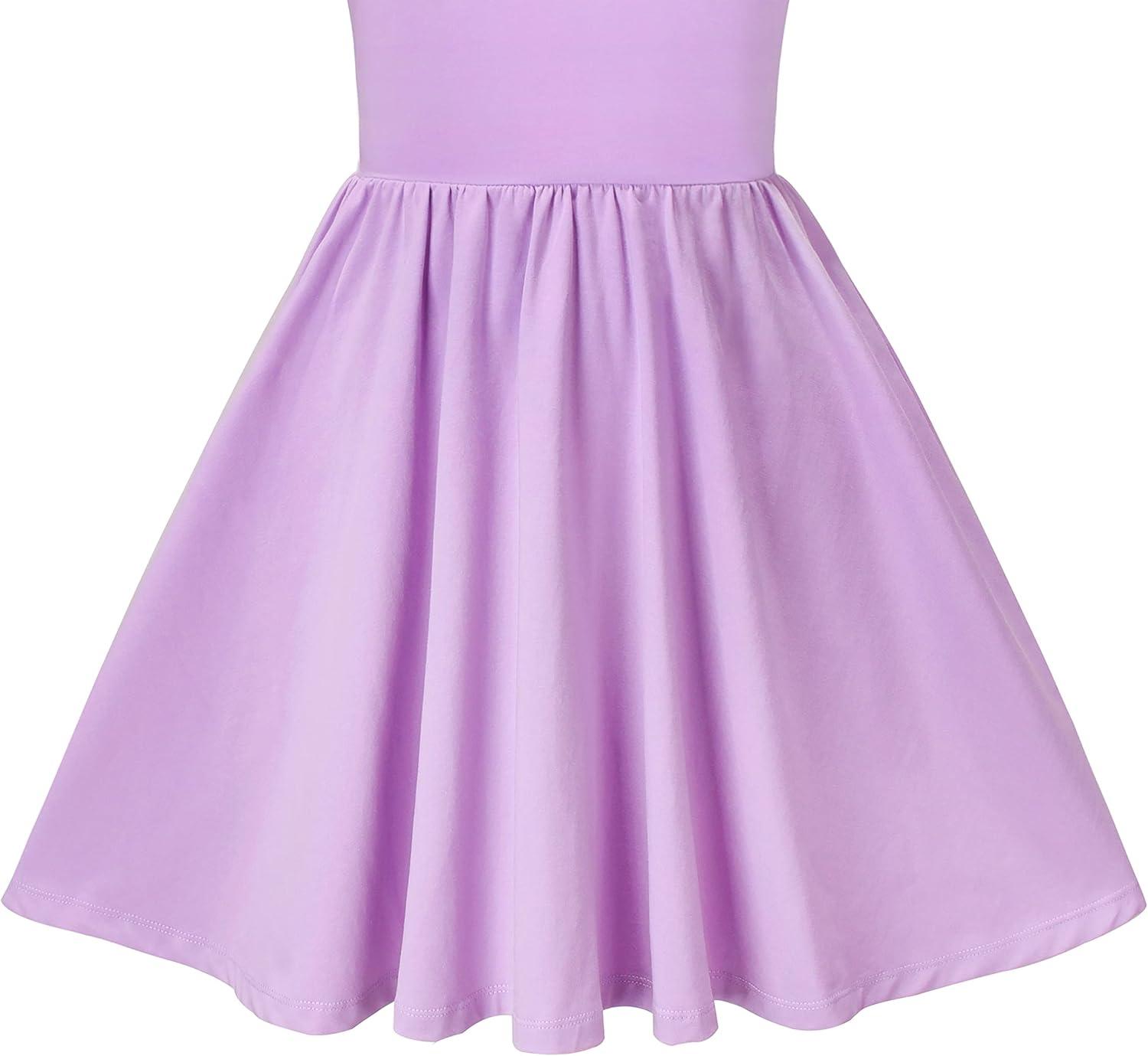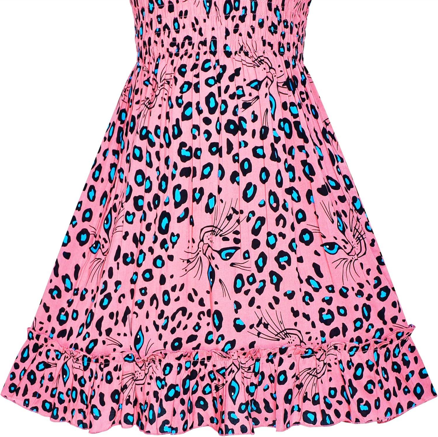 - Sunny Fashion Girls Dress Cotton Flower Square Collar A Line Ruffle Flare(Pink 2)