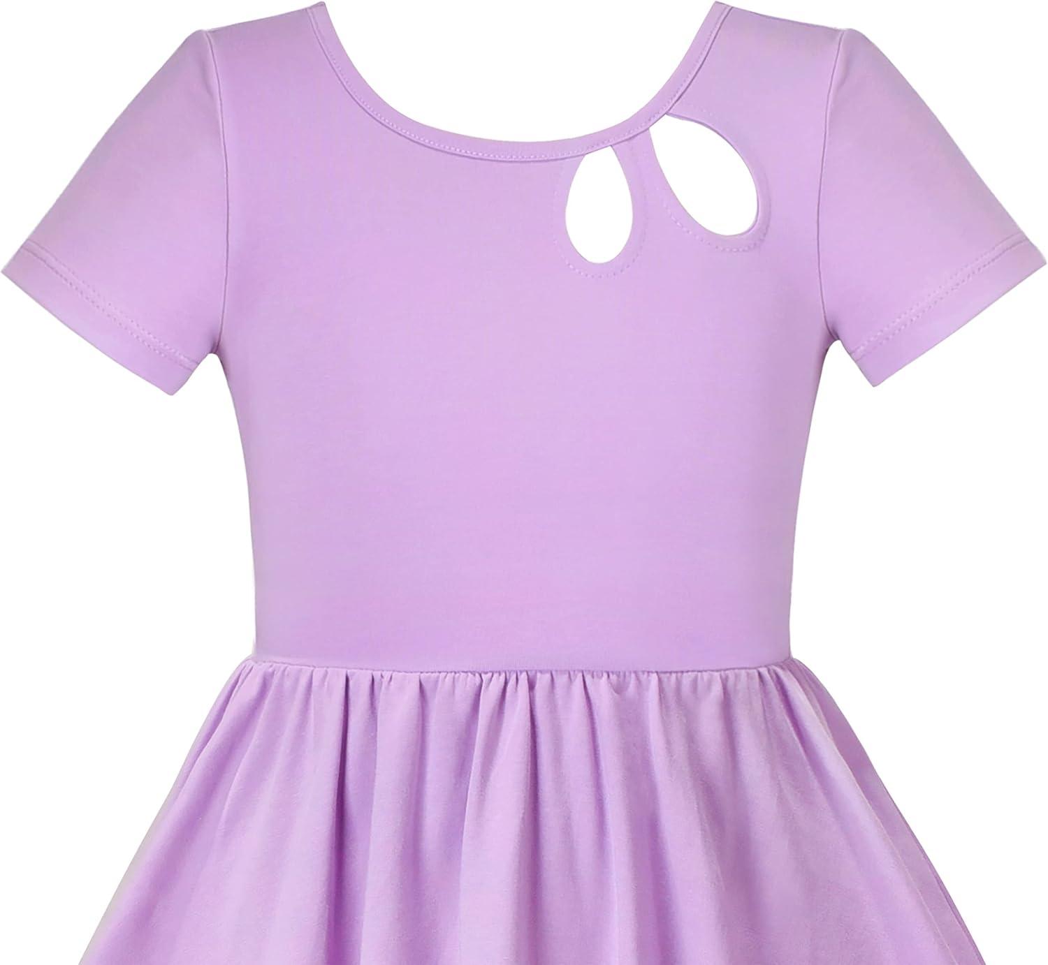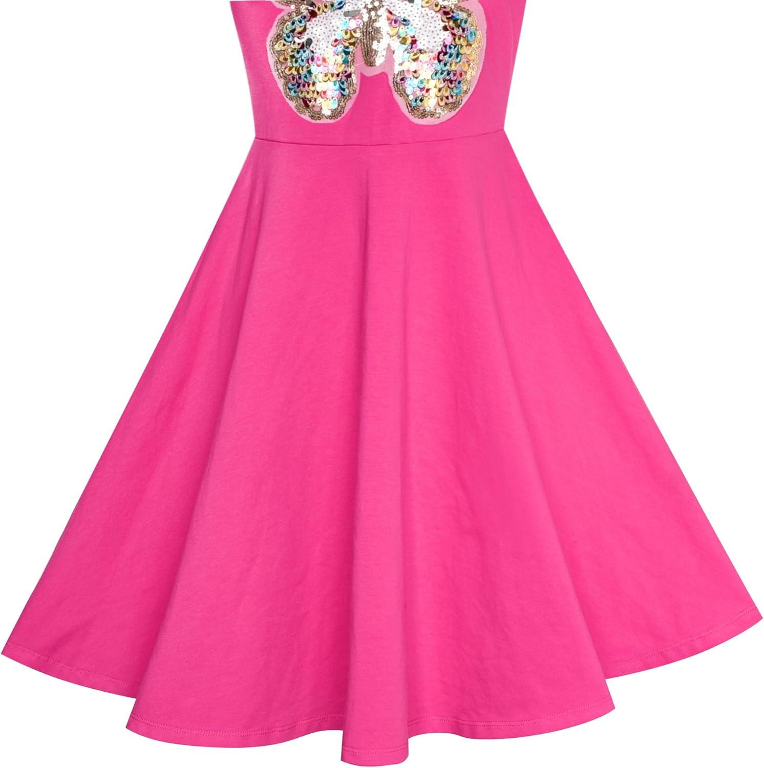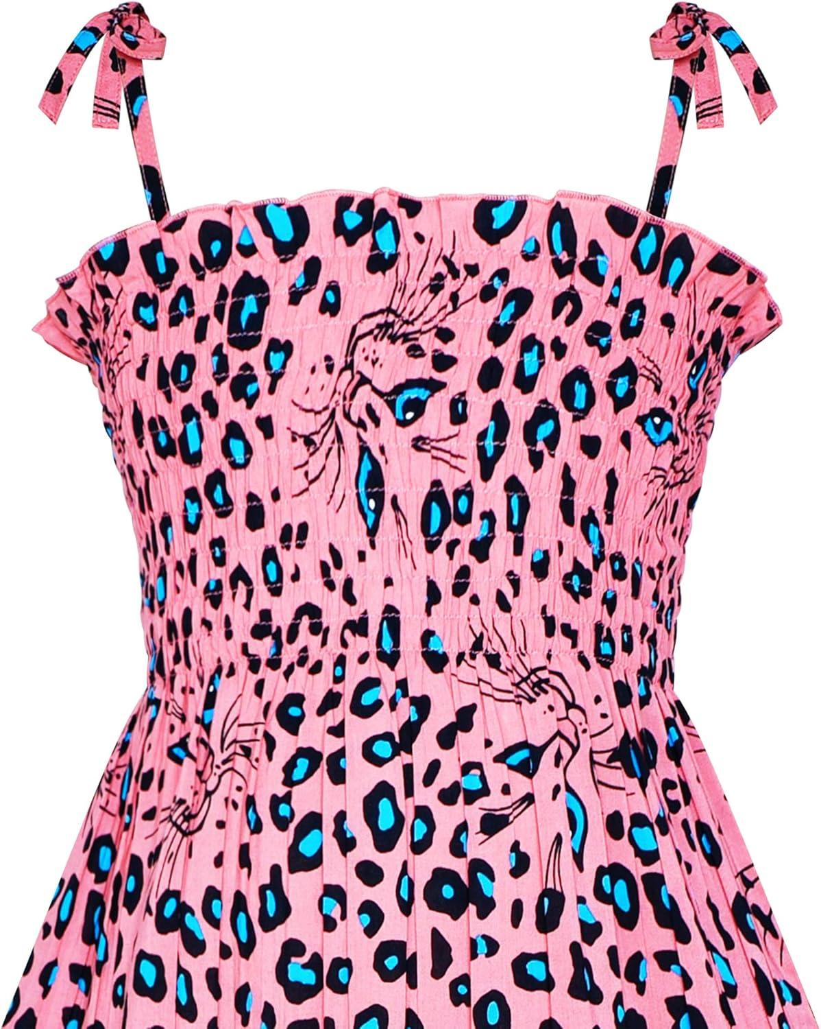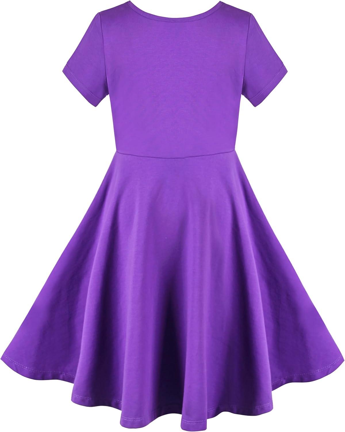 - Sunny Fashion Girls Dress Cotton Flower Square Collar A Line Ruffle Flare(Pink 2)
