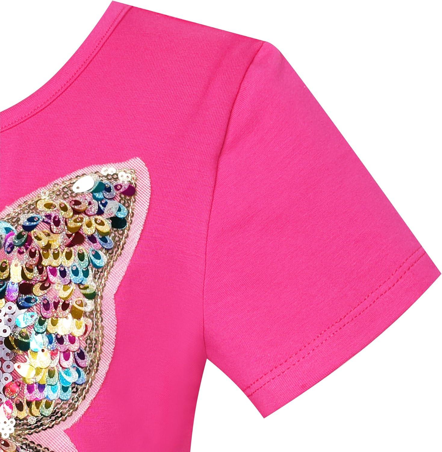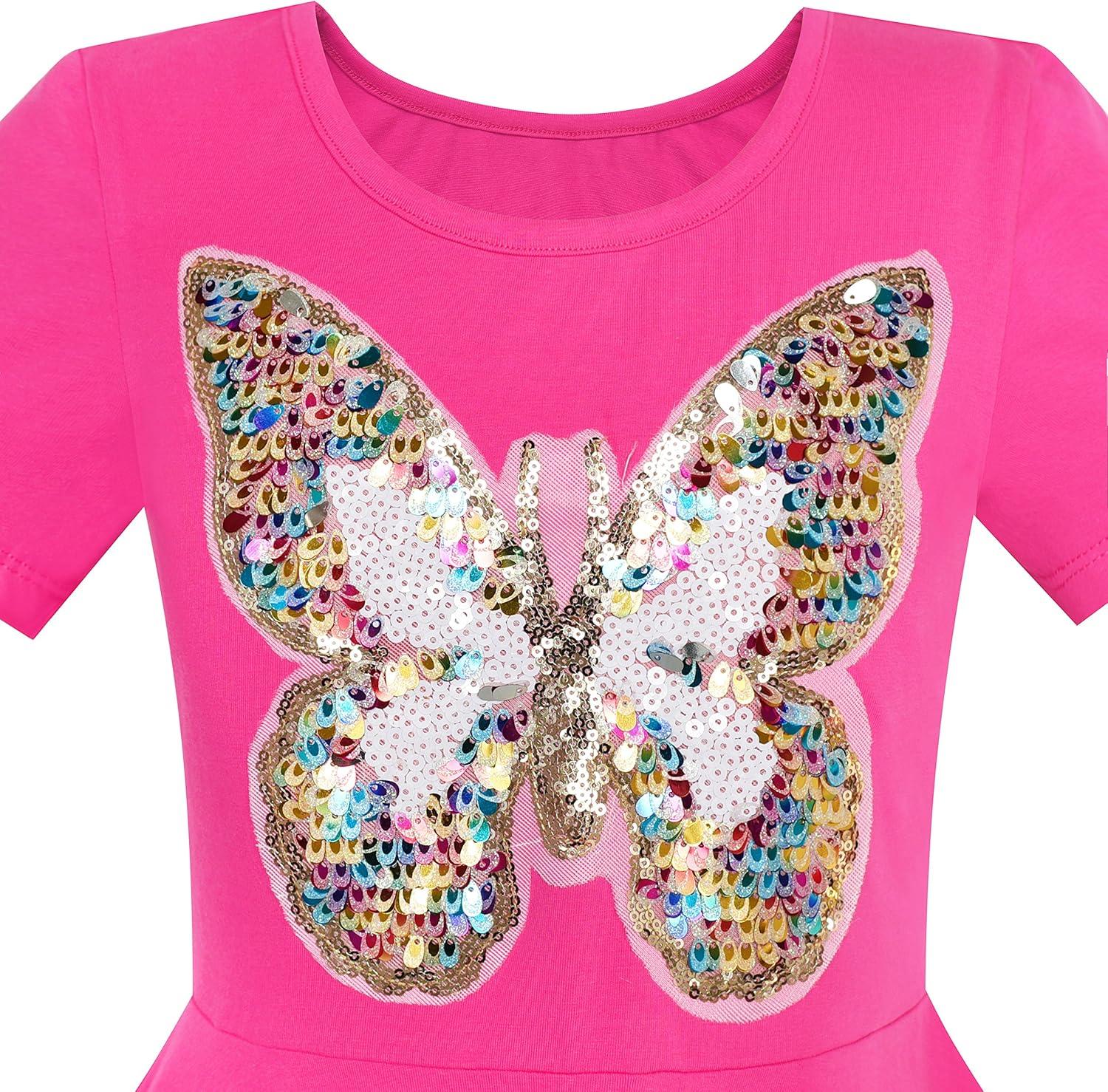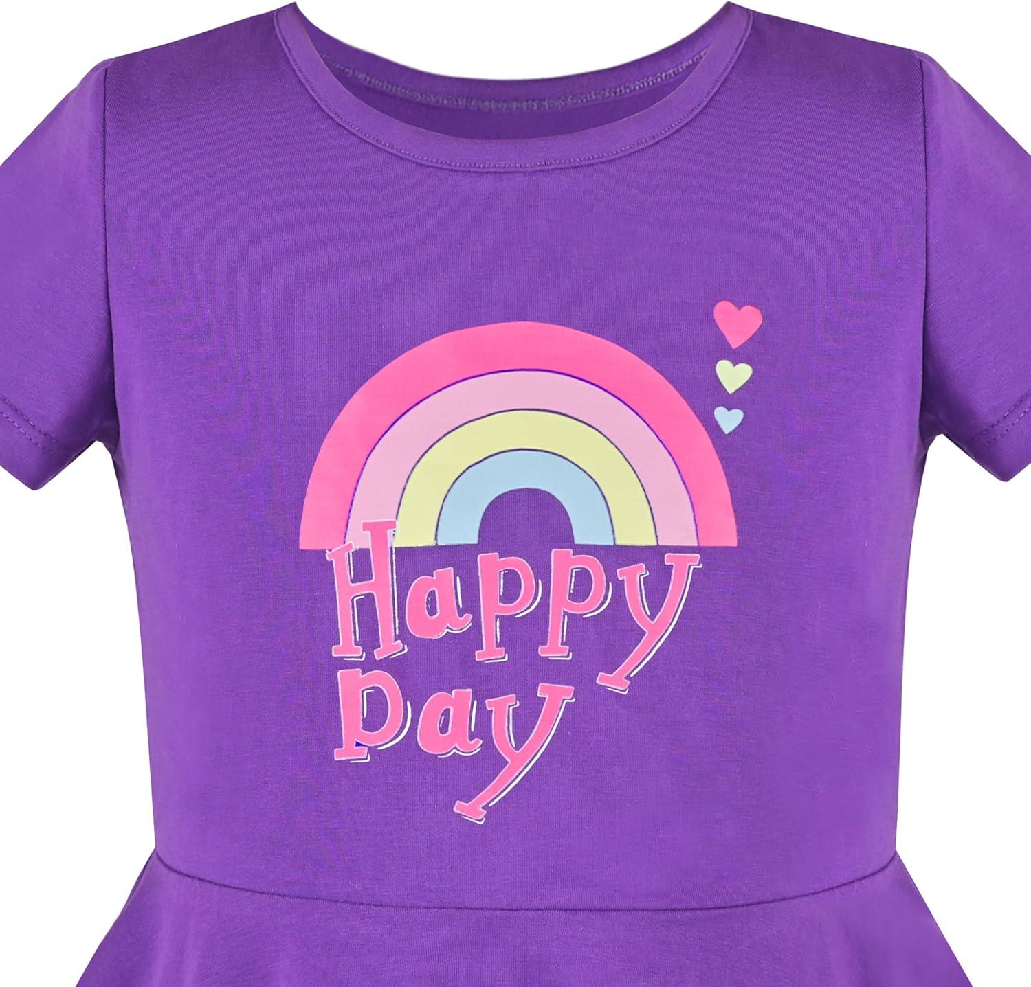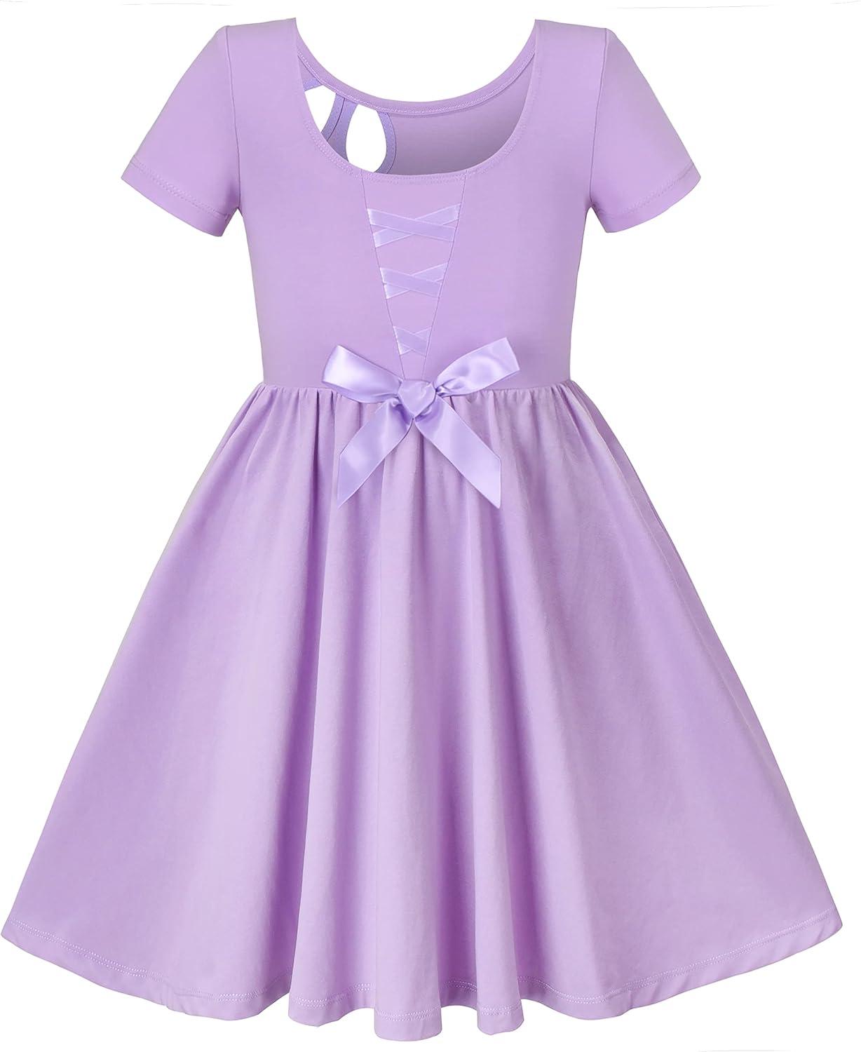 - Sunny Fashion Girls Dress Cotton Flower Square Collar A Line Ruffle Flare(Pink 2)