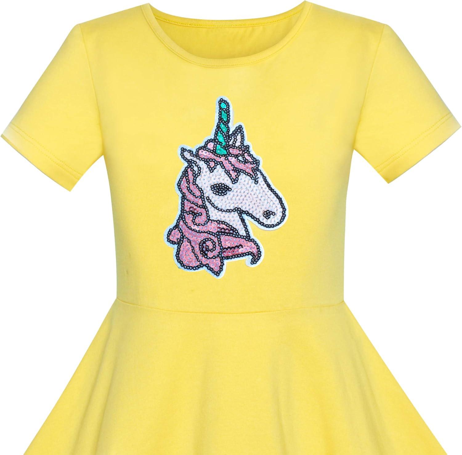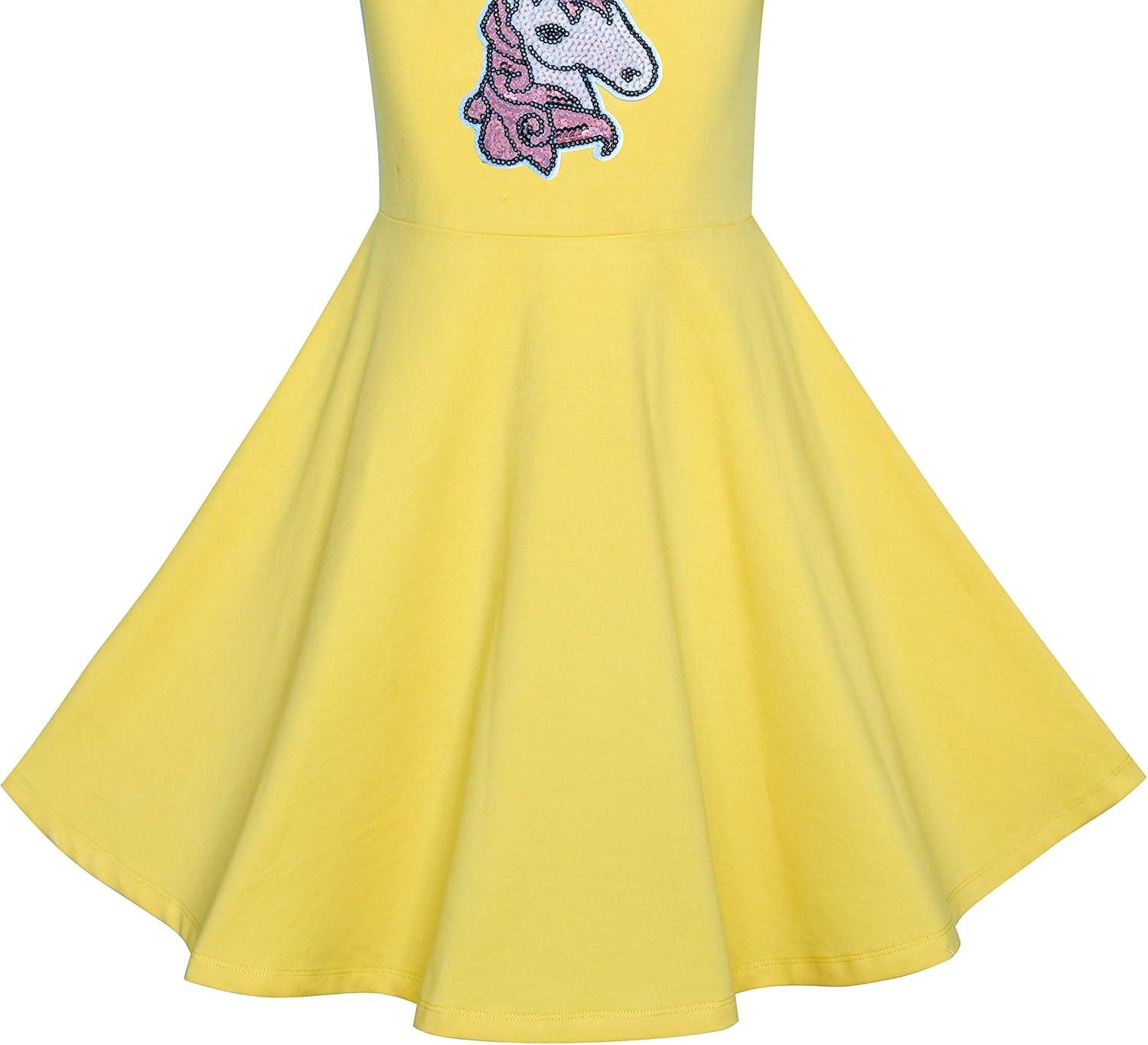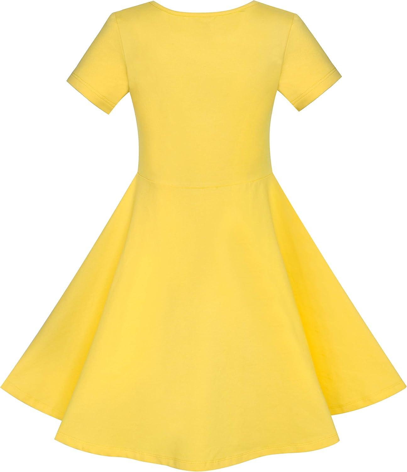 - Sunny Fashion Girls Dress Cotton Flower Square Collar A Line Ruffle Flare(Yellow Blue)