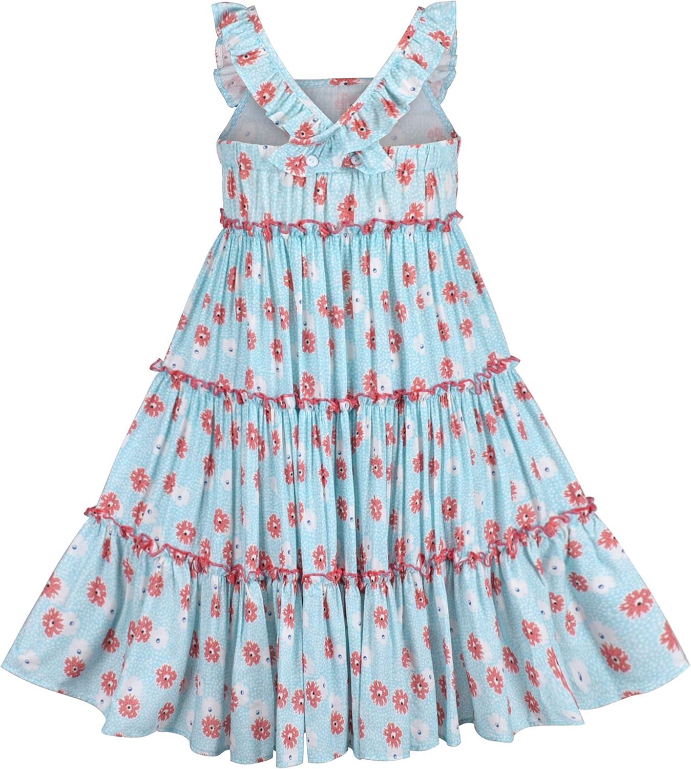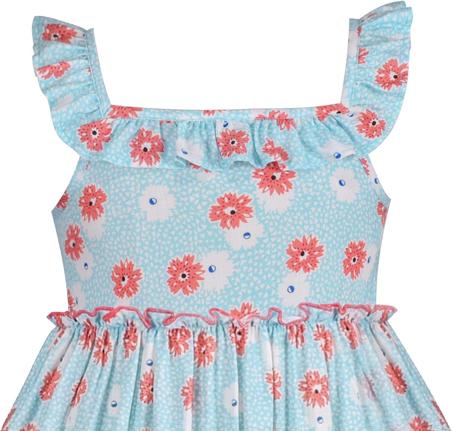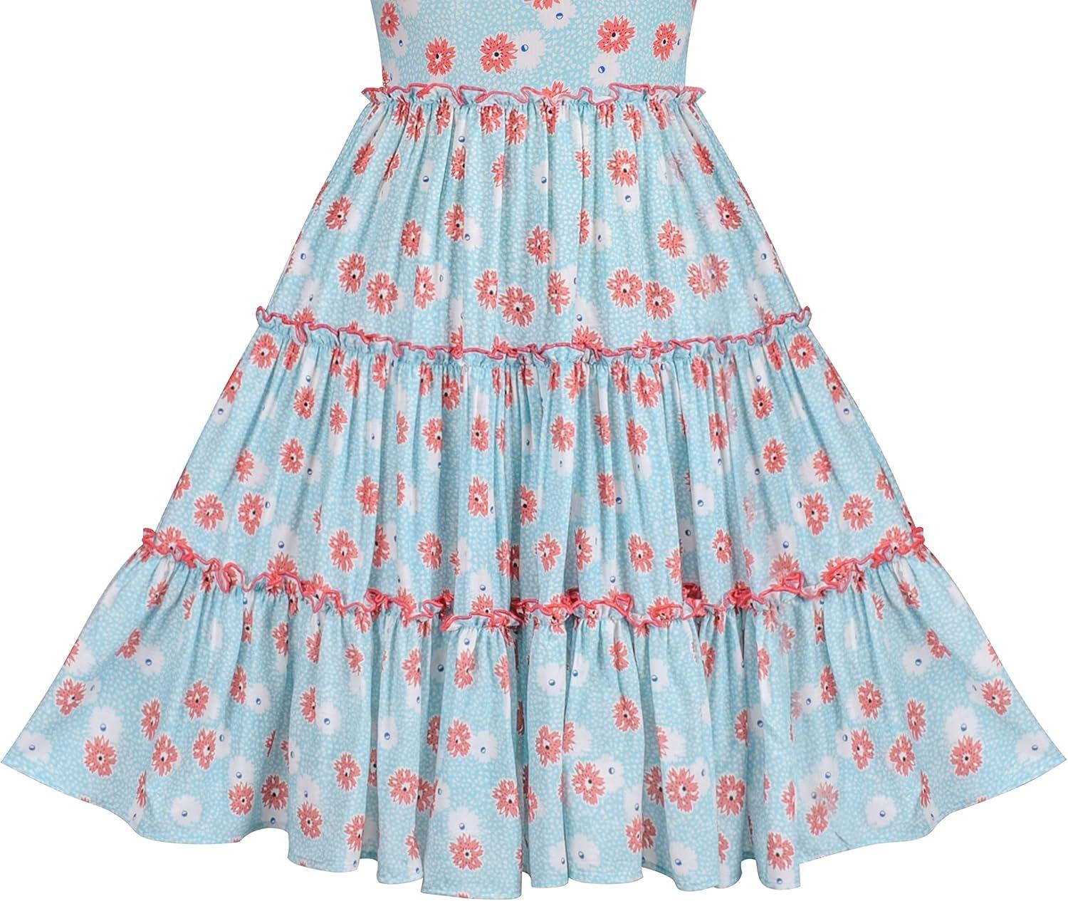 - Sunny Fashion Girls Dress Cotton Flower Square Collar A Line Ruffle Flare(Blue Flower)