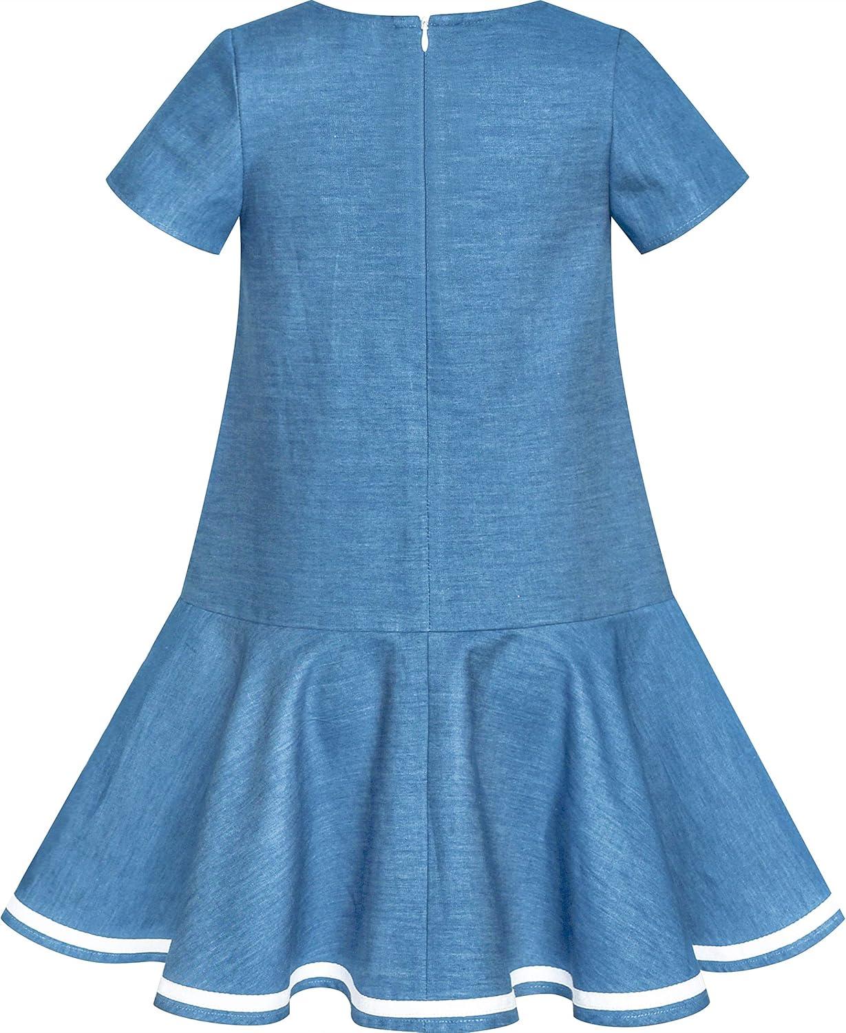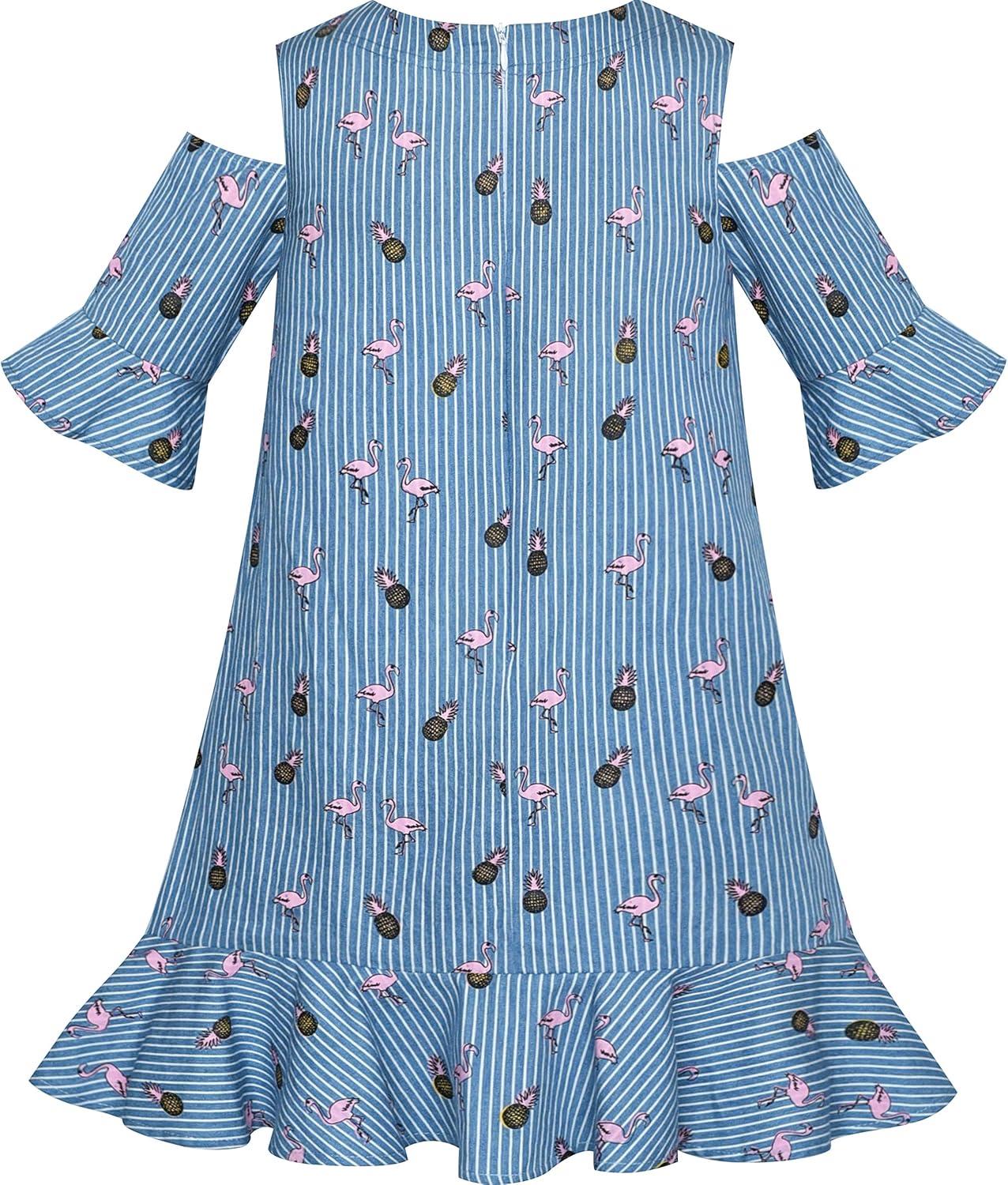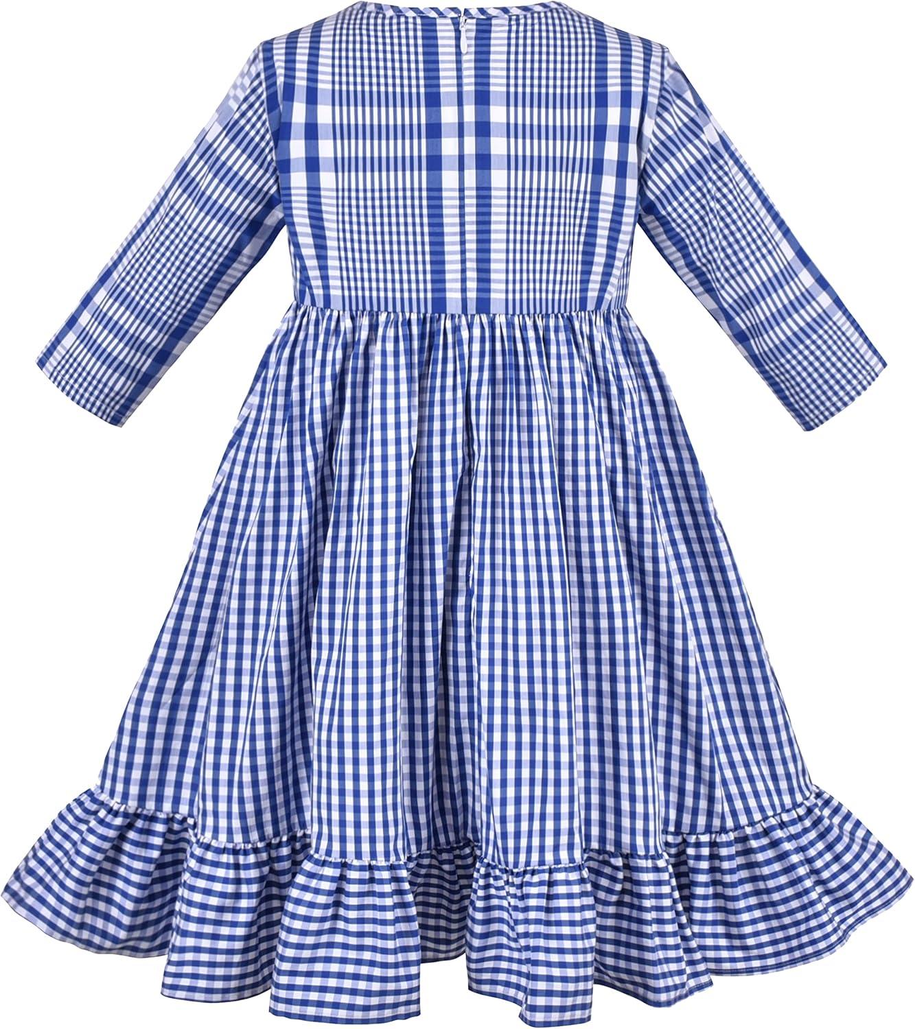- Sunny Fashion Girls Dress Cotton Flower Square Collar A Line Ruffle Flare(Blue Flower)