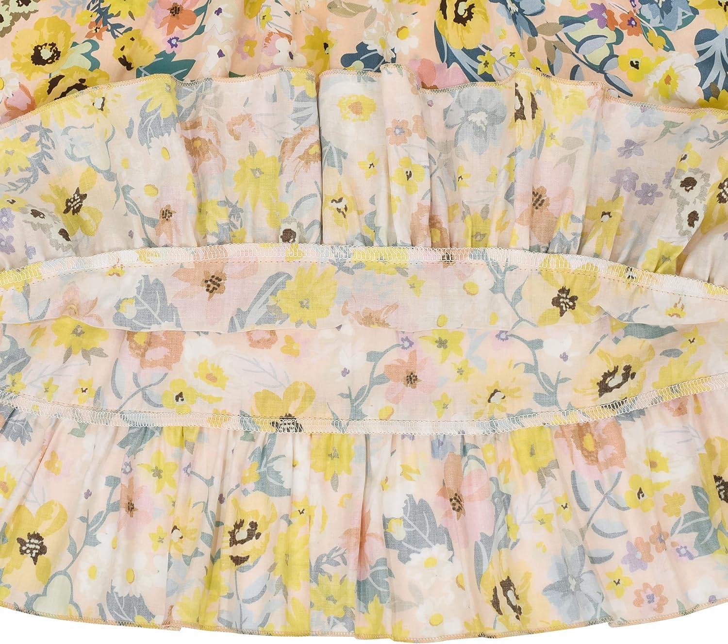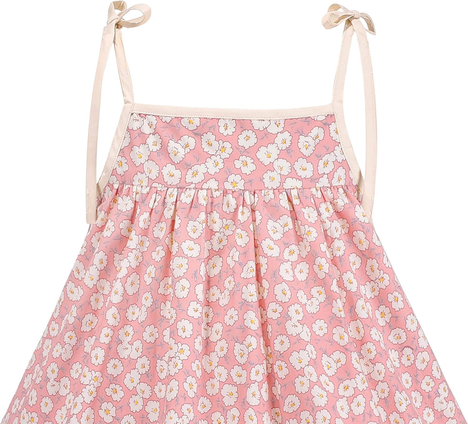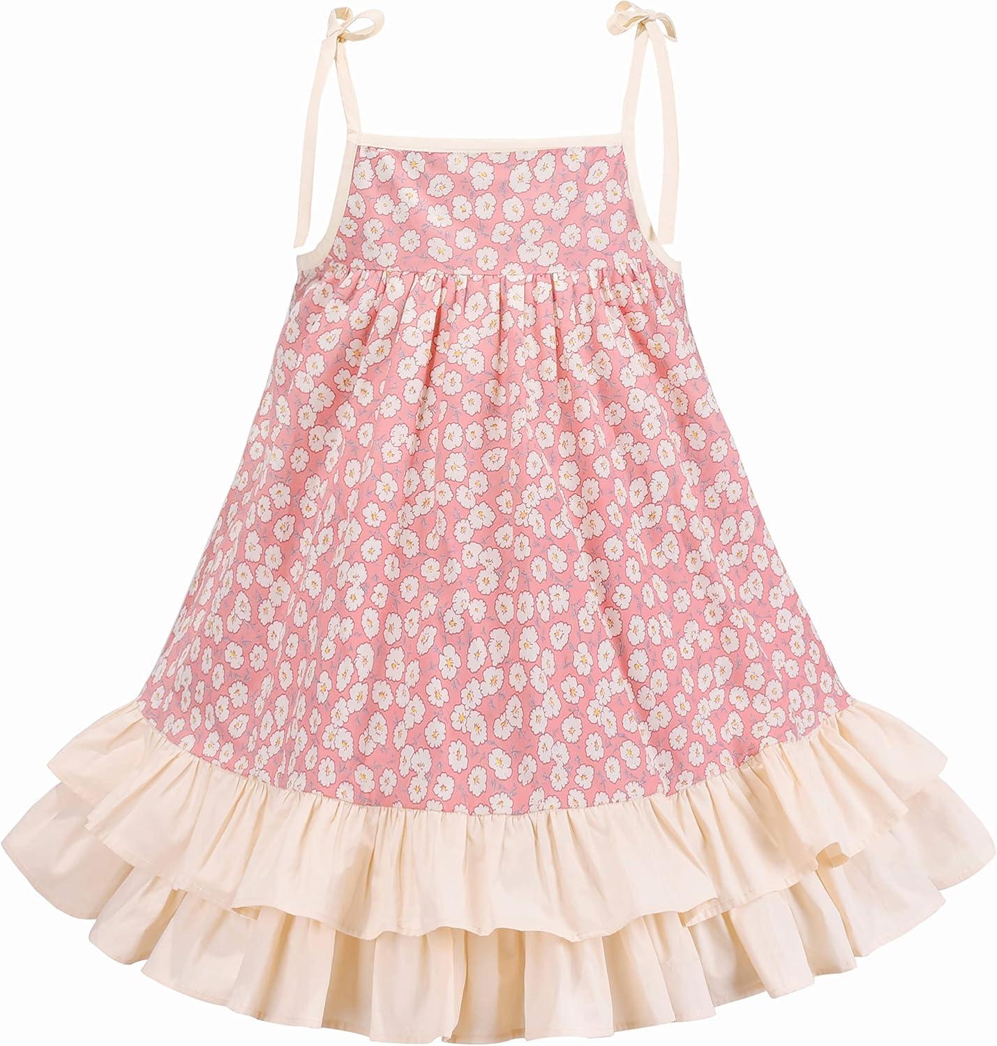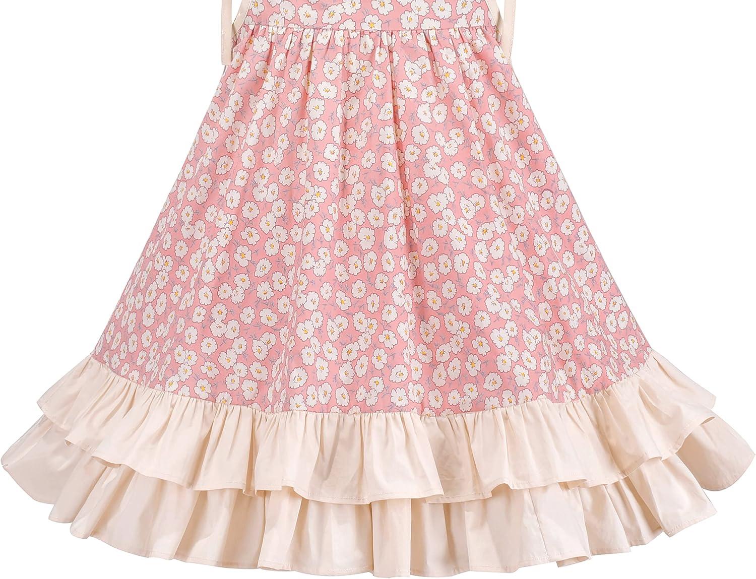 - Sunny Fashion Girls Dress Cotton Flower Square Collar A Line Ruffle Flare(Pink Beige Flower)