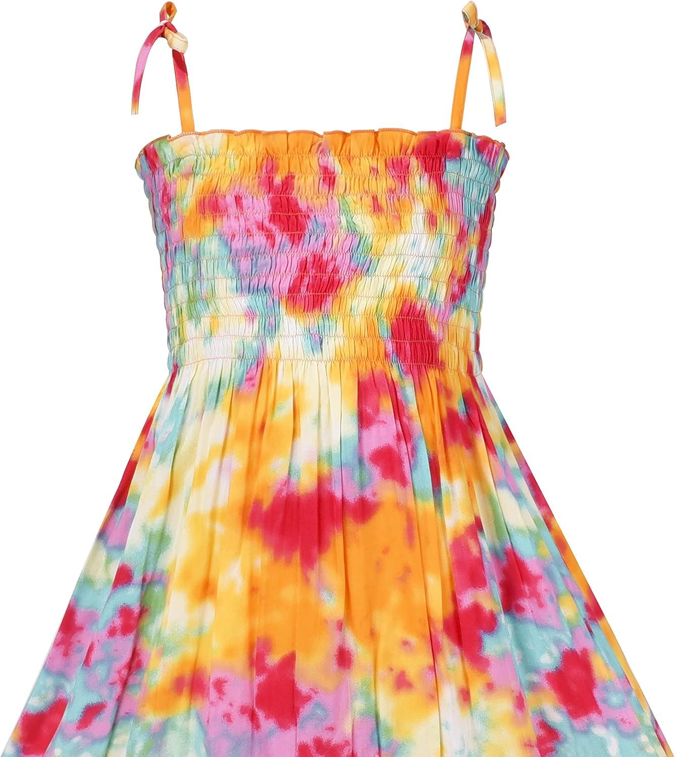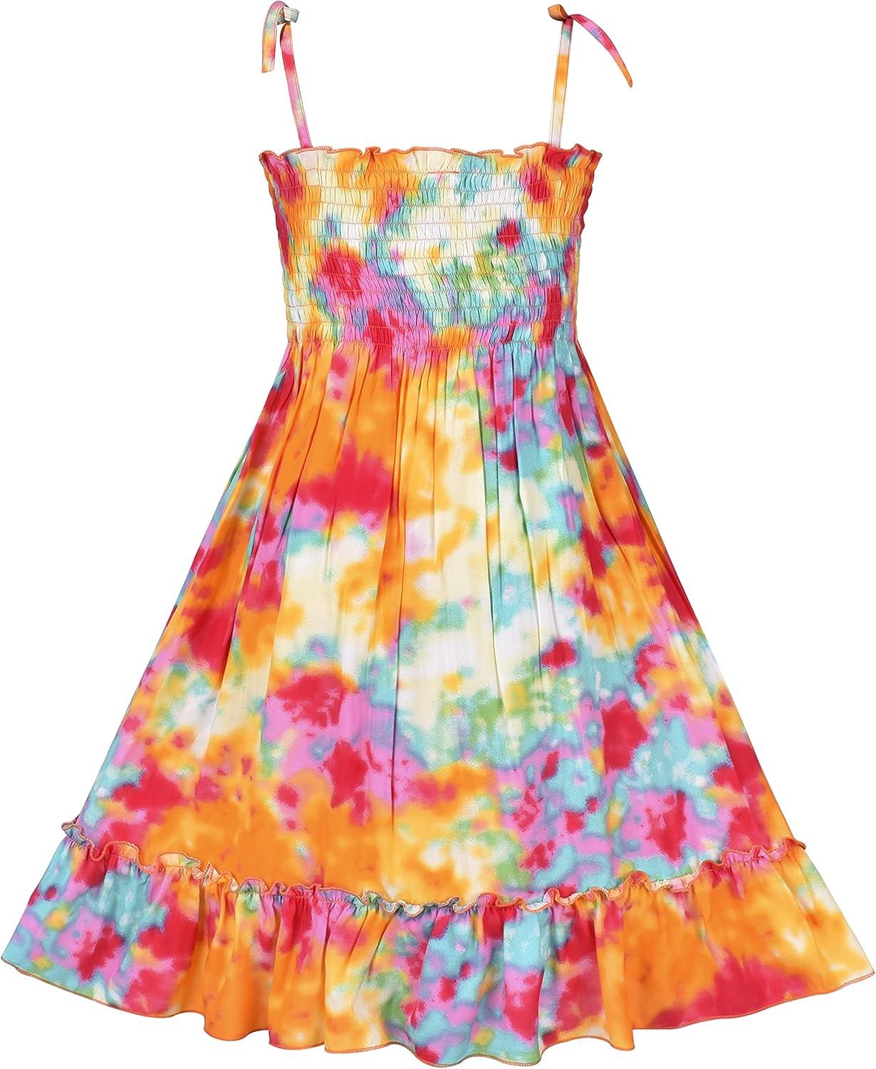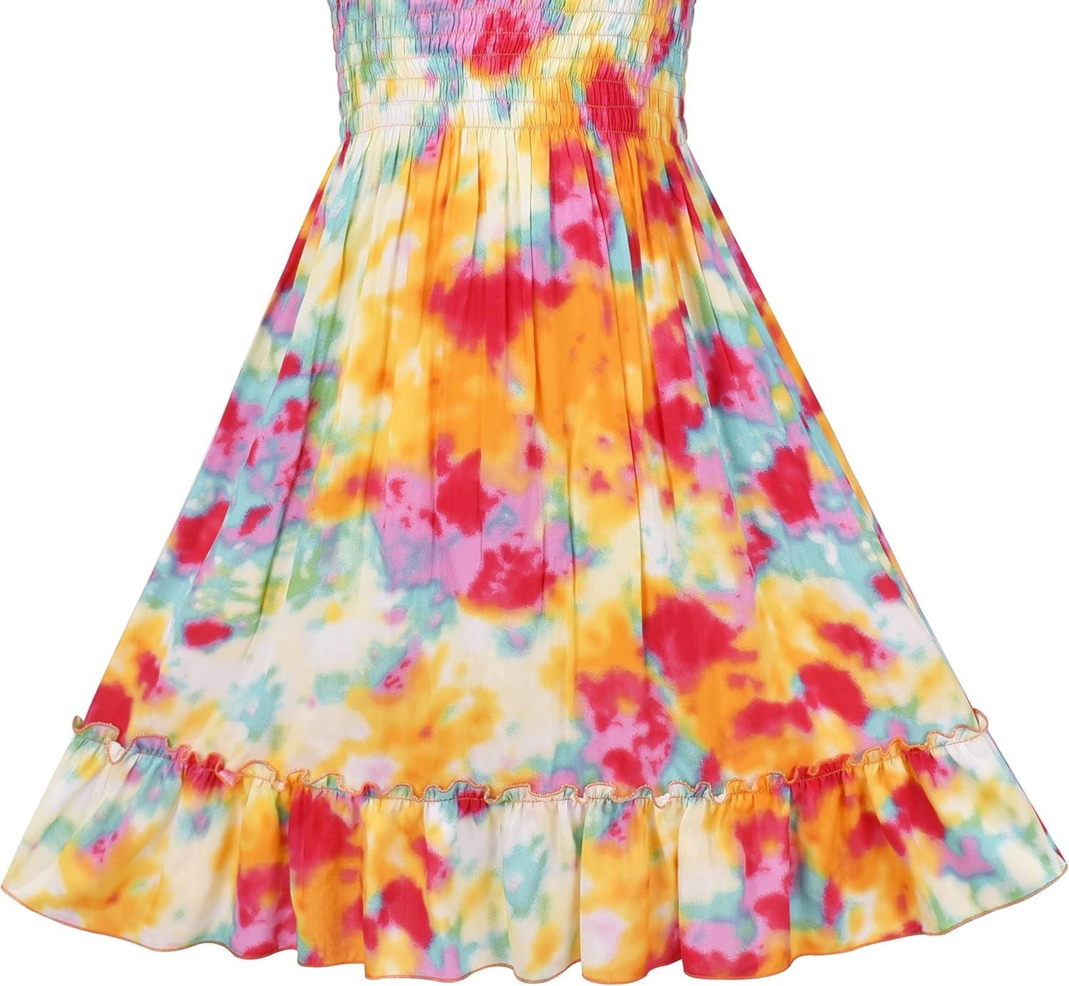 - Sunny Fashion Girls Dress Cotton Flower Square Collar A Line Ruffle Flare(Multi-color)