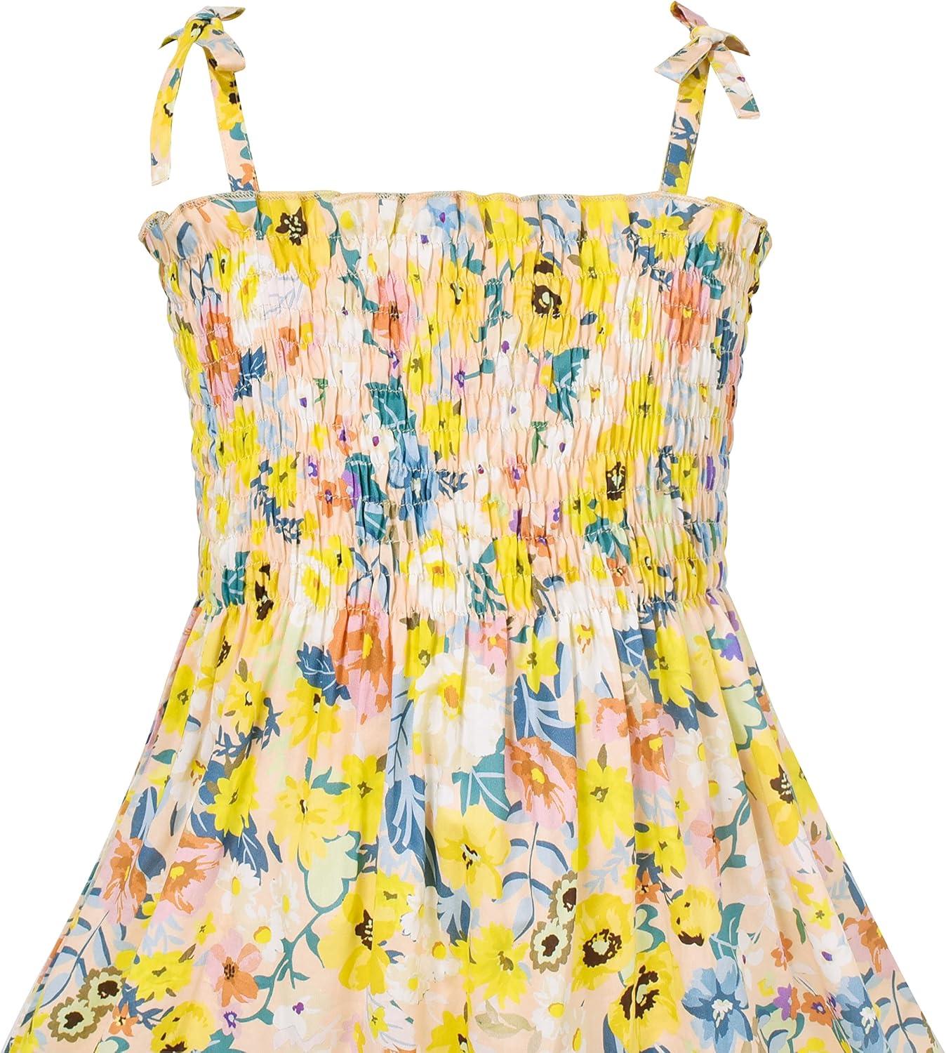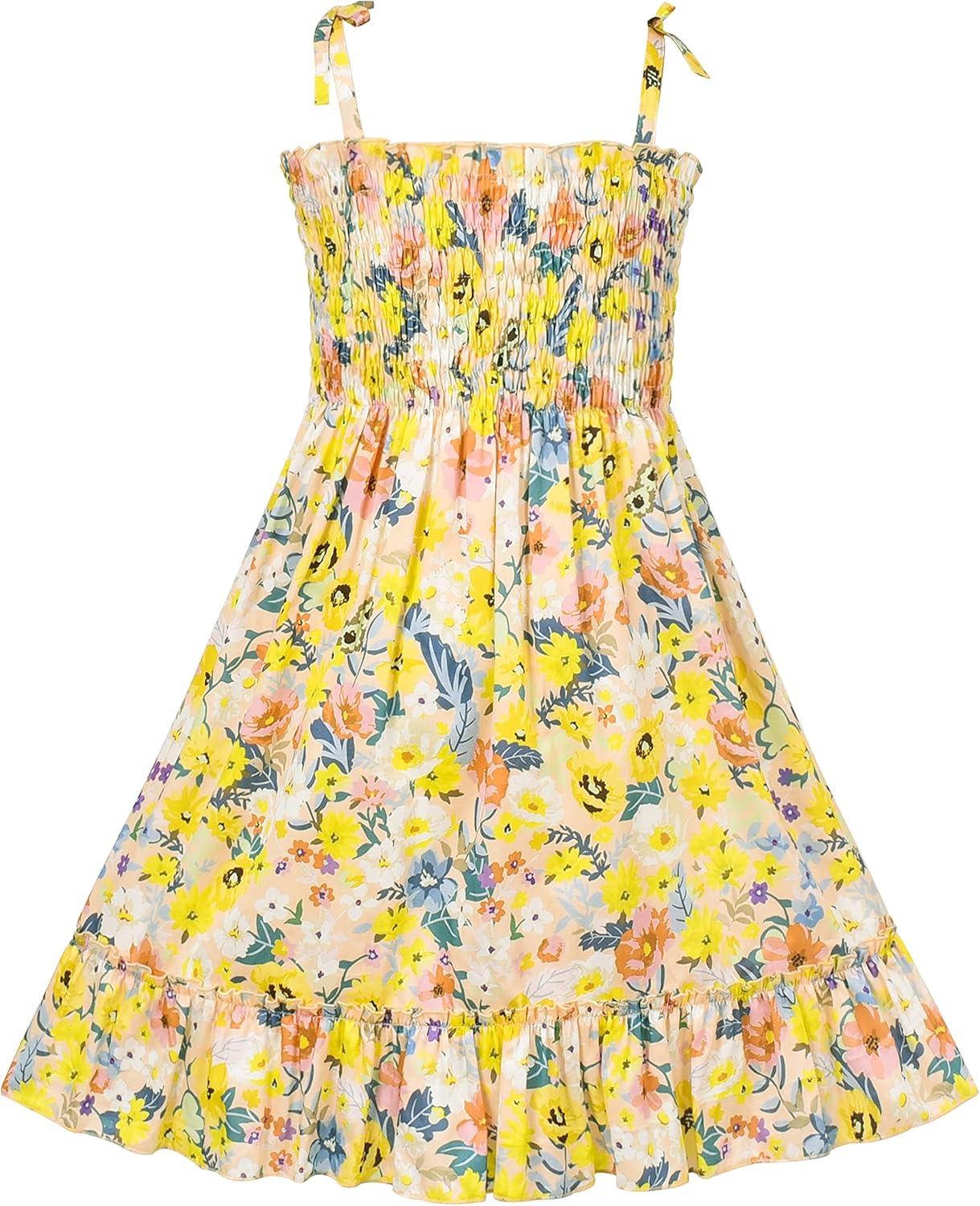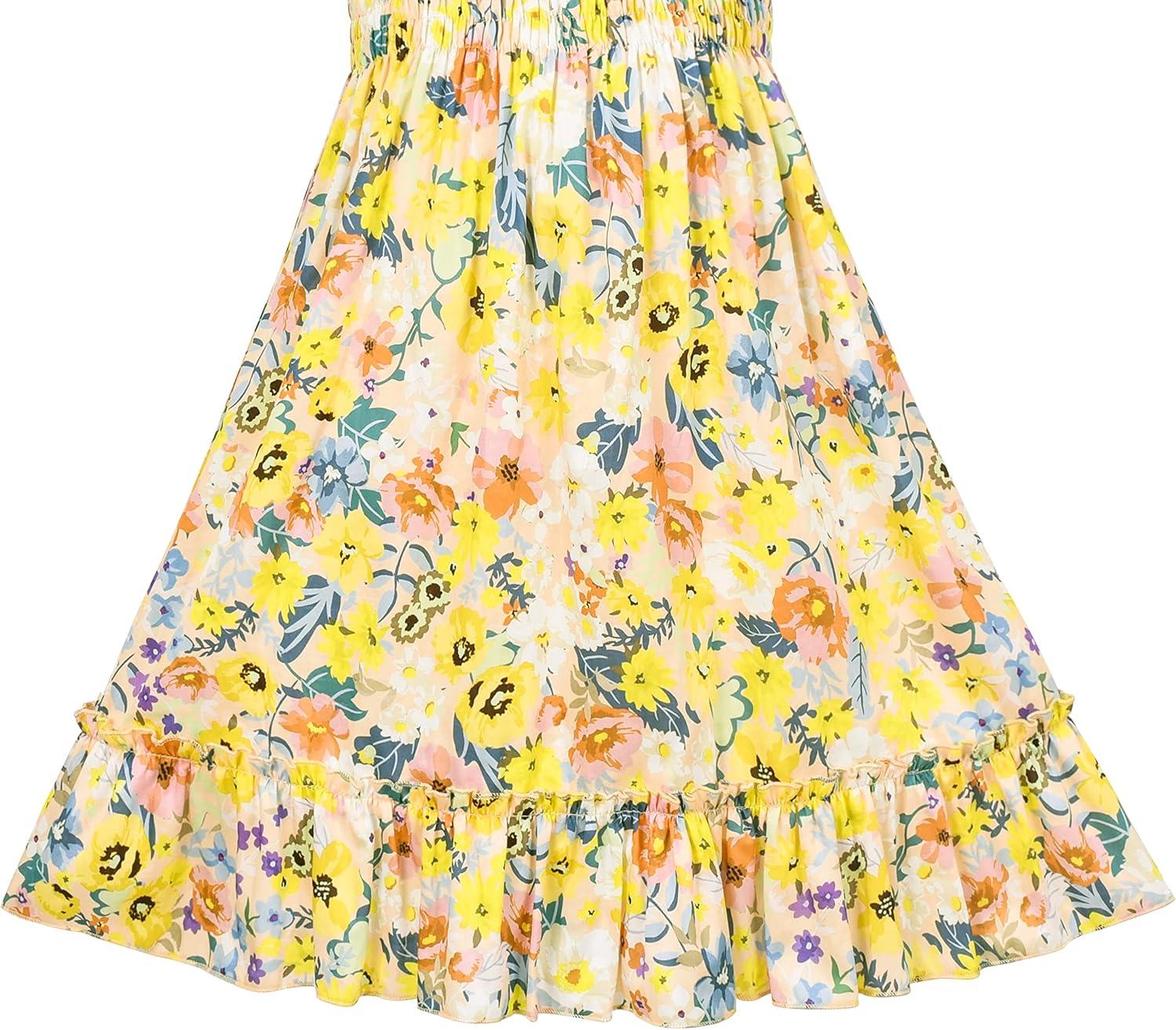- Sunny Fashion Girls Dress Cotton Flower Square Collar A Line Ruffle Flare(Yellow Blue Flower)