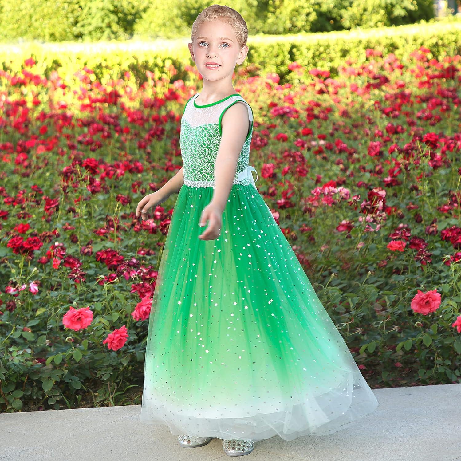 Sunny Fashion Girls Dress Flower Lace Top Burgundy Gradient Skirt Sleeveless(Green)