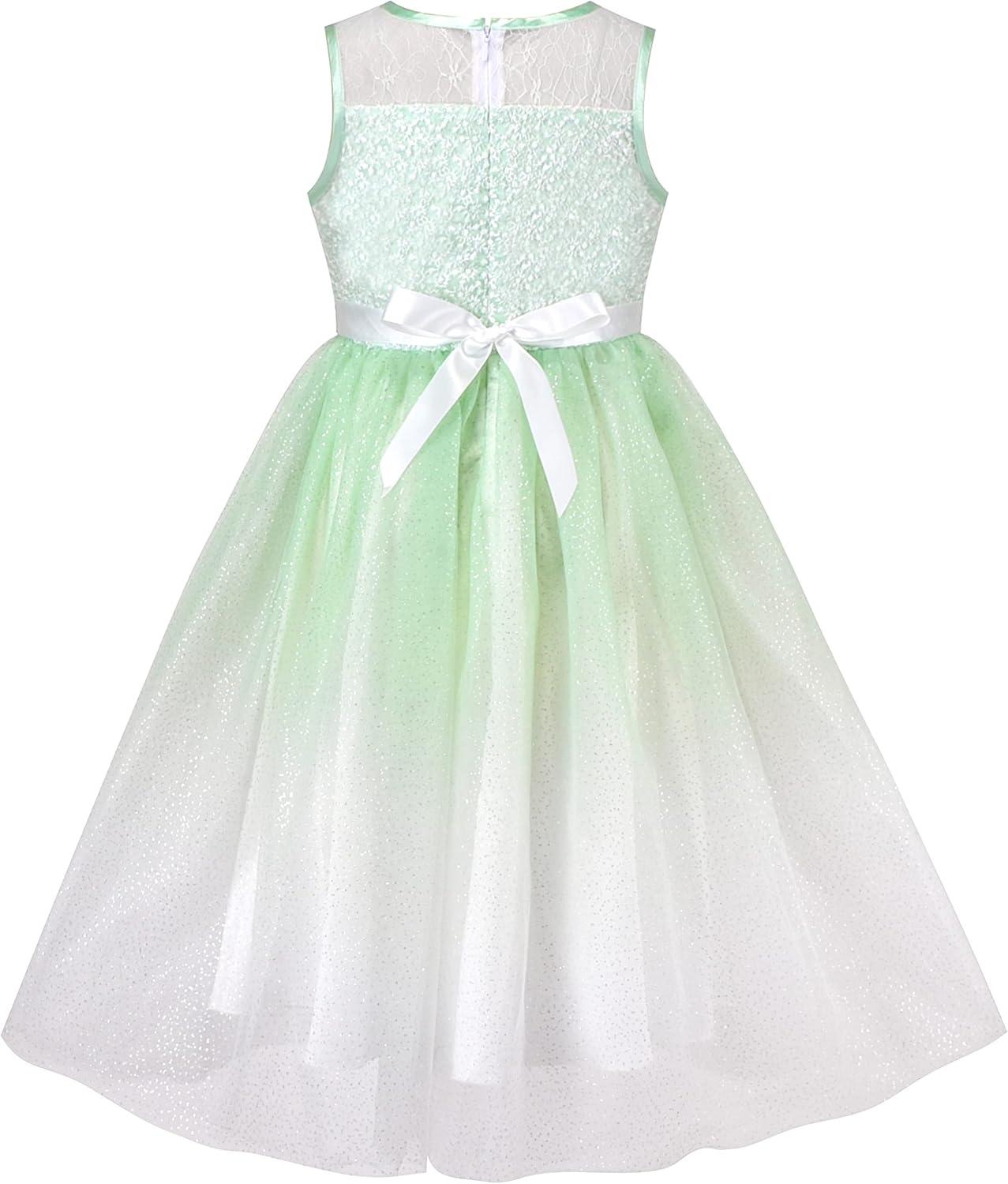 • Sunny Fashion Girls Dress Flower Lace Top Burgundy Gradient Skirt Sleeveless(Light Green)