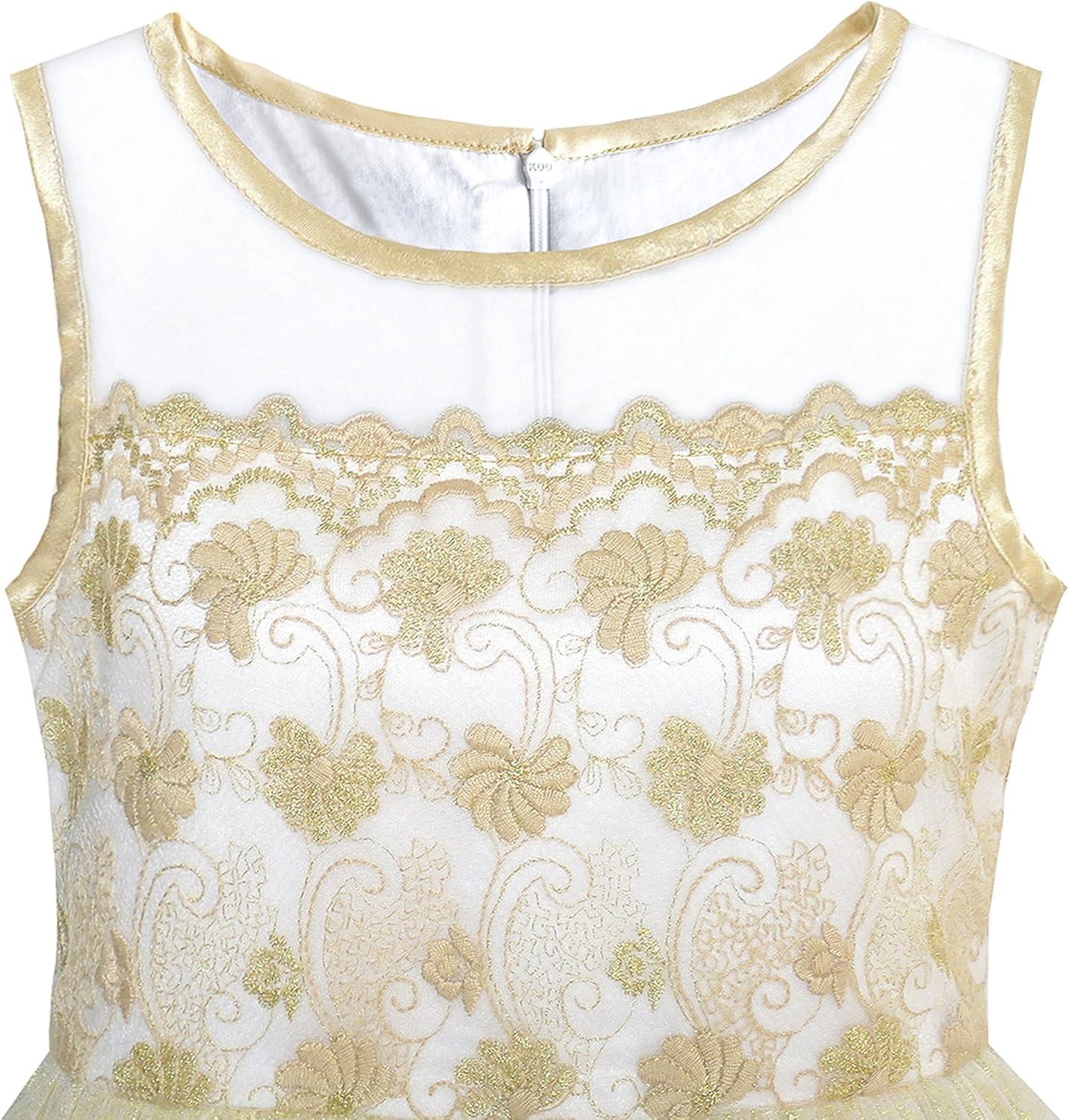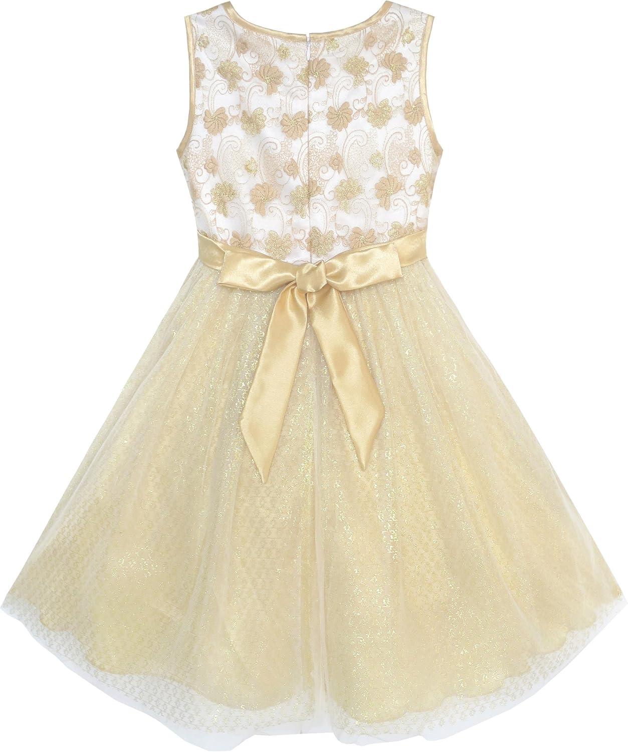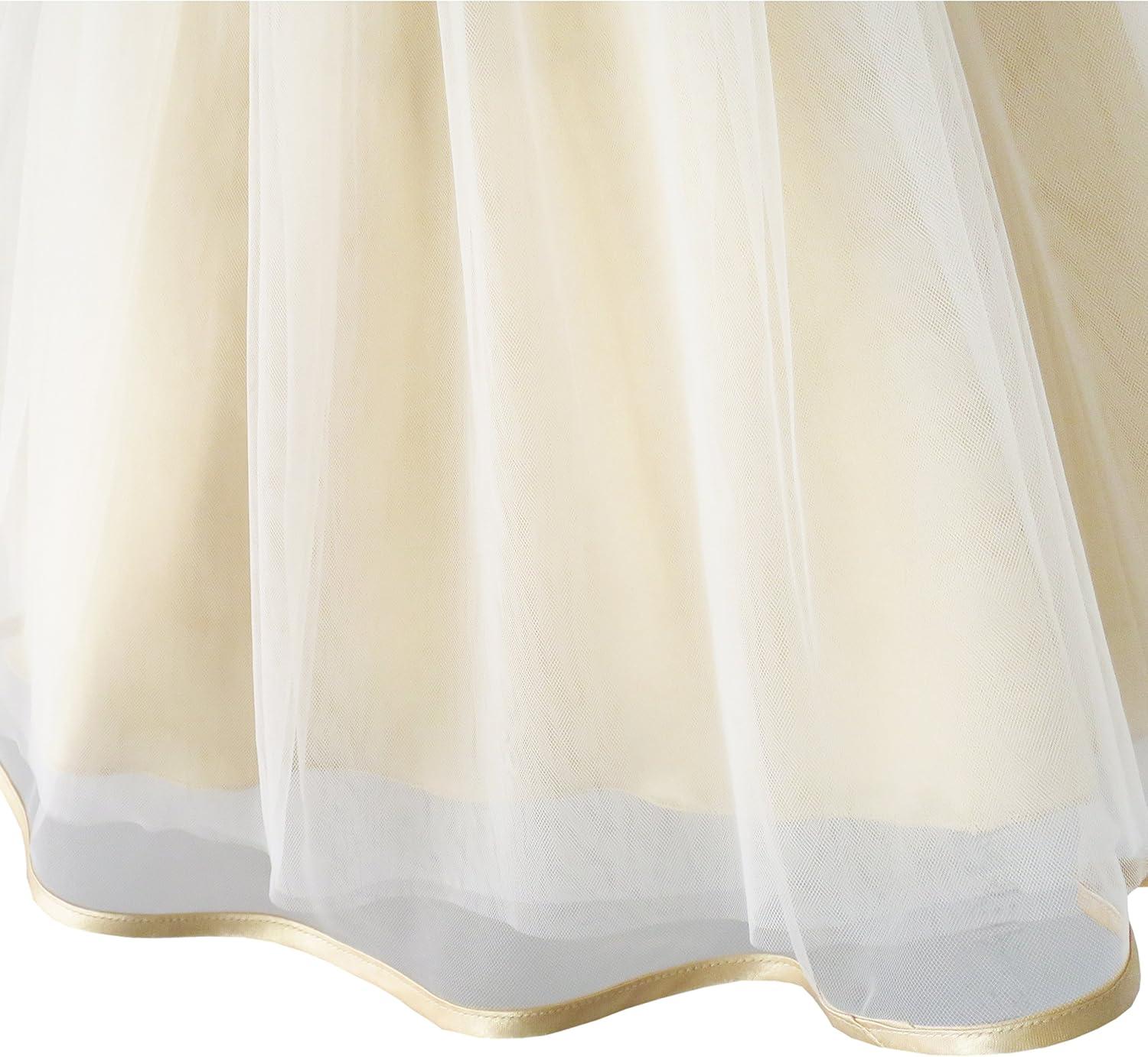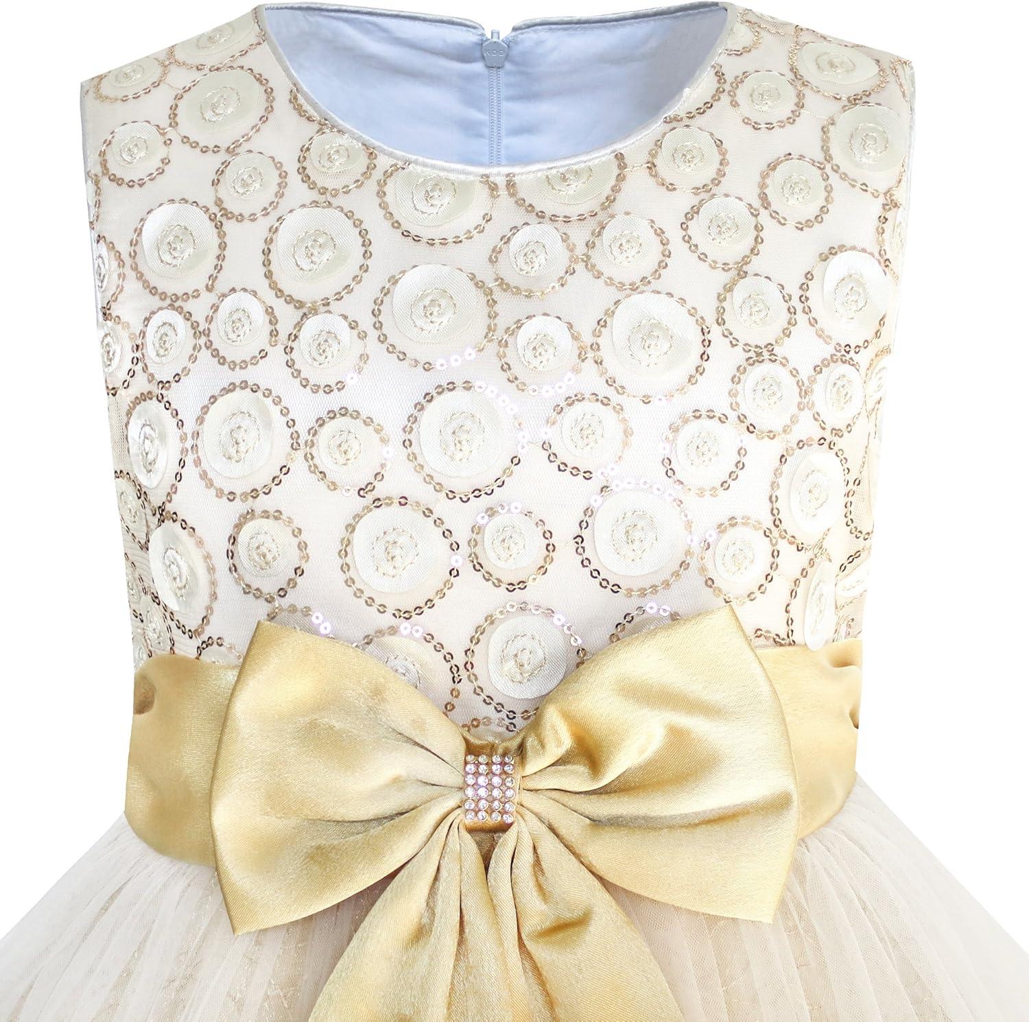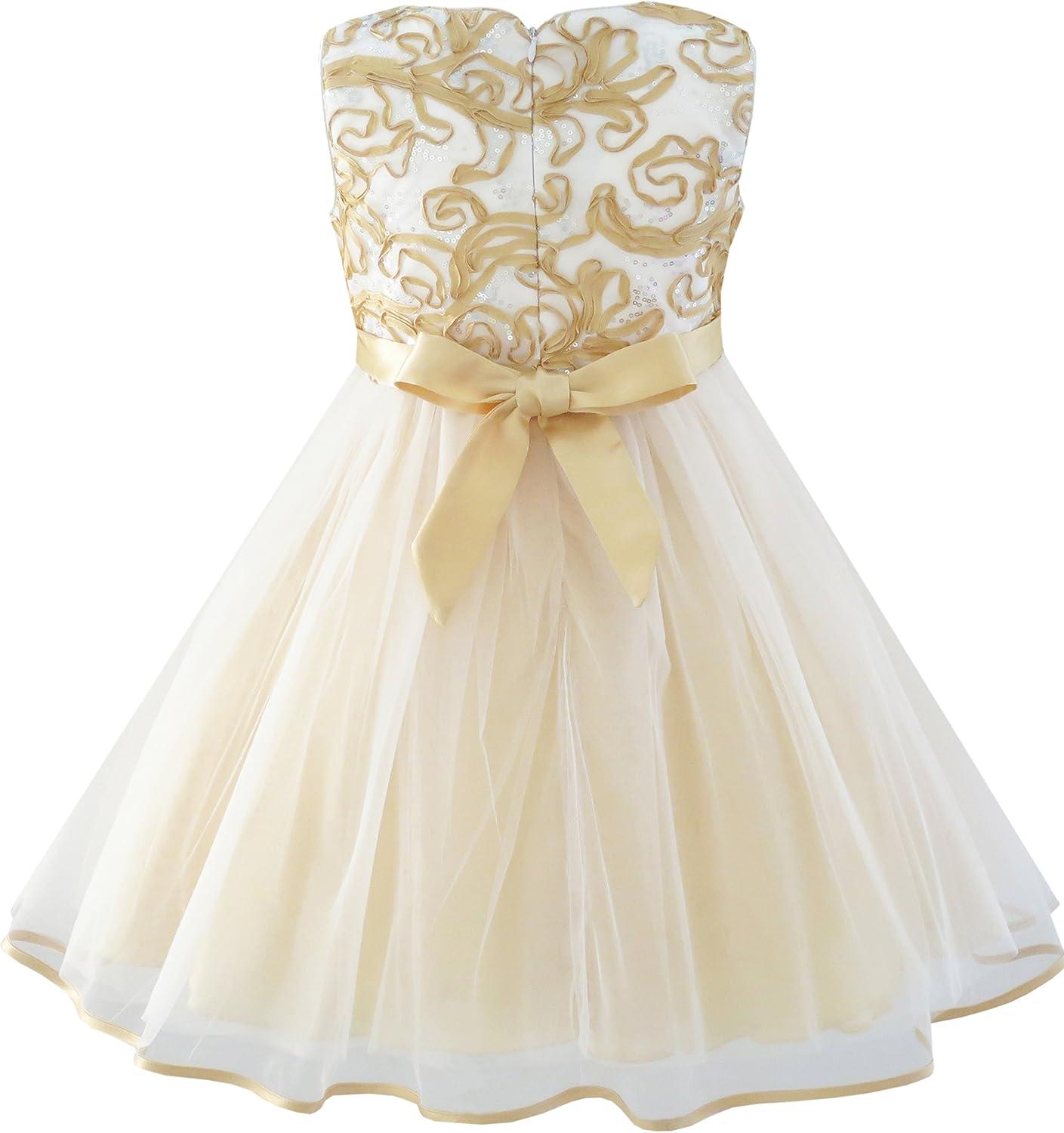 - Sunny Fashion Girls Dress Shinning Sequins Beige Tulle Layers Wedding Pageant(Champagne 4)
