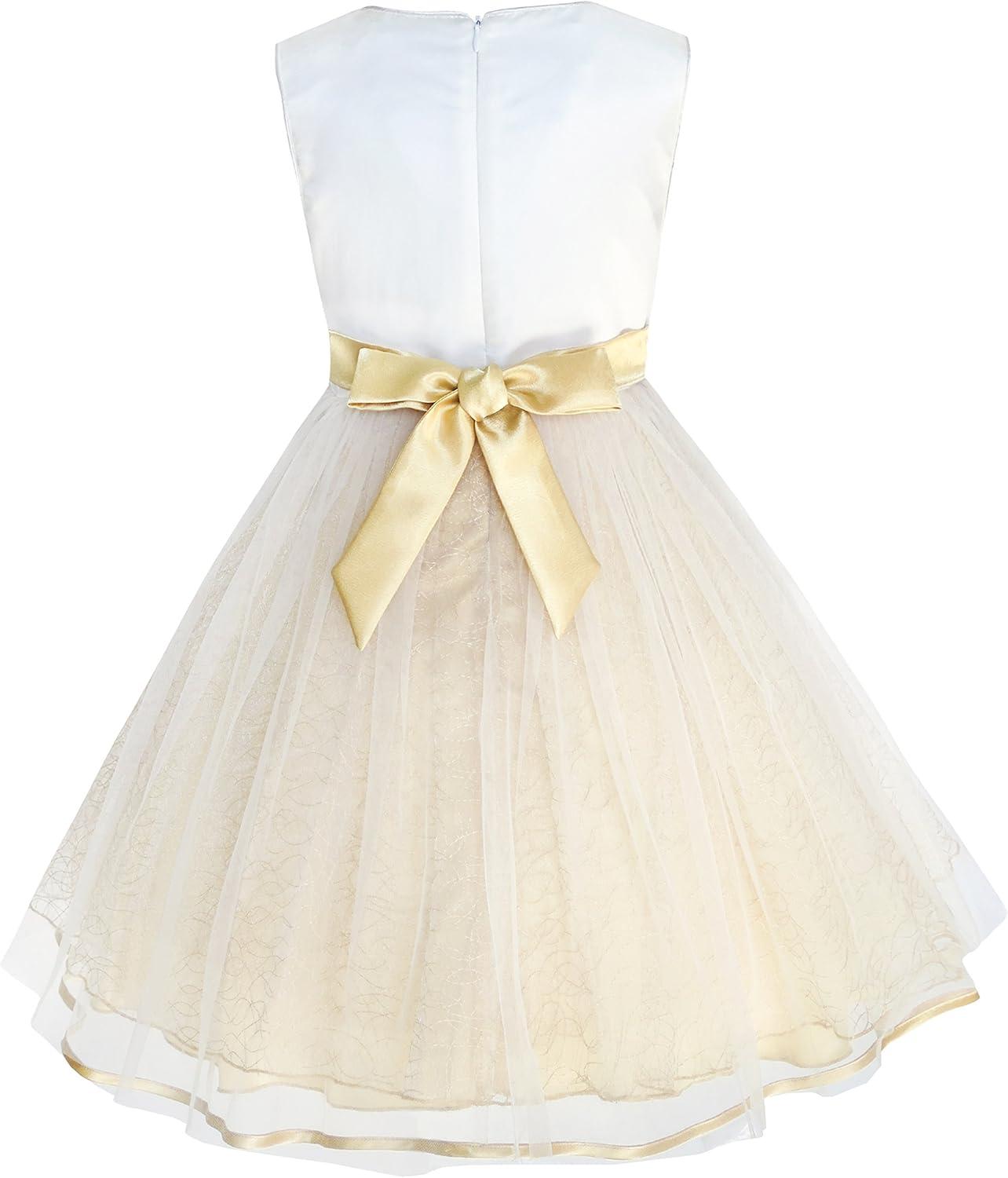 - Sunny Fashion Girls Dress Shinning Sequins Beige Tulle Layers Wedding Pageant(White)