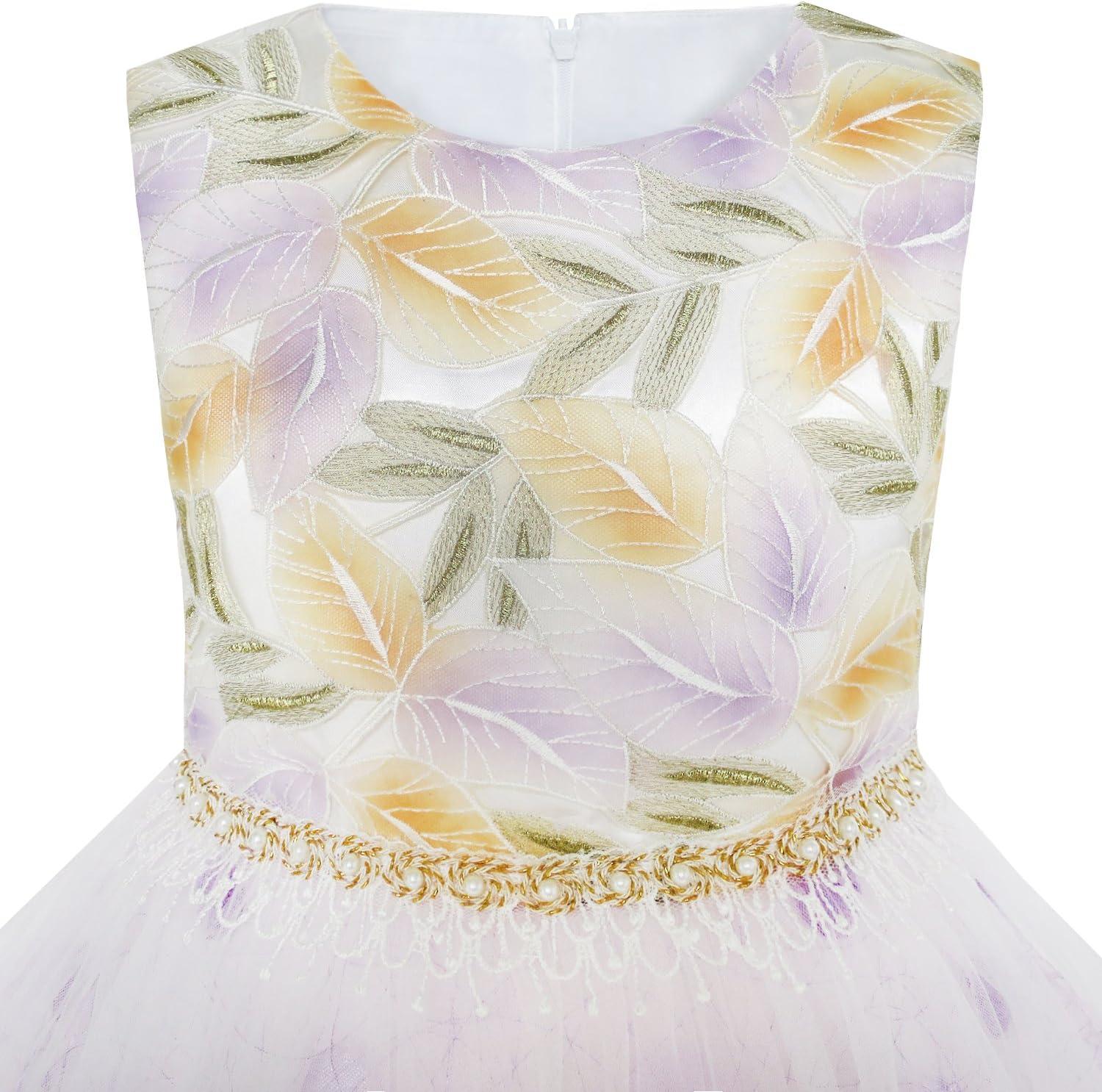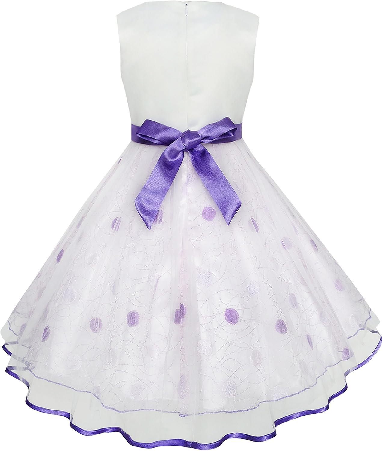- Sunny Fashion Girls Dress Shinning Sequins Beige Tulle Layers Wedding Pageant(Purple)