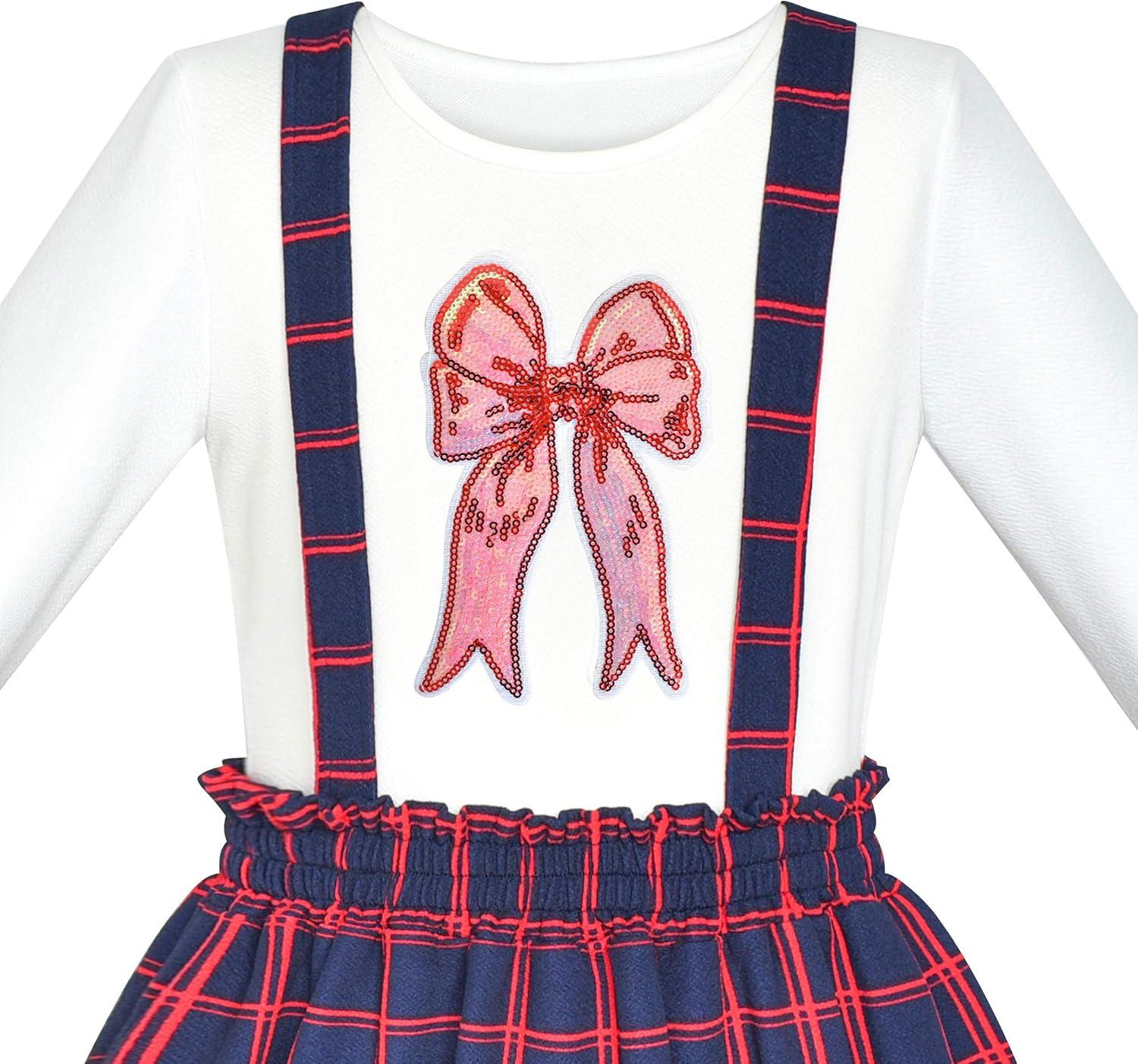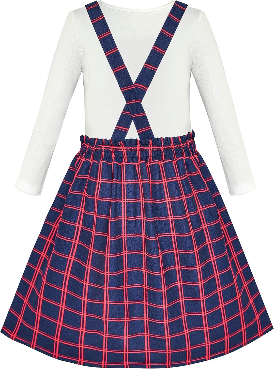 - Sunny Fashion Girls Dress School Black White Check Suspender Skirt Size 4-10