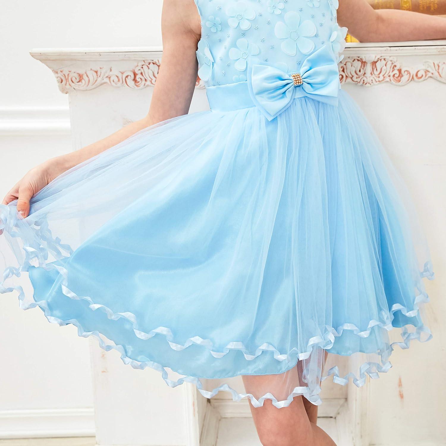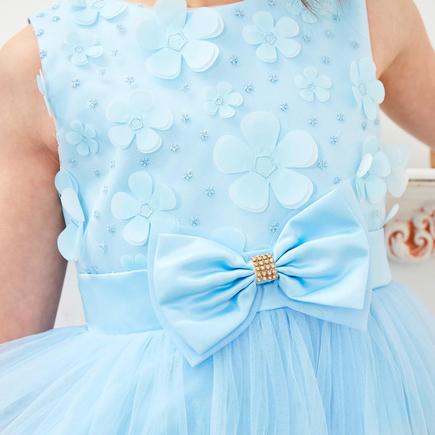 - Sunny Fashion Girls Dress Blue Flower Short Sleeve Party Birthday
