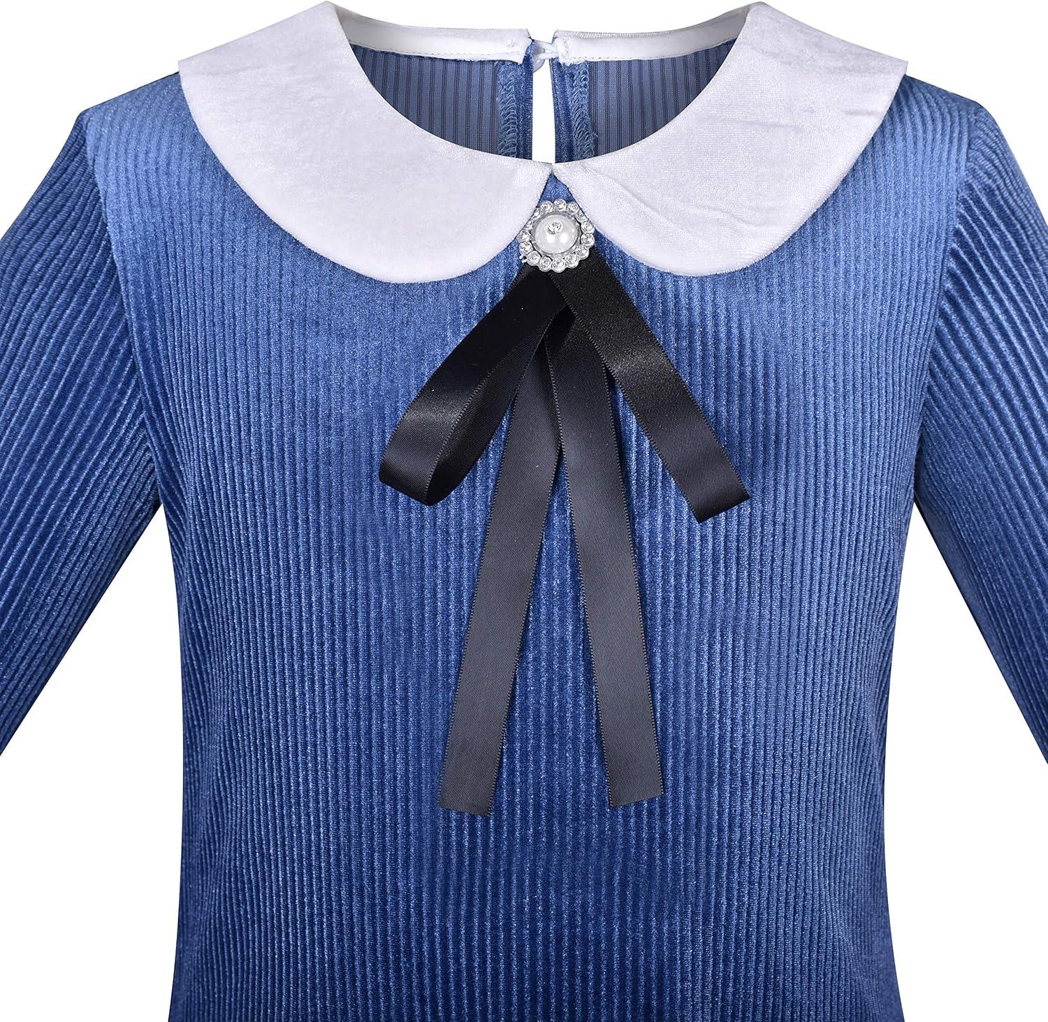 - Sunny Fashion Girls Dress Navy Blue Dot Bow Tie Back School Size 5-12