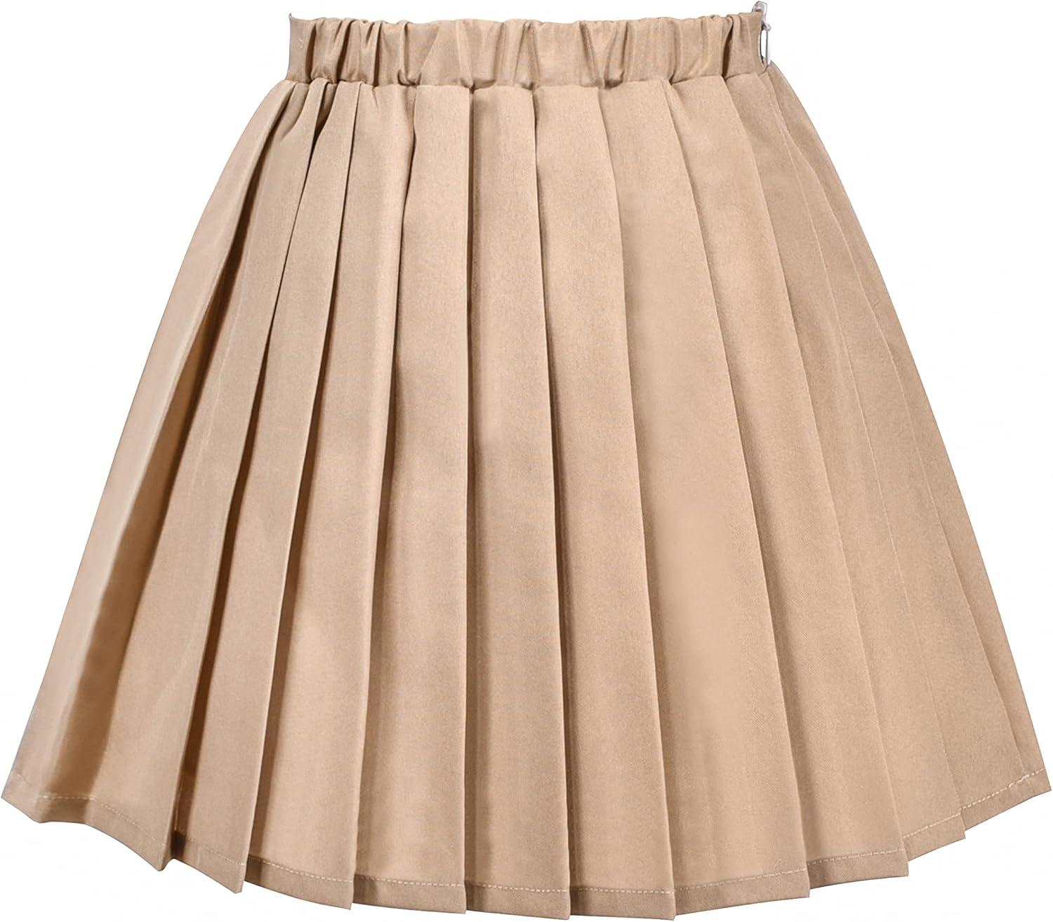 - Sunny Fashion Girls Skirt Beige Pleated Bow Tie Back School Uniform Size 6-14(Khaki Red)