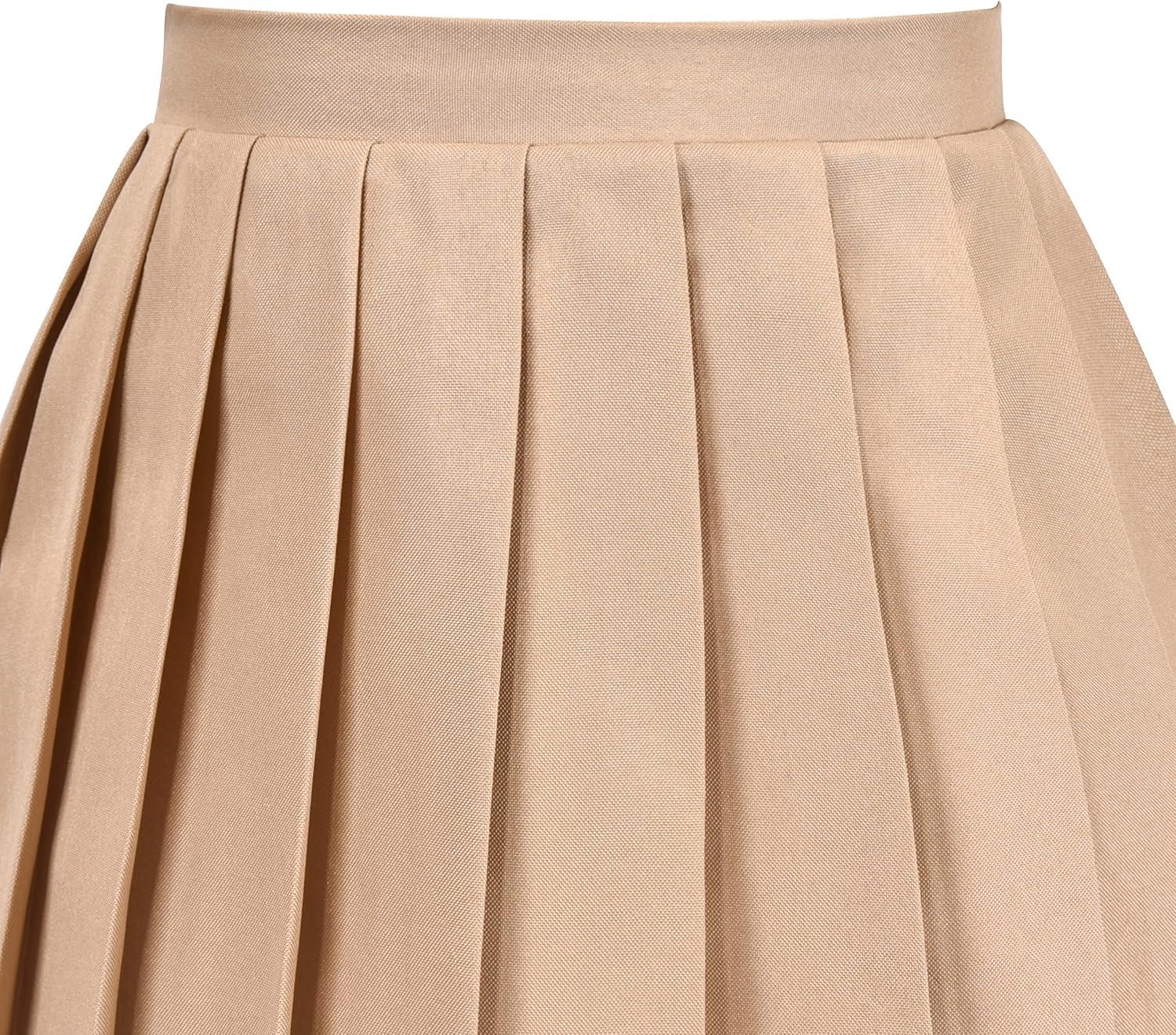 - Sunny Fashion Girls Skirt Beige Pleated Bow Tie Back School Uniform Size 6-14(Beige)