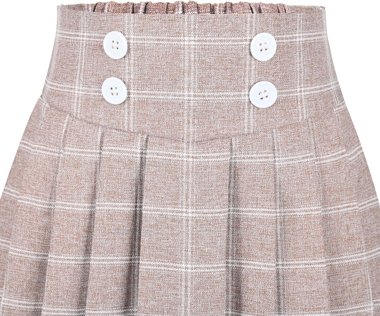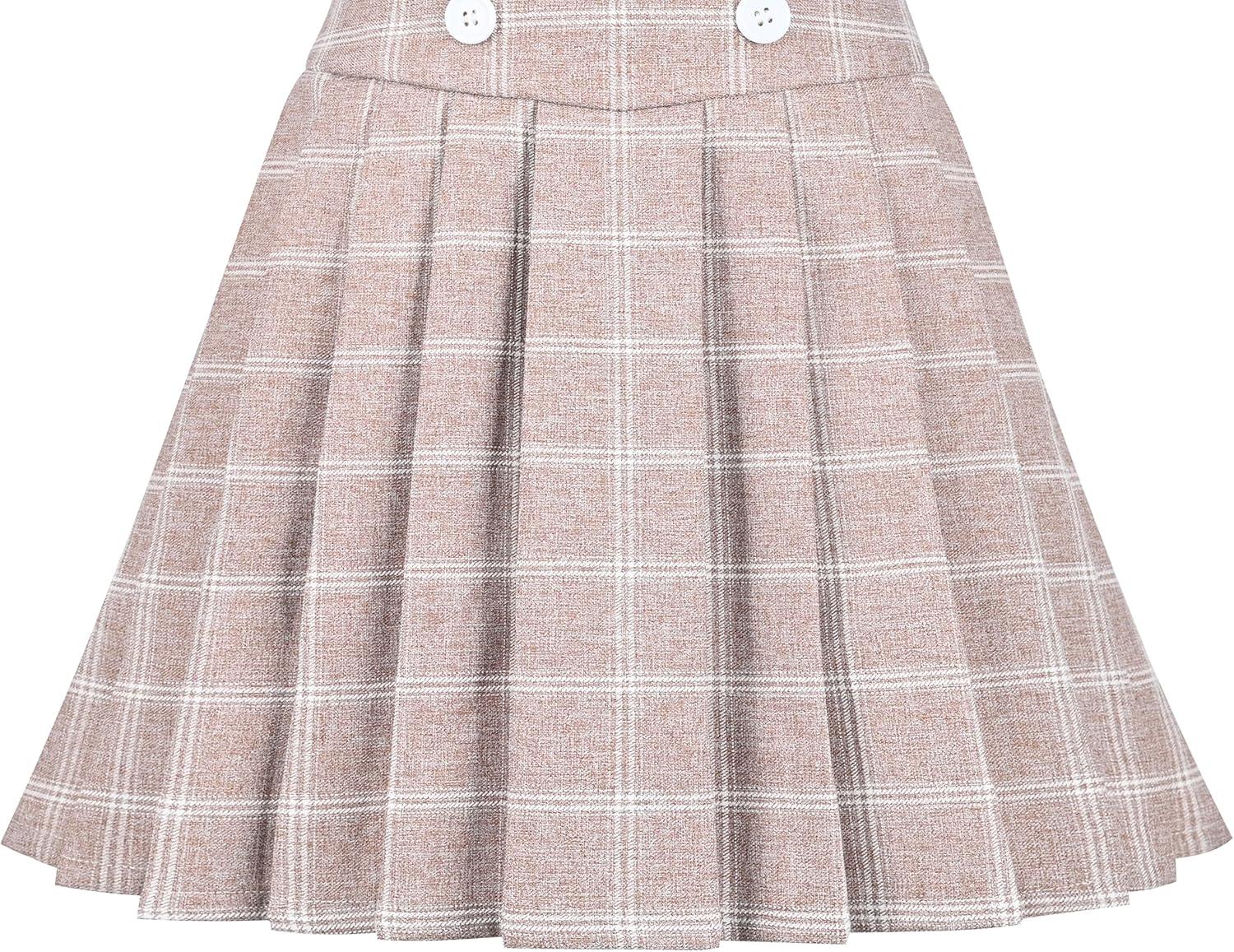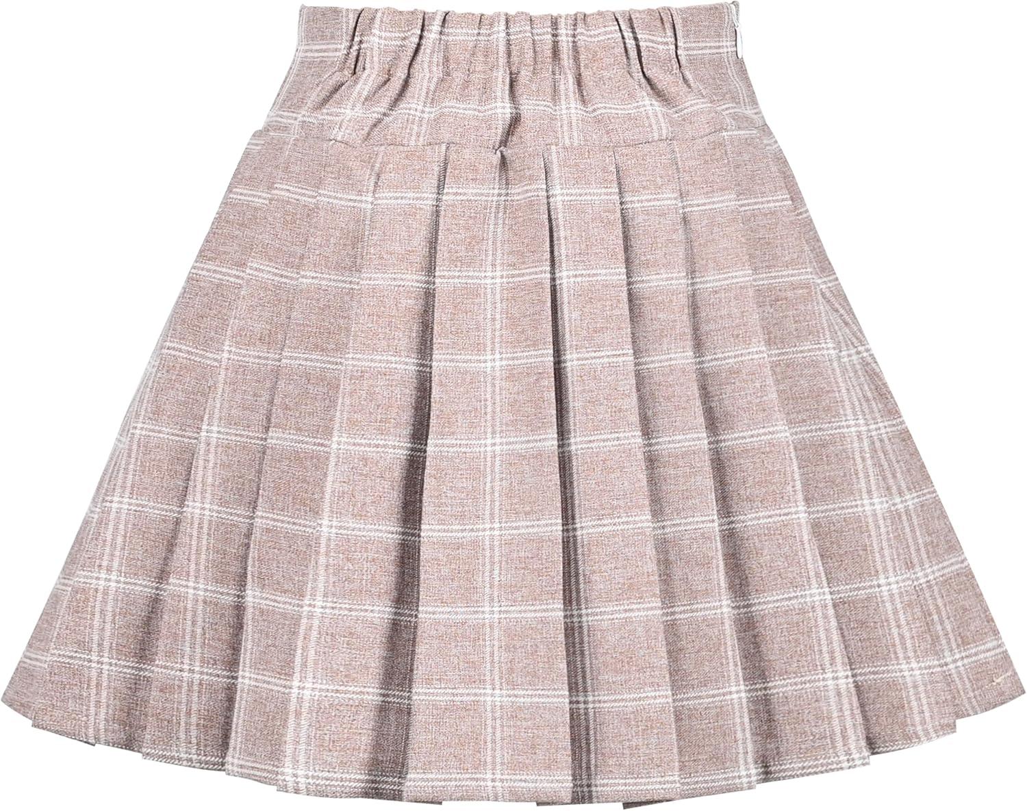- Sunny Fashion Girls Skirt Beige Pleated Bow Tie Back School Uniform Size 6-14(Beige Plaid)