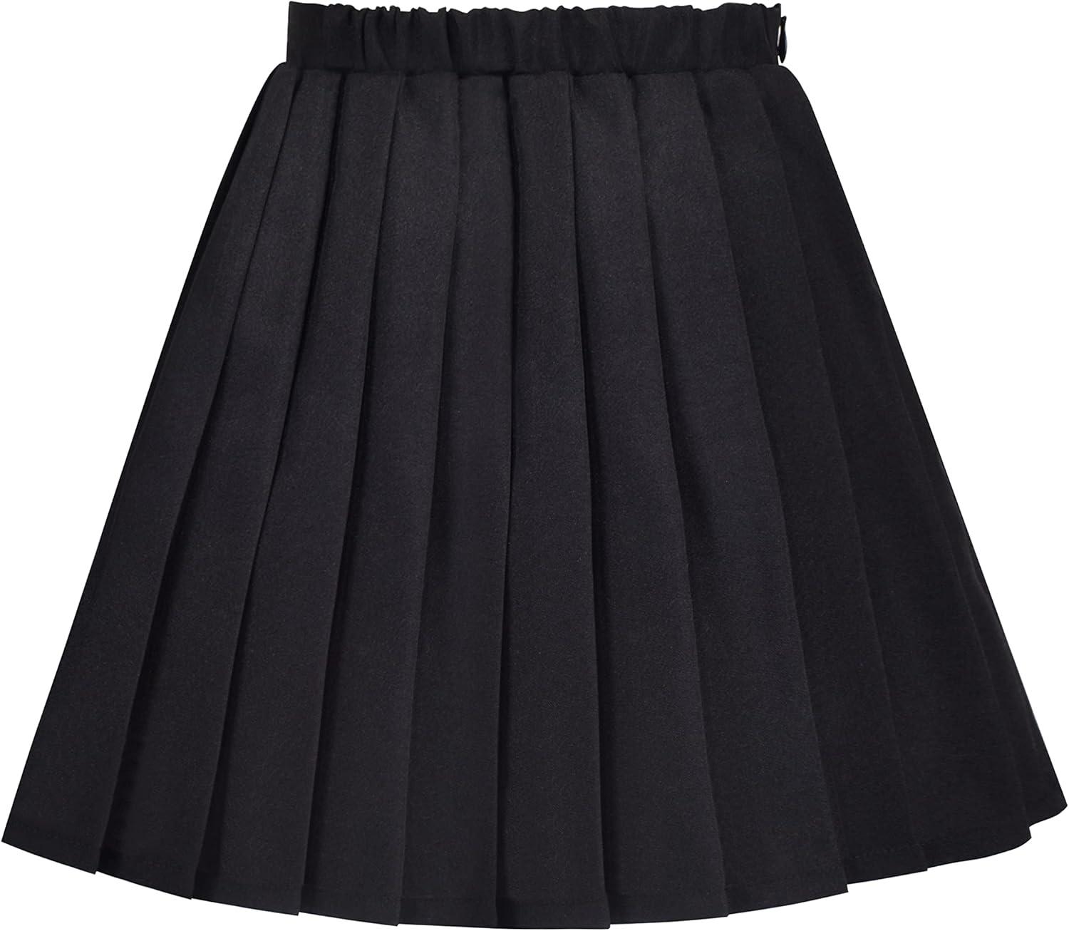 - Sunny Fashion Girls Skirt Beige Pleated Bow Tie Back School Uniform Size 6-14(Black Pleated)