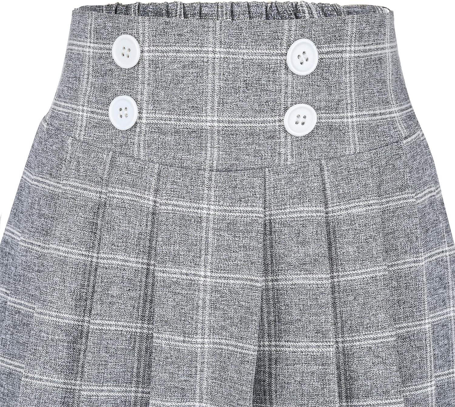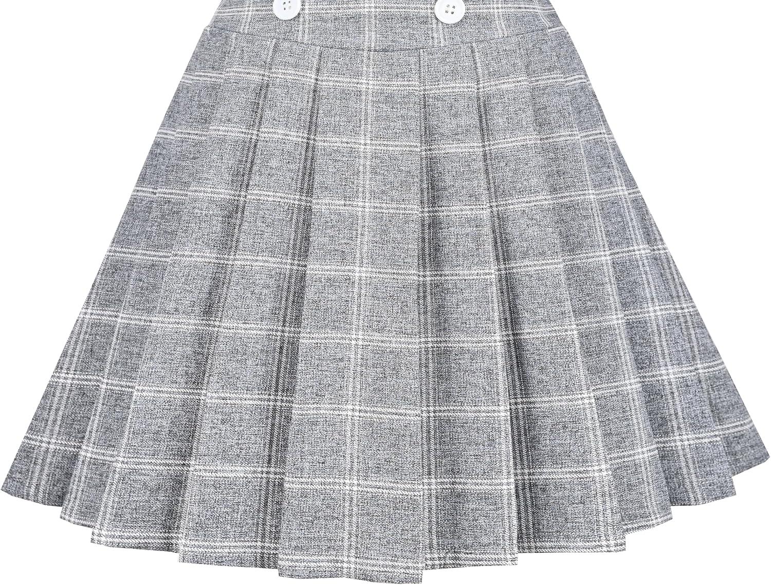 - Sunny Fashion Girls Skirt Beige Pleated Bow Tie Back School Uniform Size 6-14(Gray Plaid)