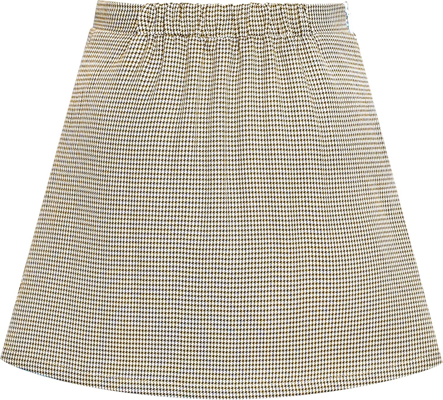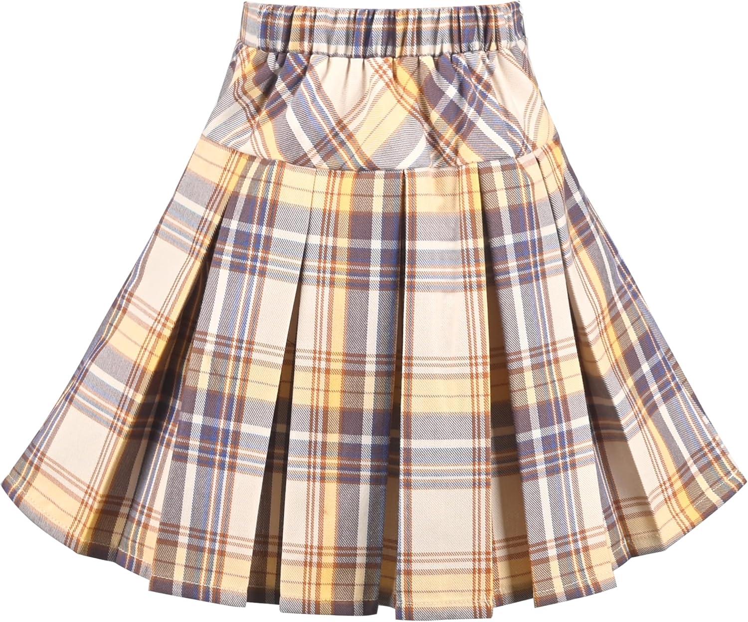 - Sunny Fashion Girls Skirt Back School Uniform Red Tartan Skirt Size 4-14(Yellowish Beige)