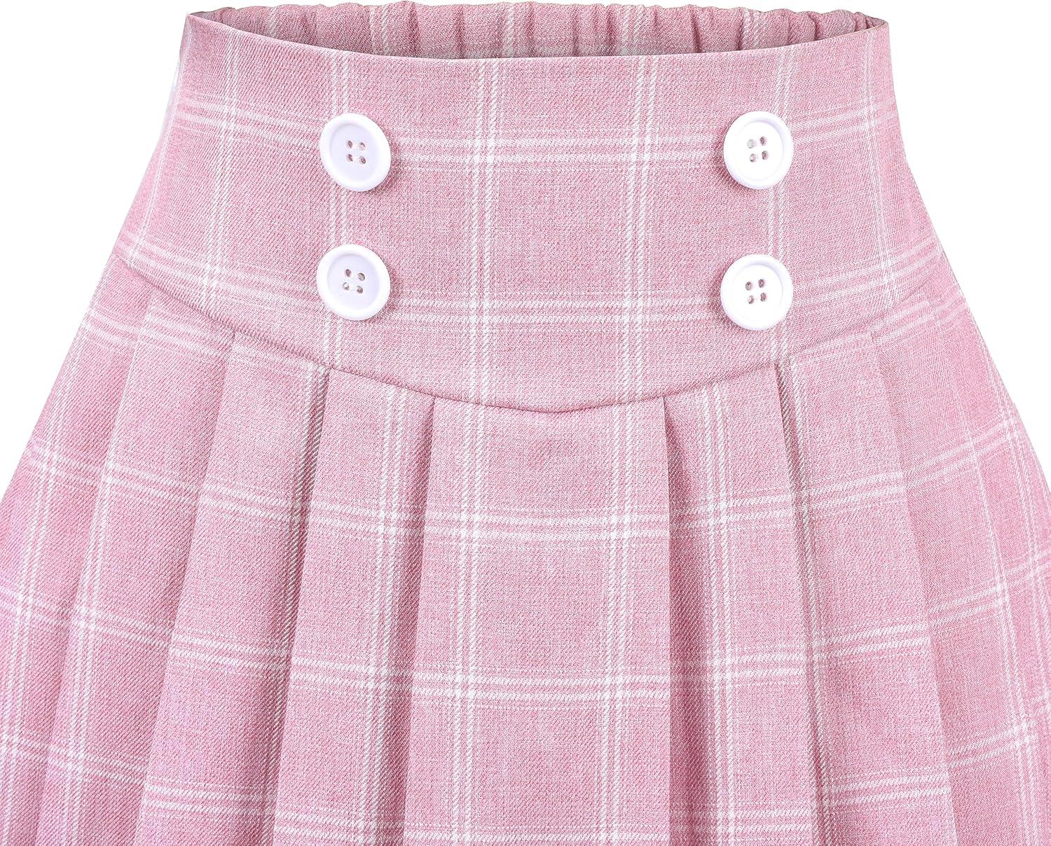 - Sunny Fashion Girls Skirt Beige Pleated Bow Tie Back School Uniform Size 6-14(Pink Plaid)