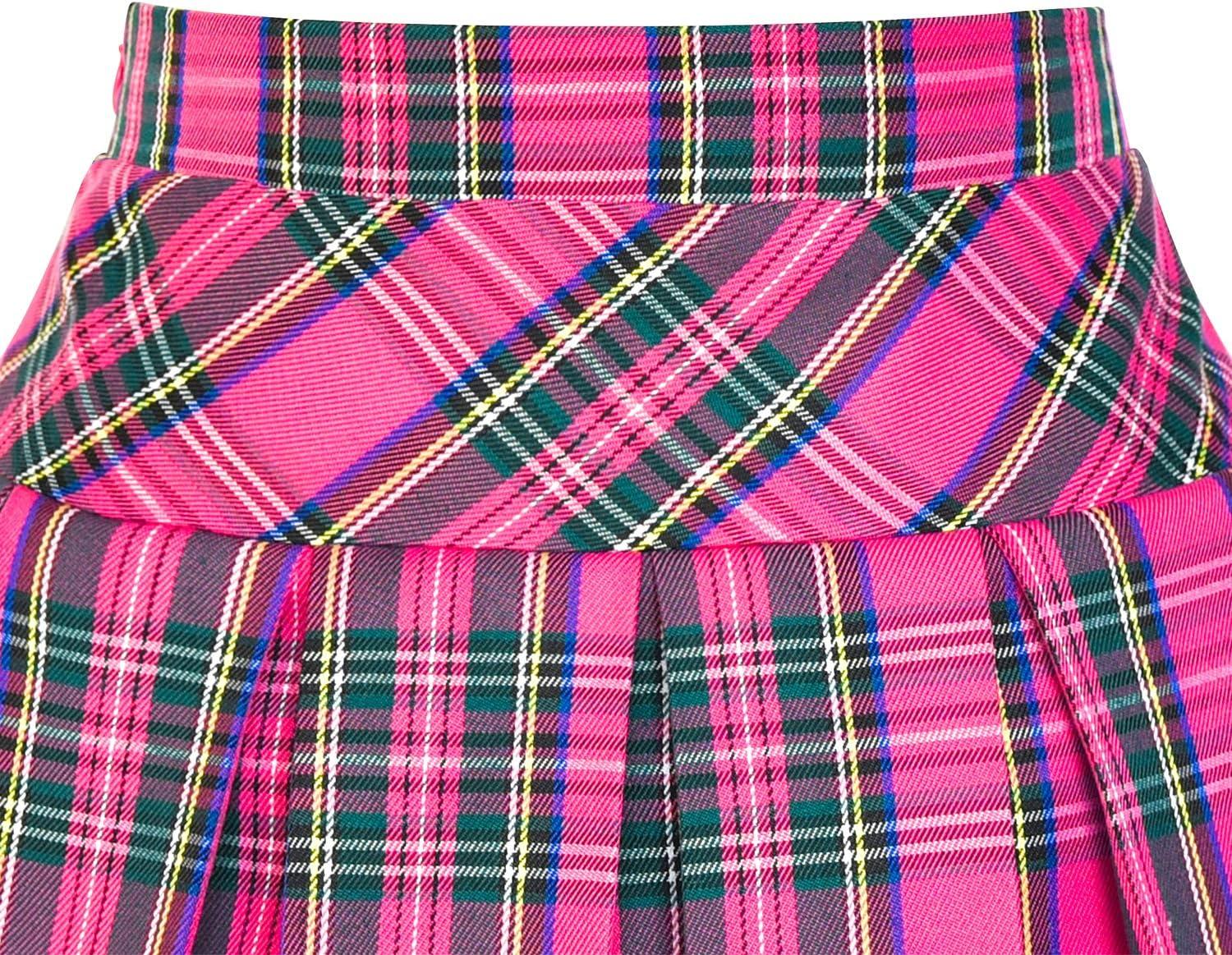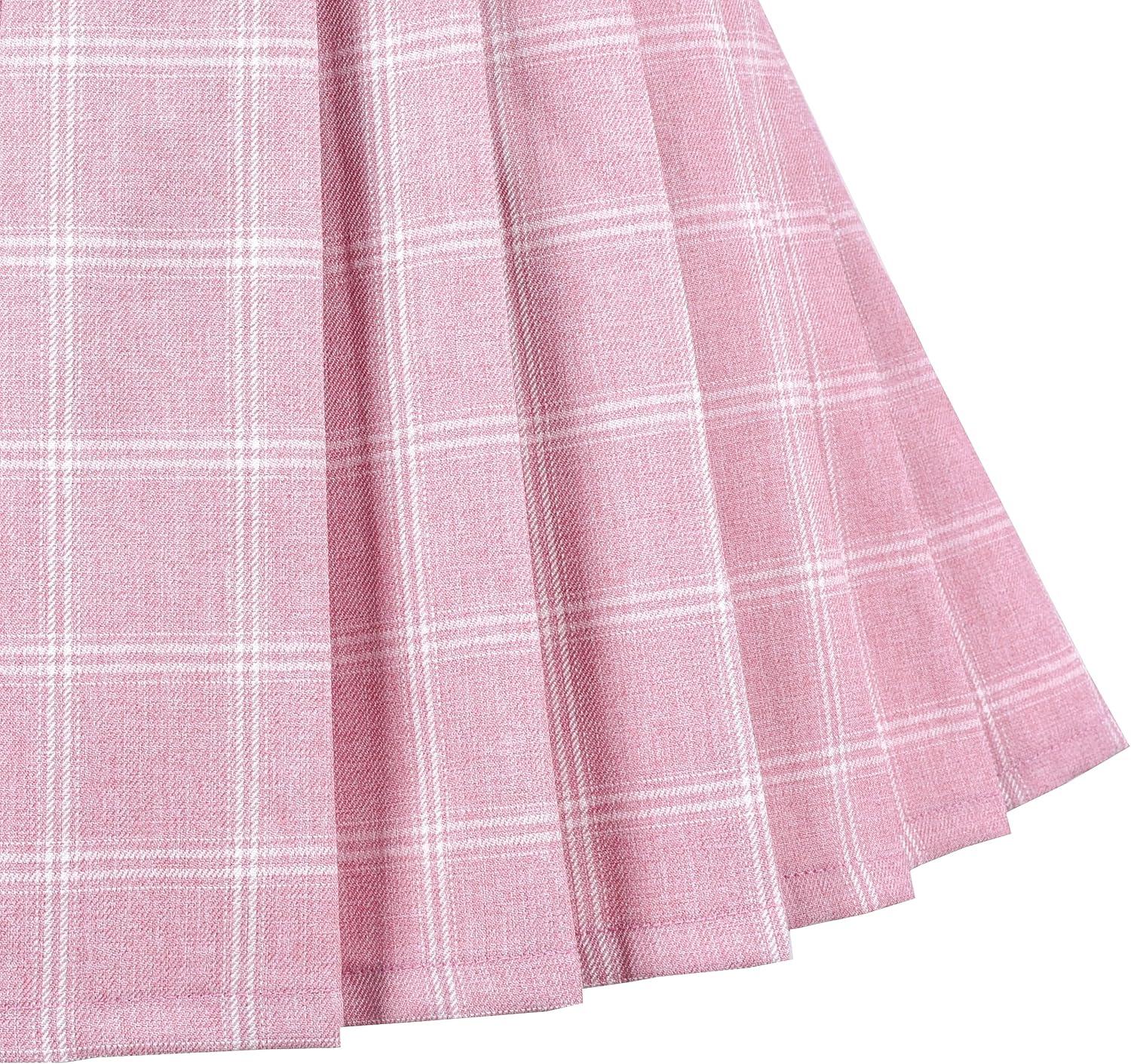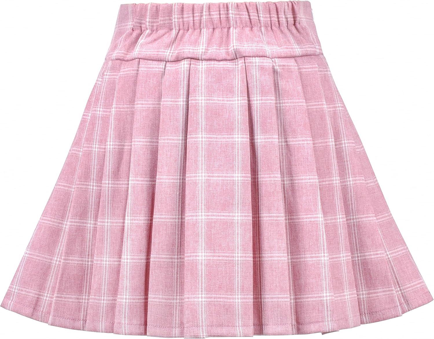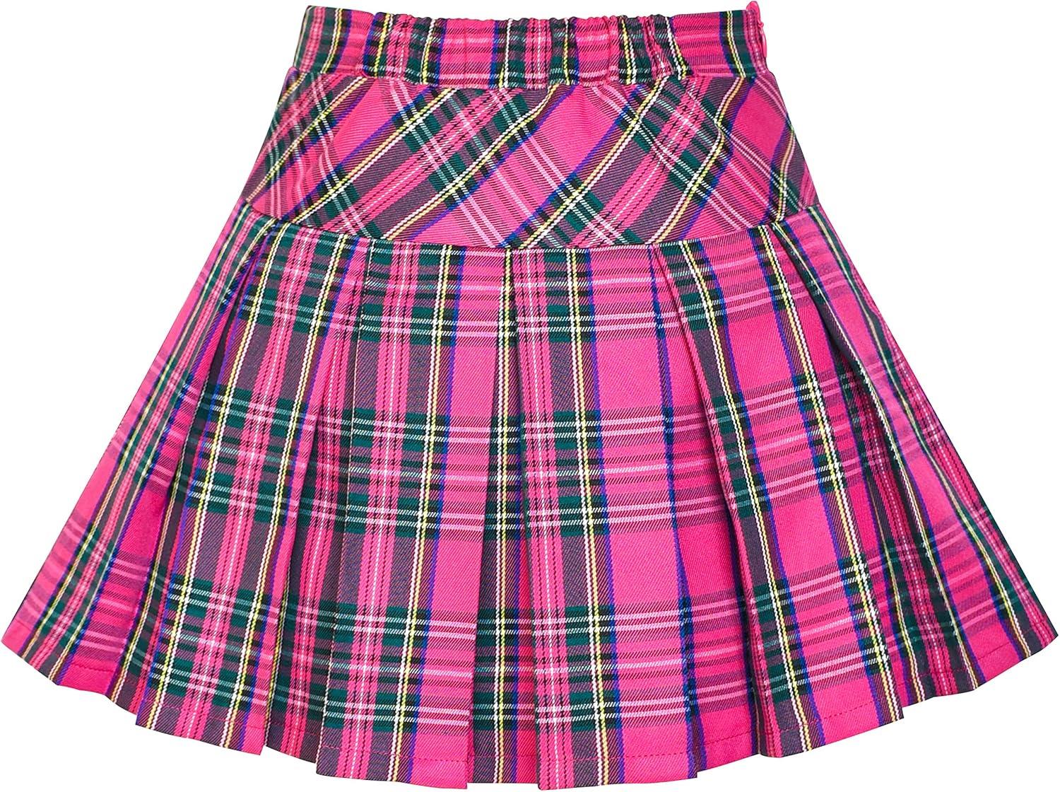 - Sunny Fashion Girls Skirt Back School Uniform Red Tartan Skirt Size 4-14(Pink)