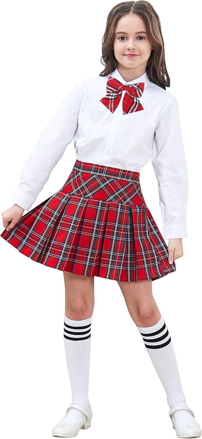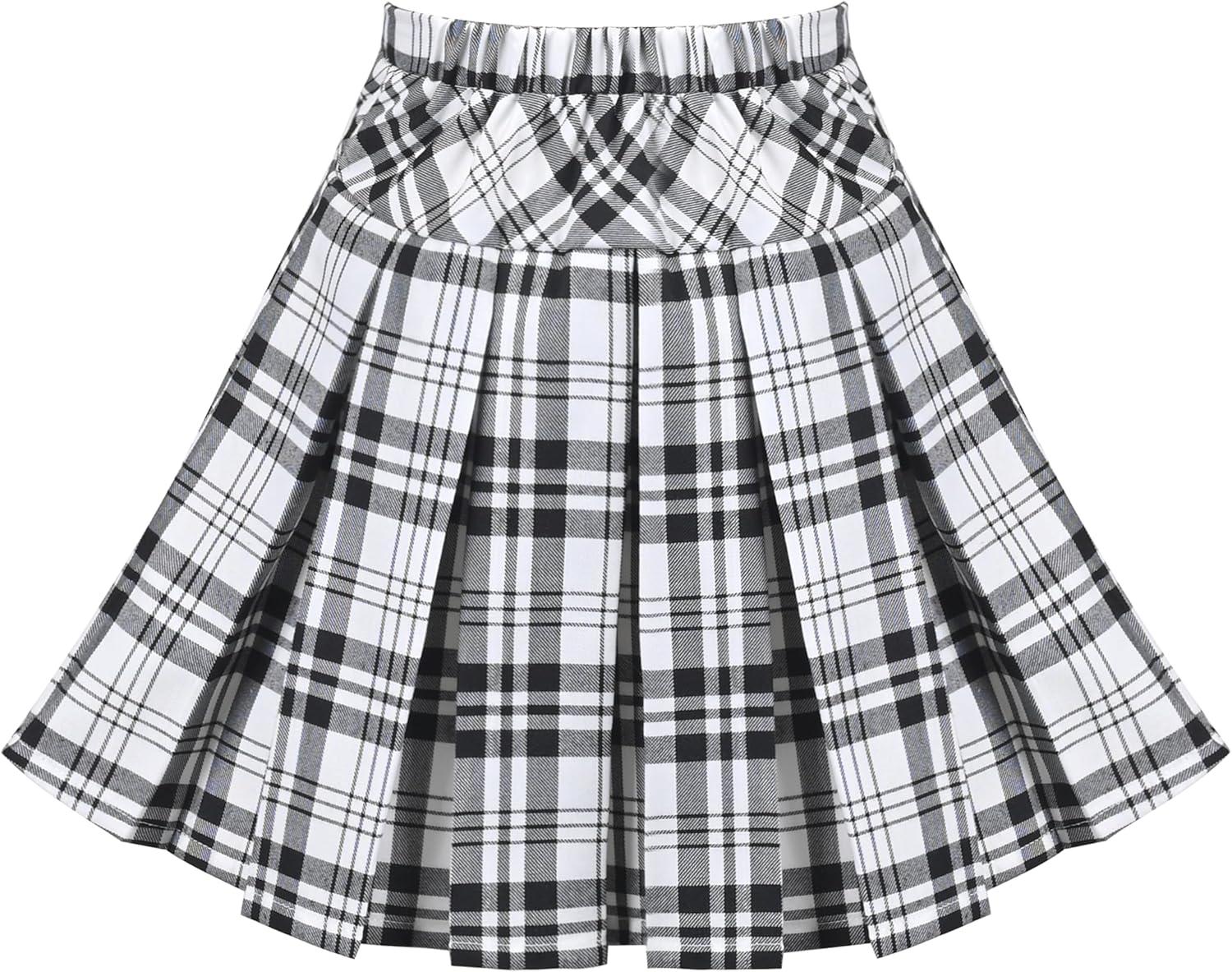 - Sunny Fashion Girls Skirt Back School Uniform Red Tartan Skirt Size 4-14(Black White)