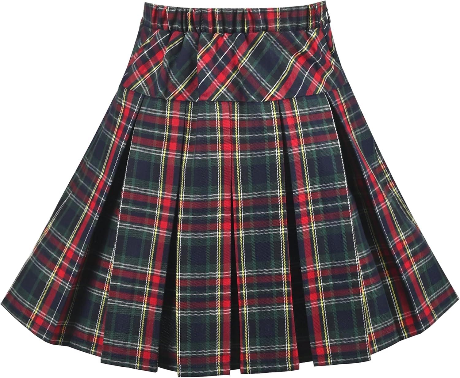 - Sunny Fashion Girls Skirt Back School Uniform Red Tartan Skirt Size 4-14(Green Plaid)