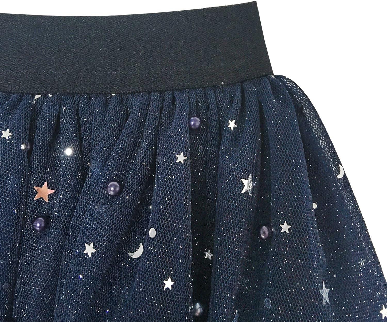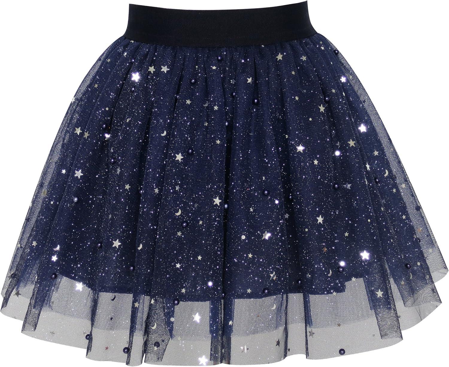 - Sunny Fashion Girls Skirt Navy Blue Pearl Stars Sparkling Tutu Dancing Size 4-12(Blue)