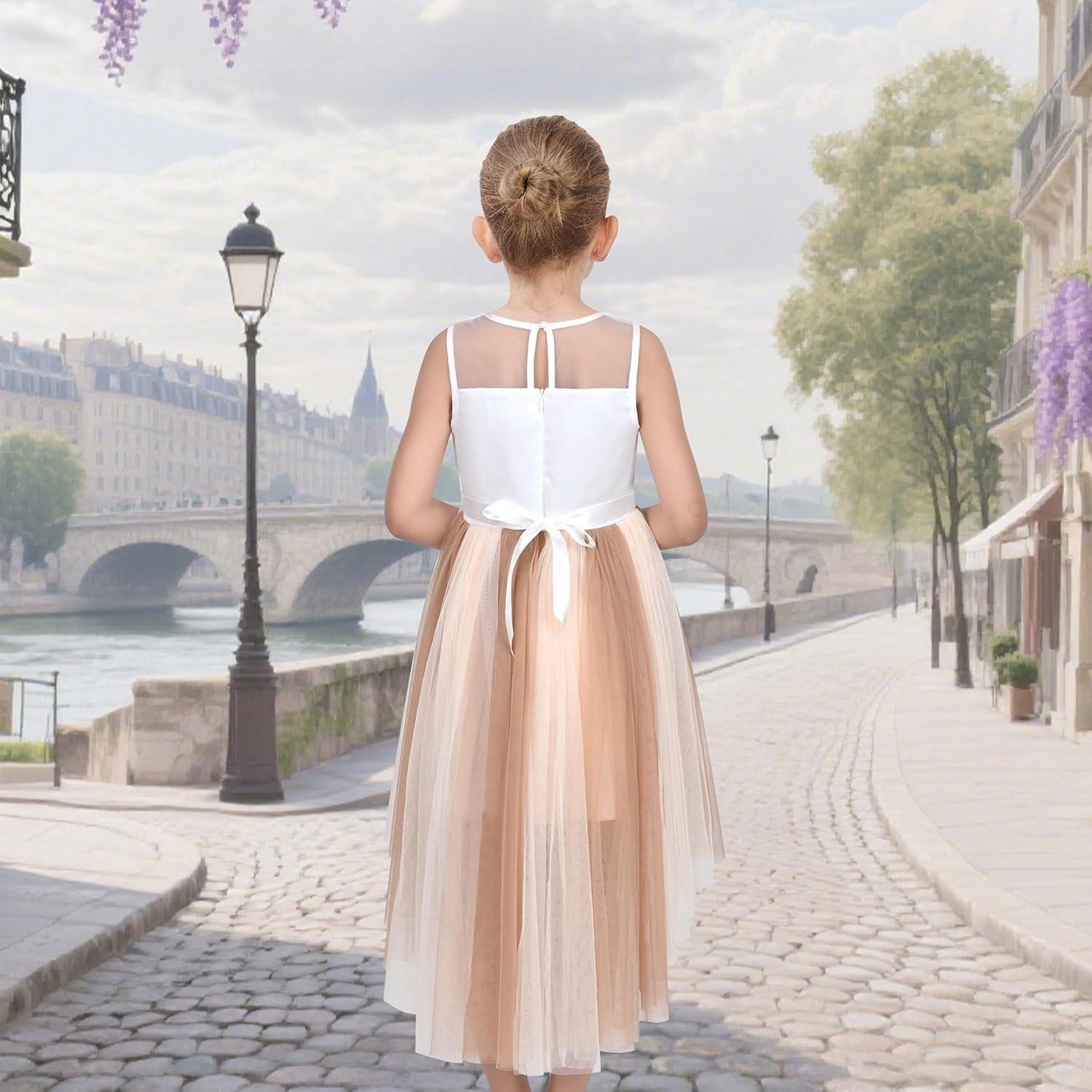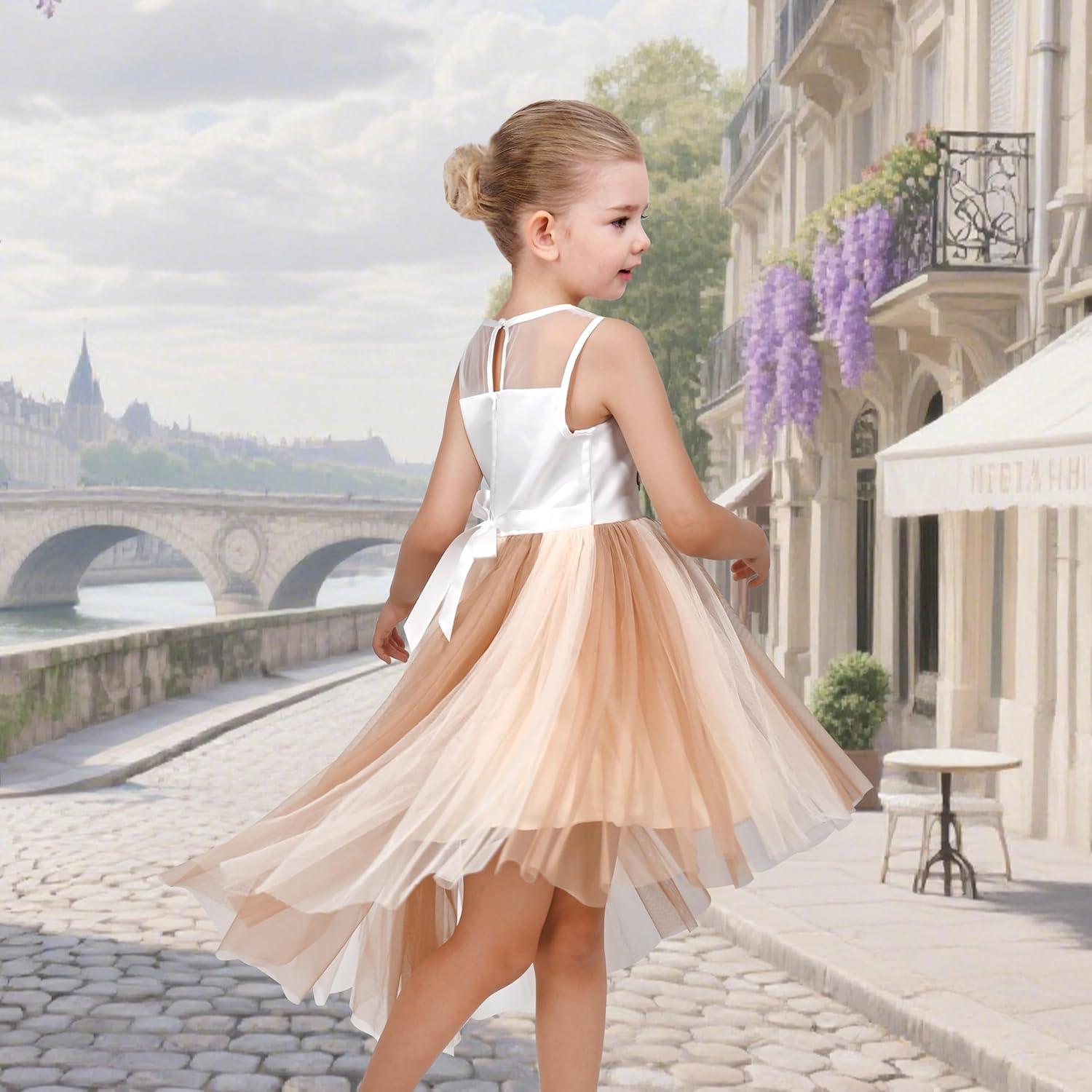 - Sunny Fashion Flower Girl Dress Champagne Sequin Hi-Low Wedding Bridesmaid(Pinkish Beige)