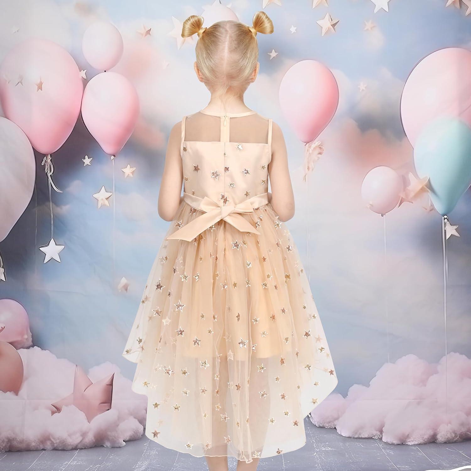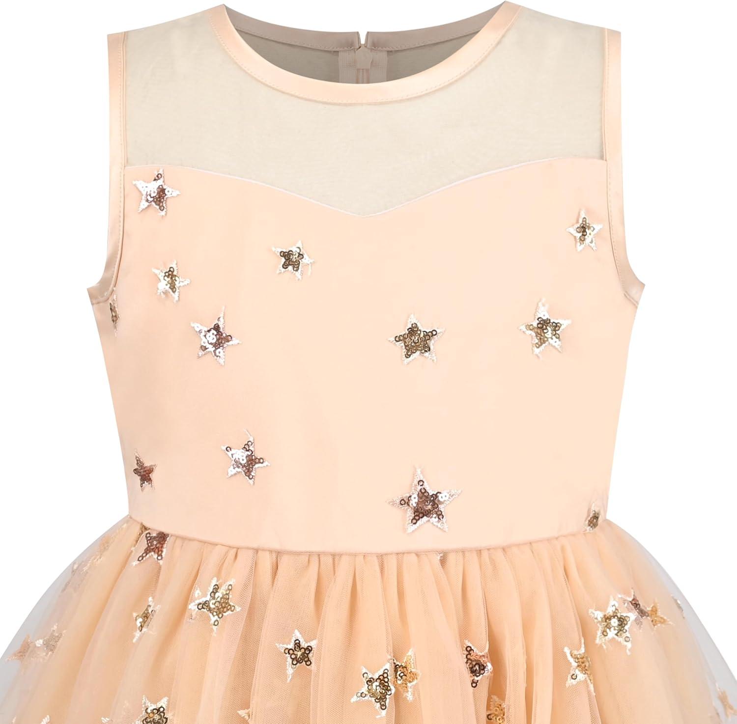 - Sunny Fashion Flower Girls Dress Unicorn Rainbow Pageant Princess Party(Beige Star)