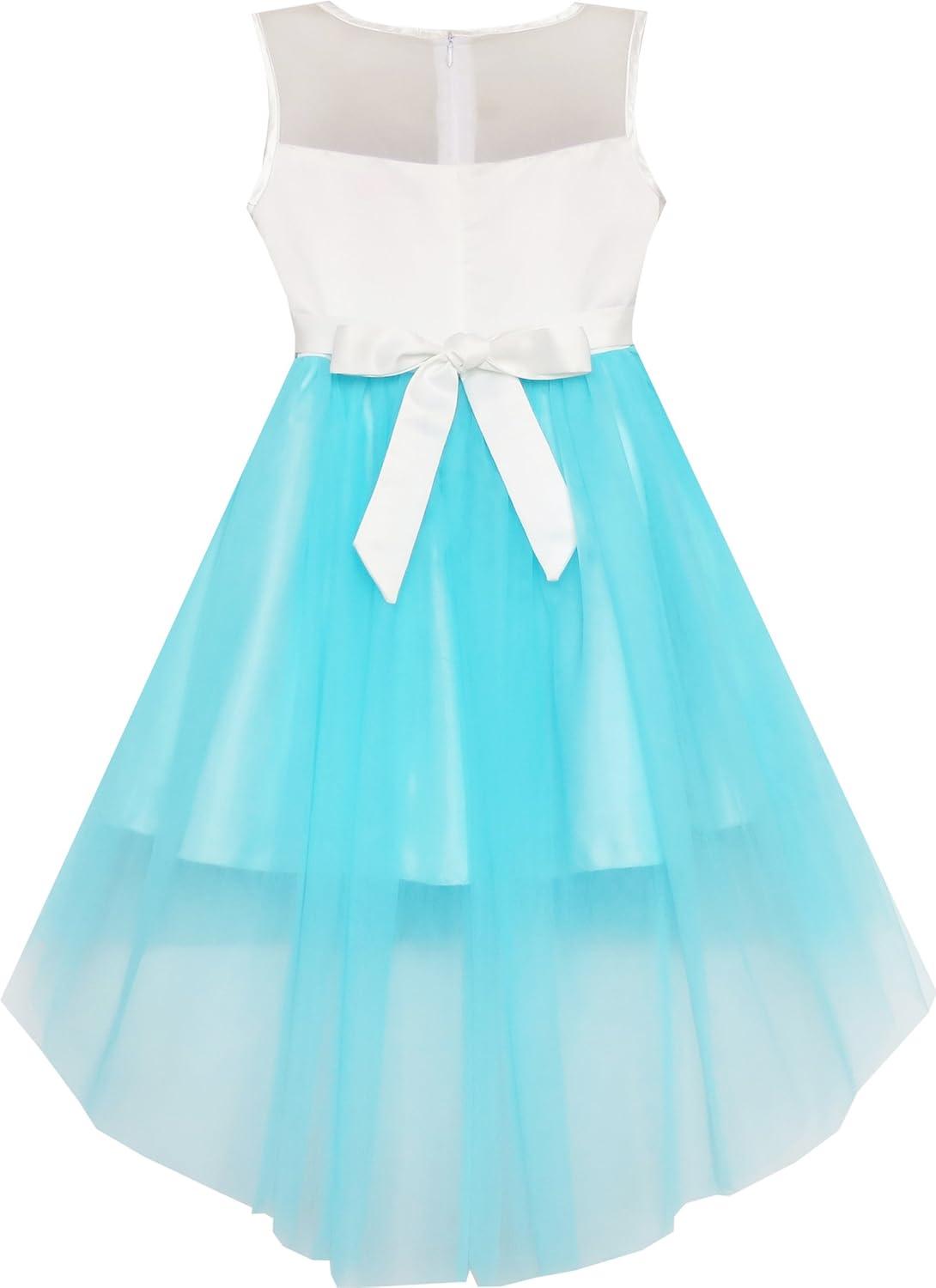 - Sunny Fashion Flower Girl Dress Champagne Sequin Hi-Low Wedding Bridesmaid(Light Blue)