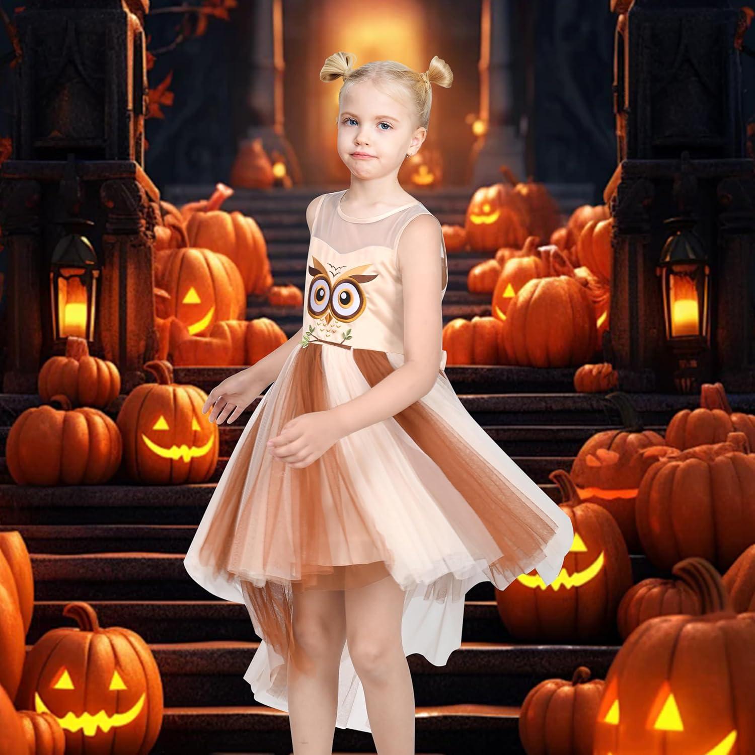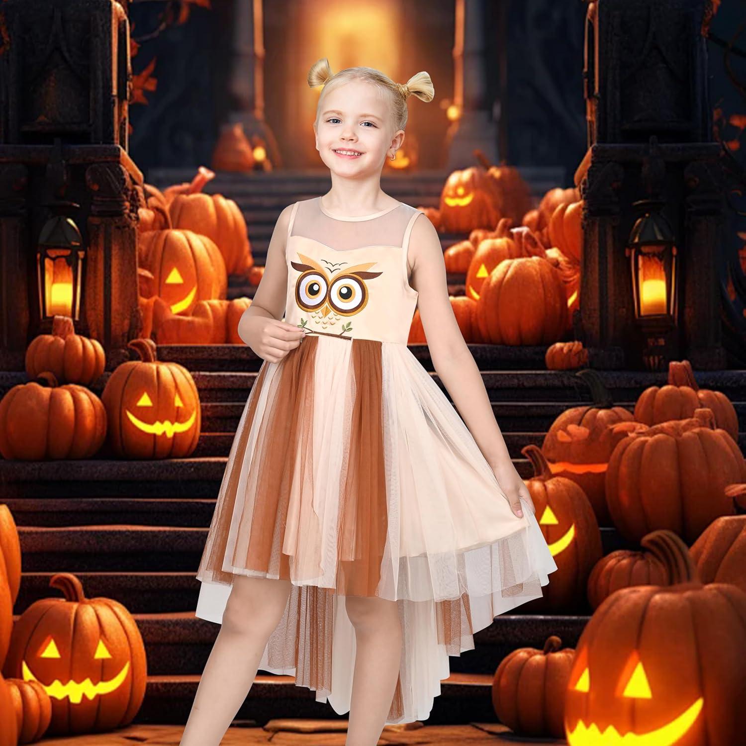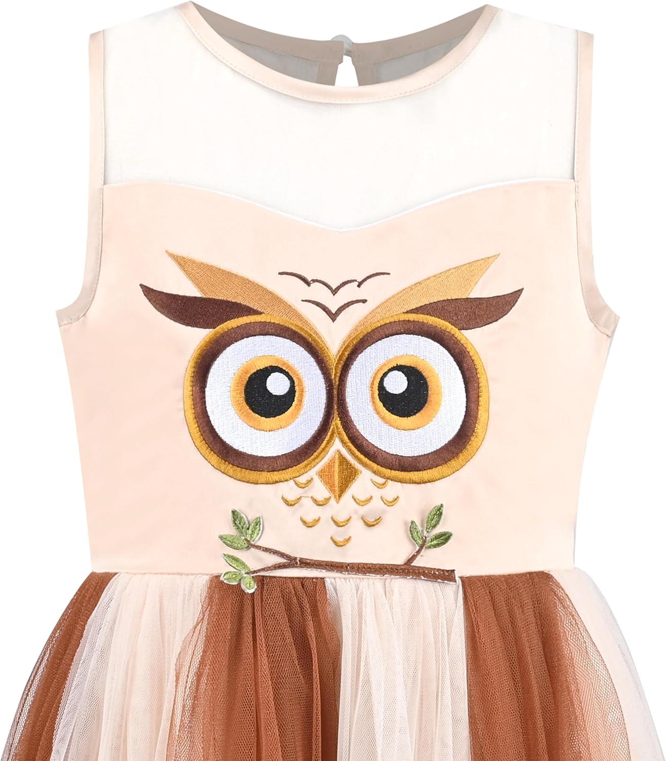 - Sunny Fashion Flower Girls Dress Unicorn Rainbow Pageant Princess Party(Brown Owl)