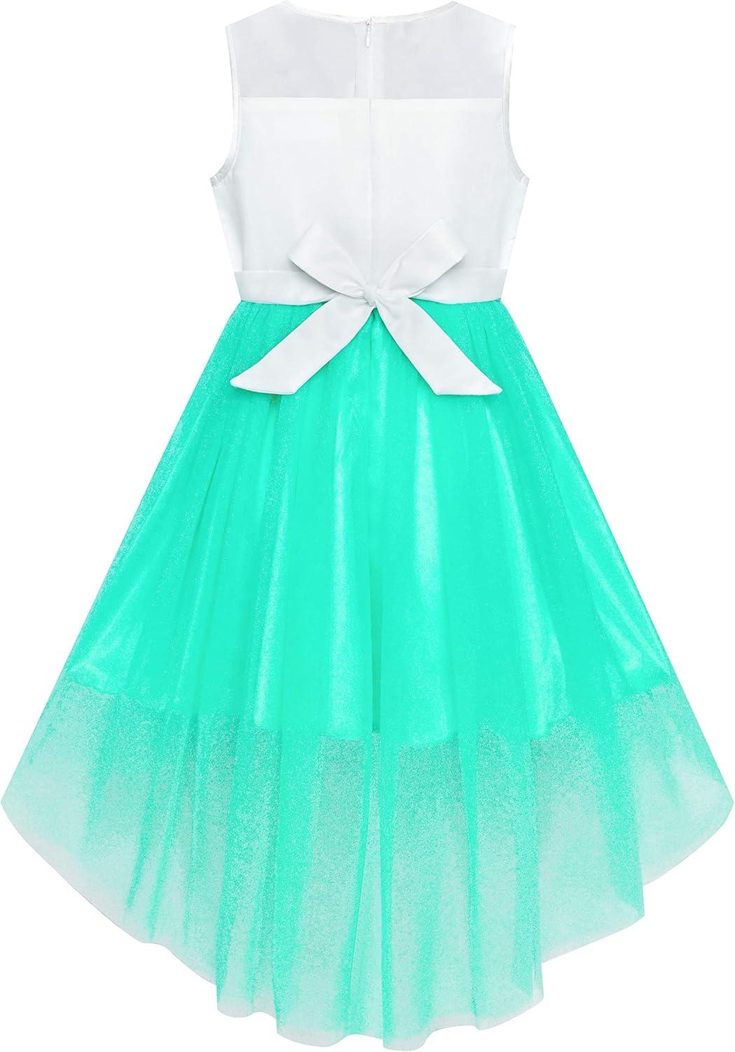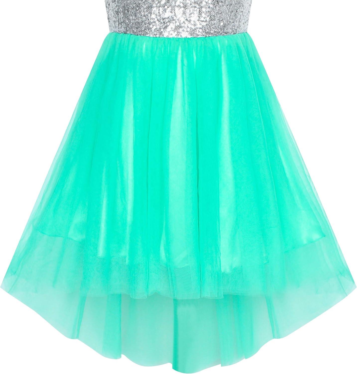 - Sunny Fashion Flower Girl Dress Champagne Sequin Hi-Low Wedding Bridesmaid(Turquoise Green)