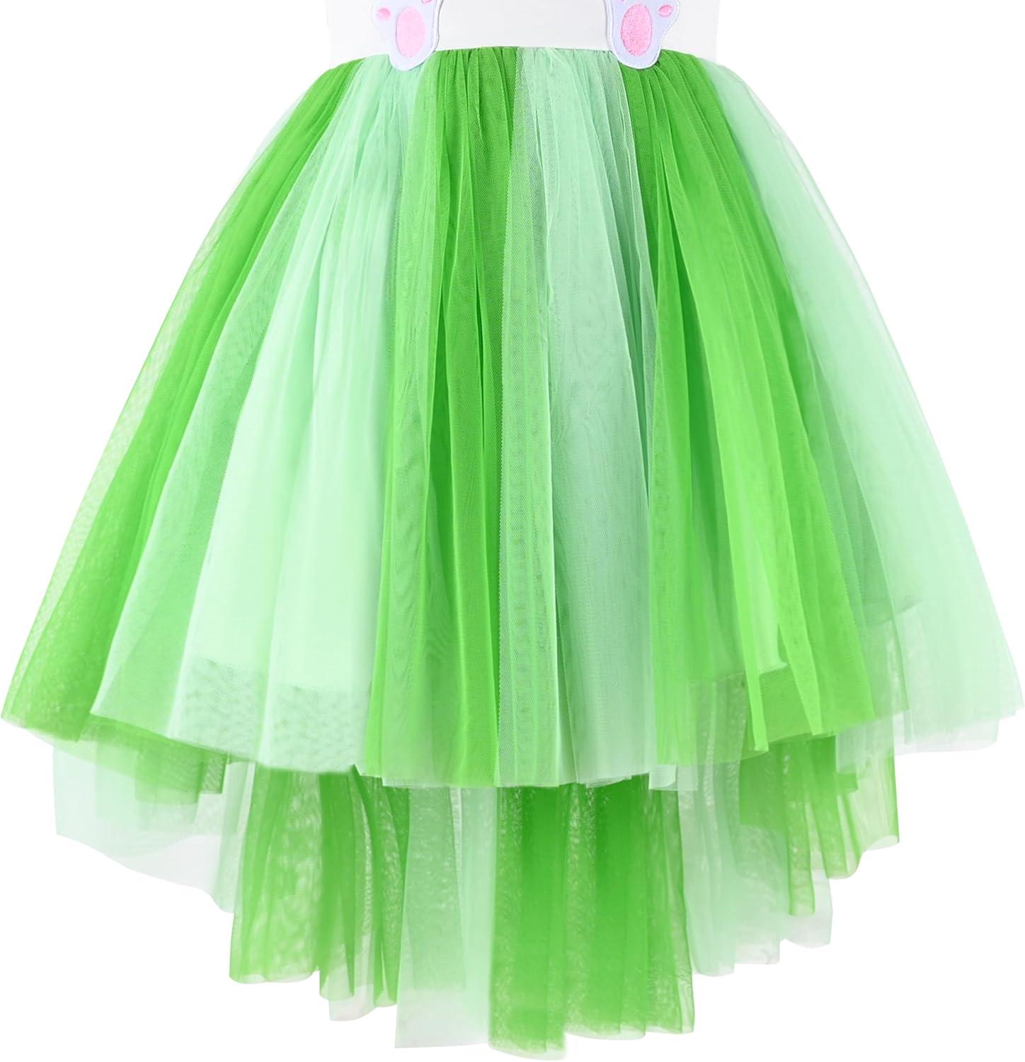 - Sunny Fashion Flower Girls Dress Unicorn Rainbow Pageant Princess Party(Green Bunny)
