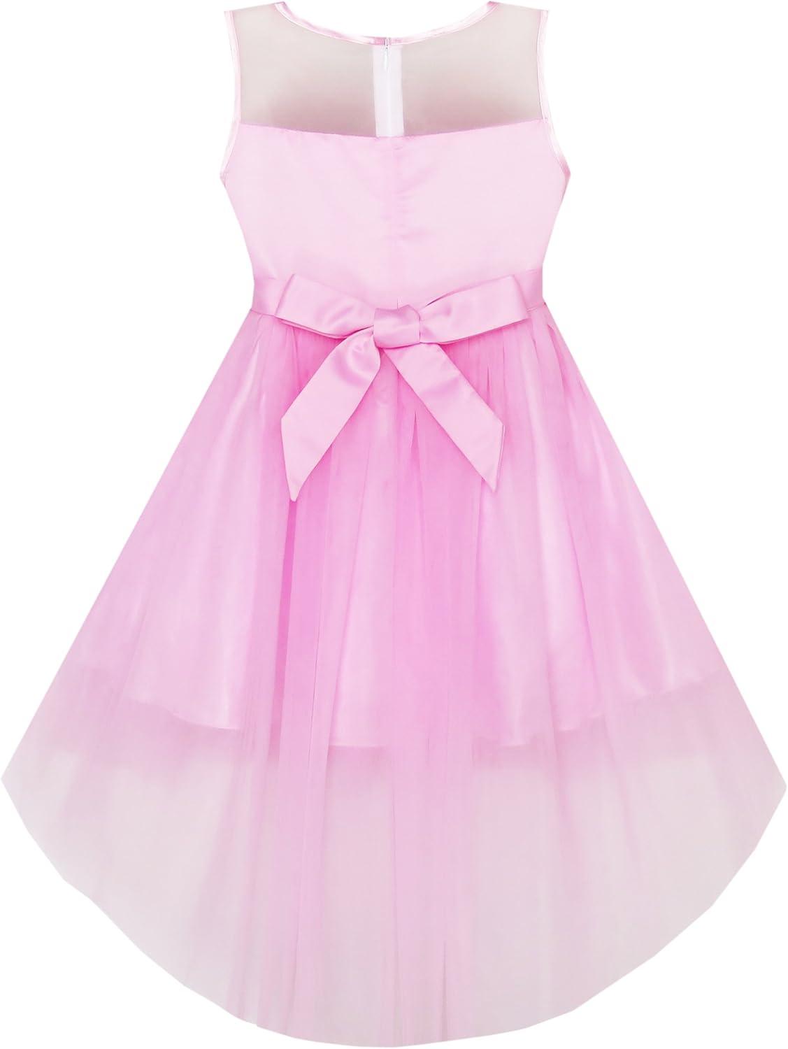 - Sunny Fashion Flower Girl Dress Champagne Sequin Hi-Low Wedding Bridesmaid(Pink)