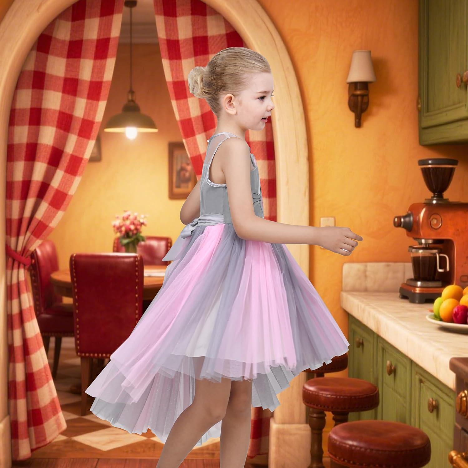 - Sunny Fashion Flower Girls Dress Unicorn Rainbow Pageant Princess Party(Pink Grey Mouse)