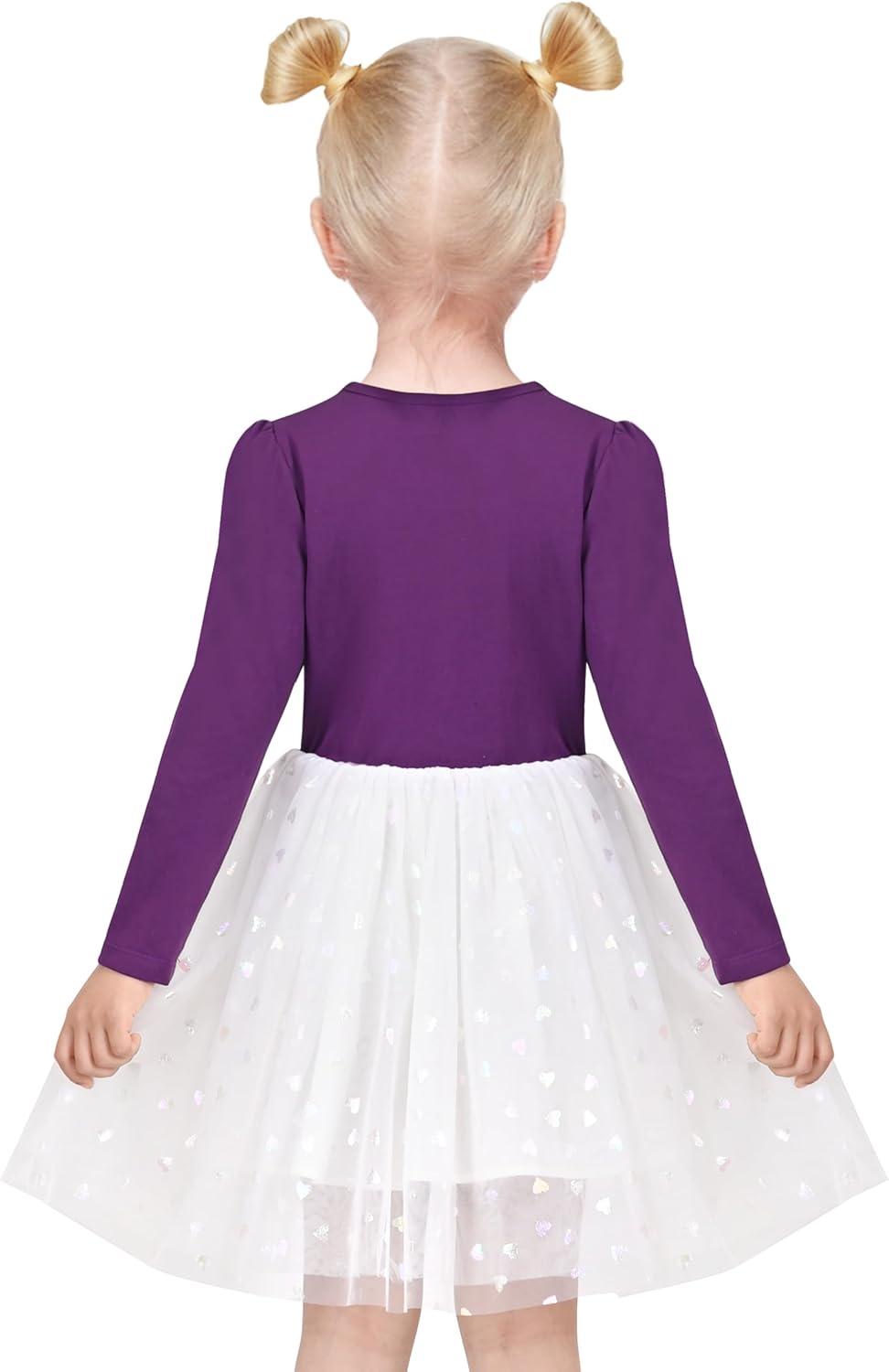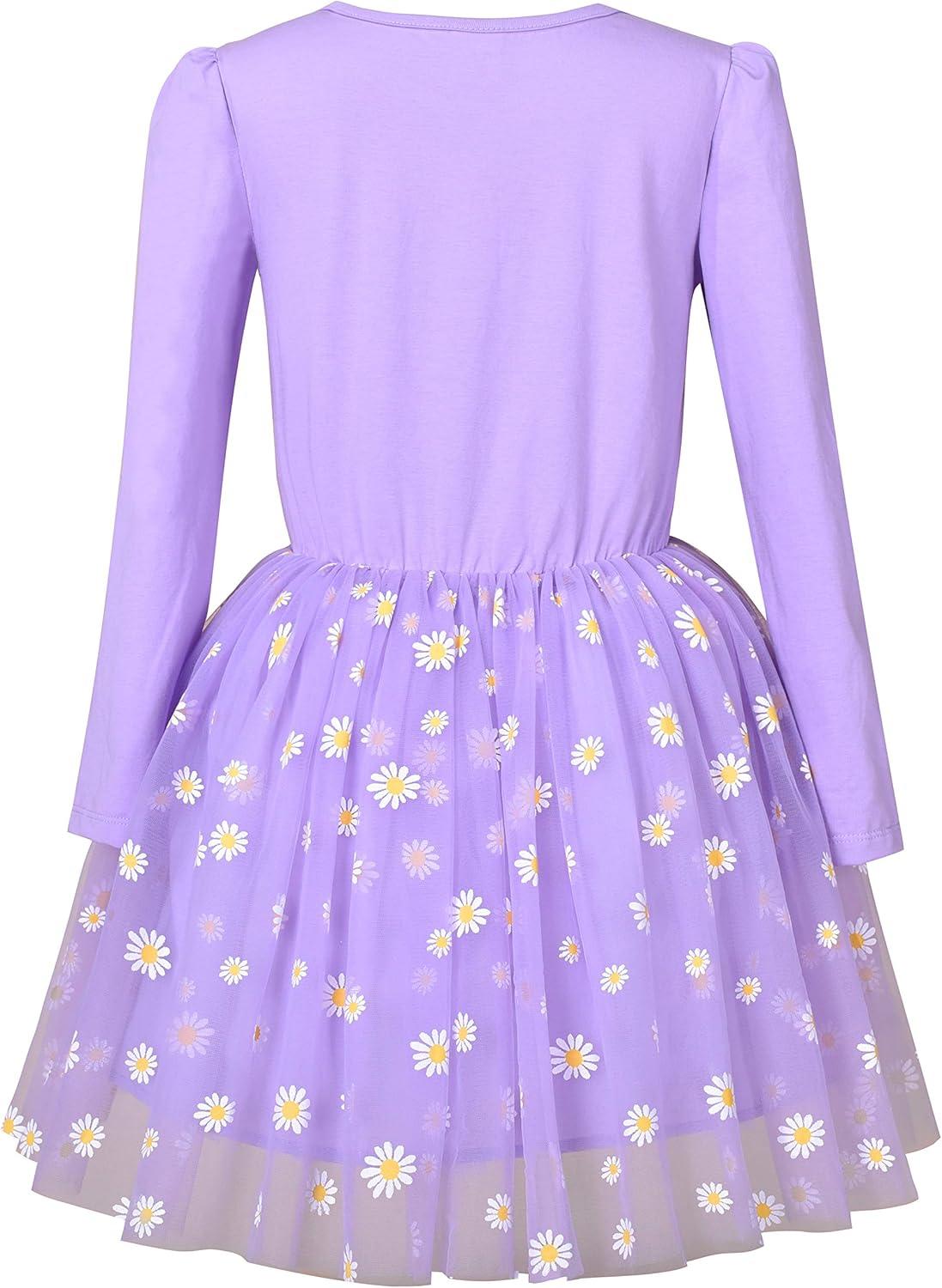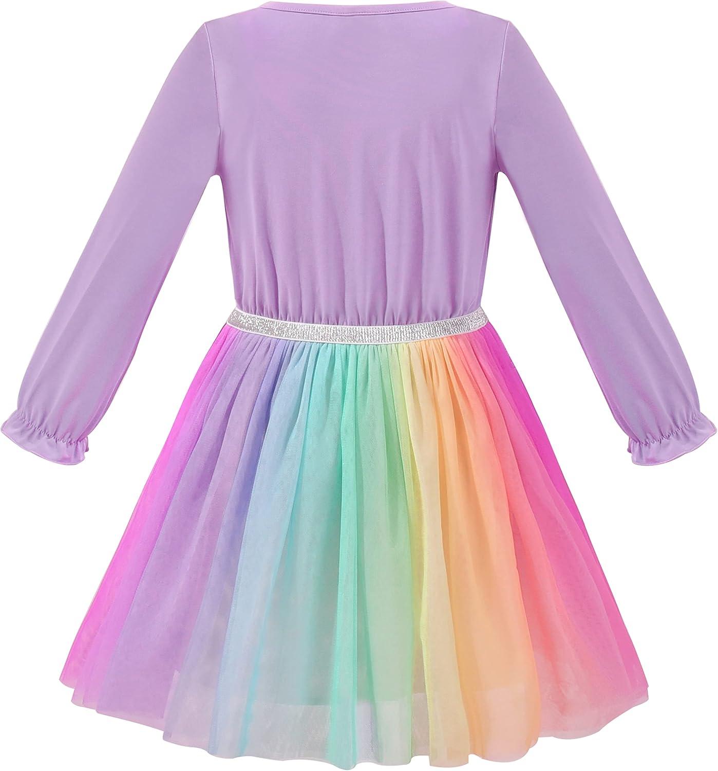- Sunny Fashion Girls Dress Unicorn Rainbow Long Sleeve Casual Dress Size 3-8(Purple Lace)