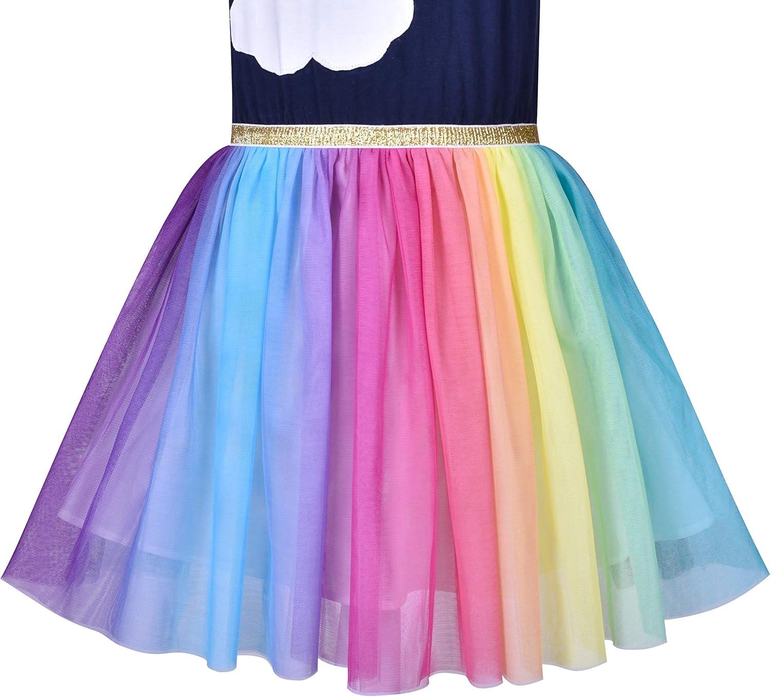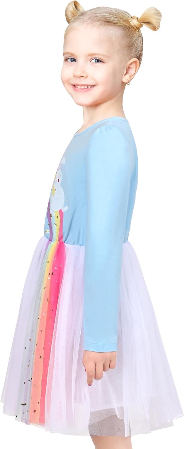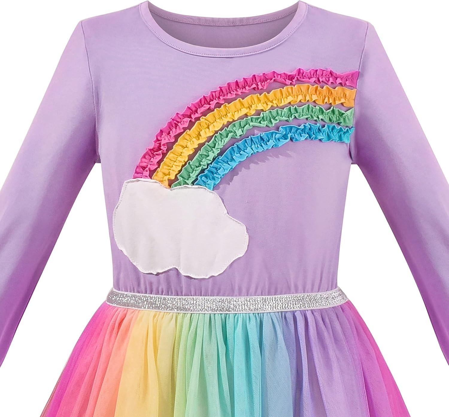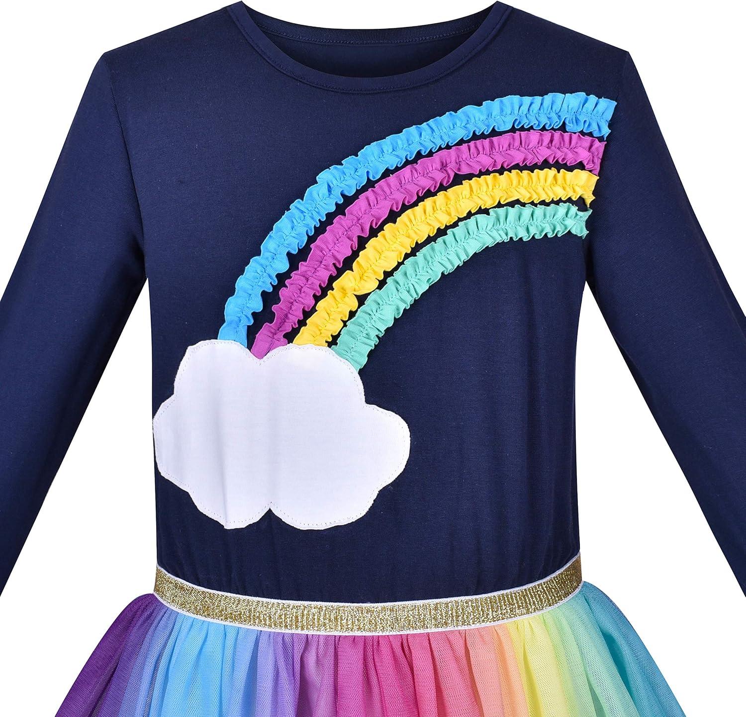 - Sunny Fashion Girls Dress Unicorn Rainbow Long Sleeve Casual Dress Size 3-8(Blue Rainbow Cloud)