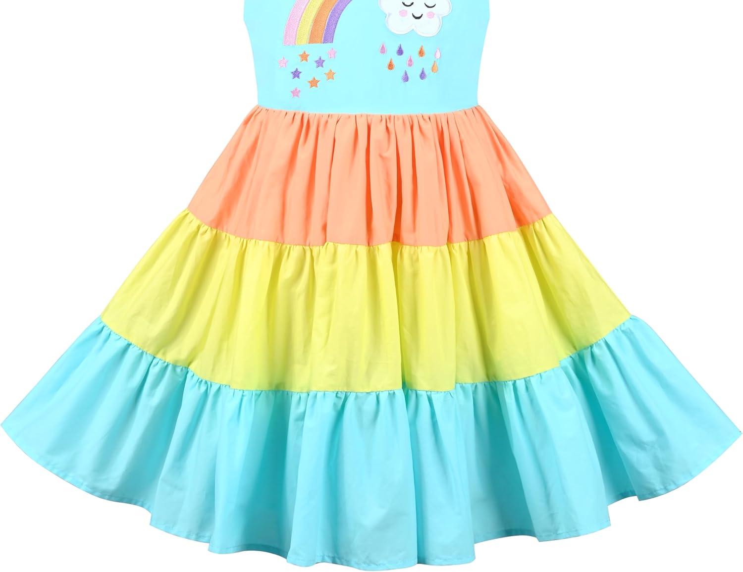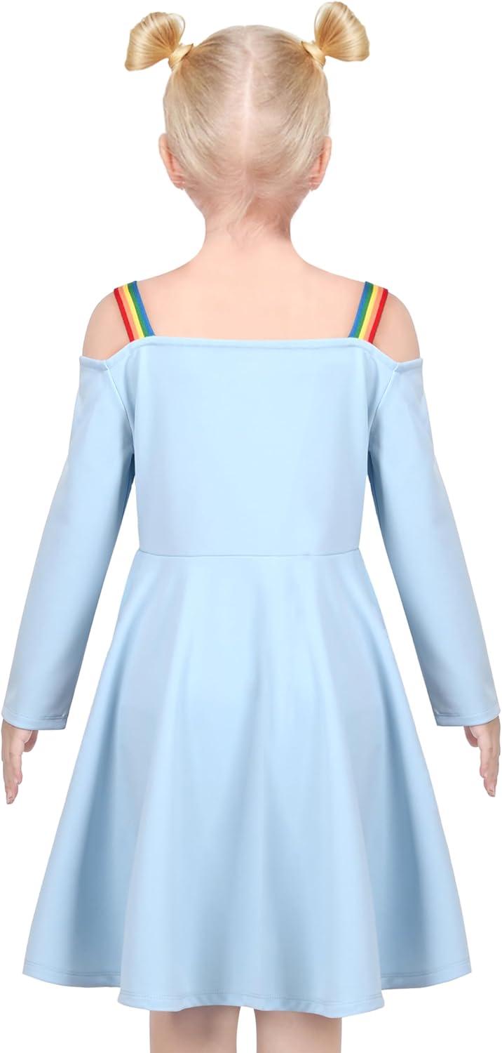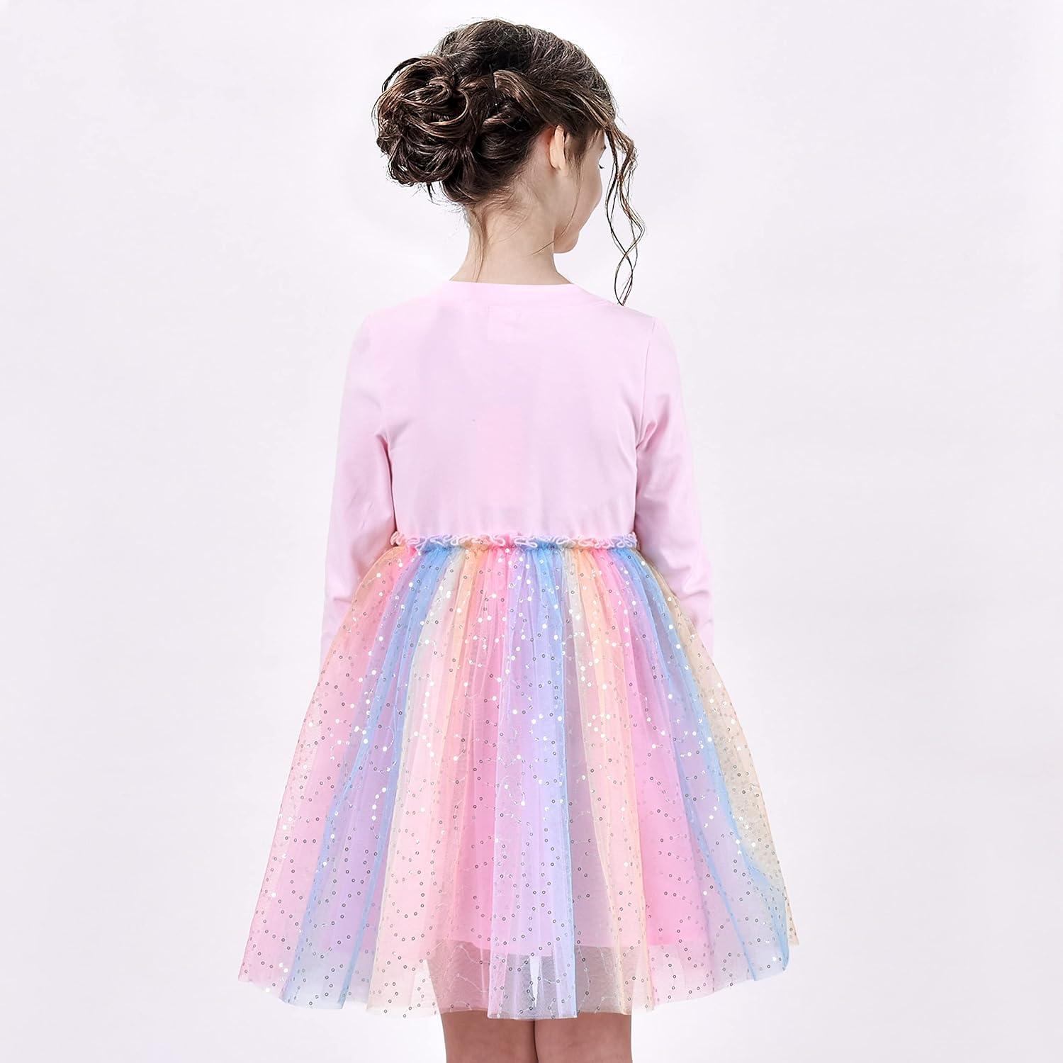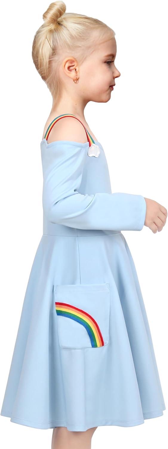 - Sunny Fashion Girls Dress Unicorn Rainbow Long Sleeve Casual Dress Size 3-8(Blue Rainbow Cloud)