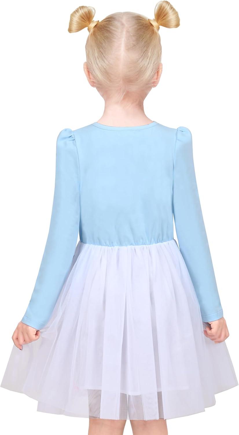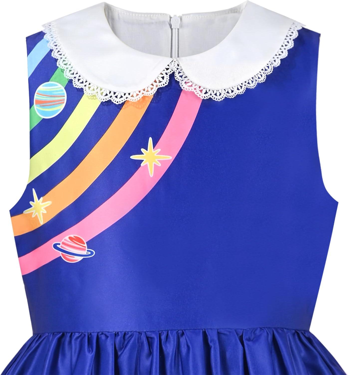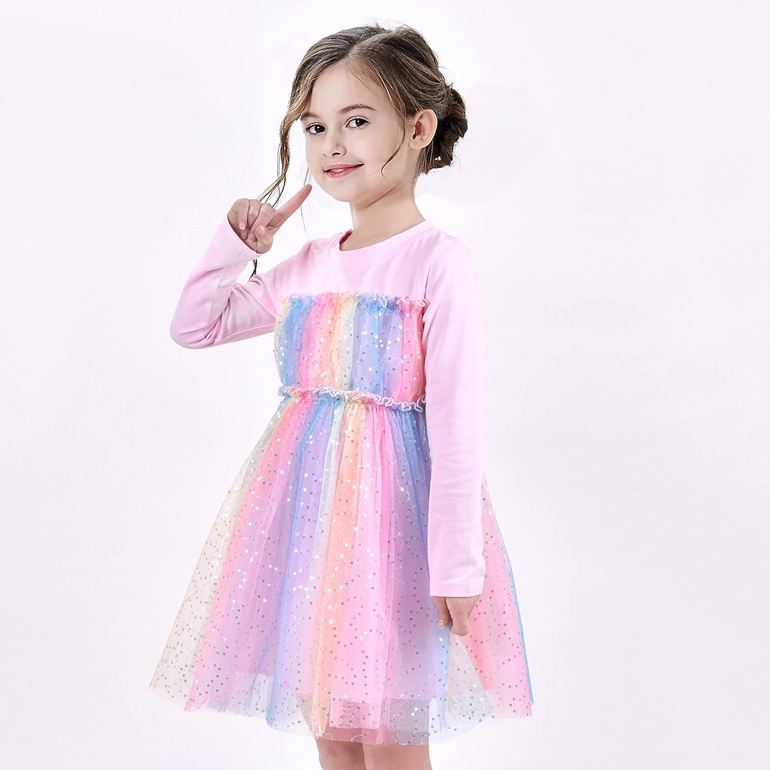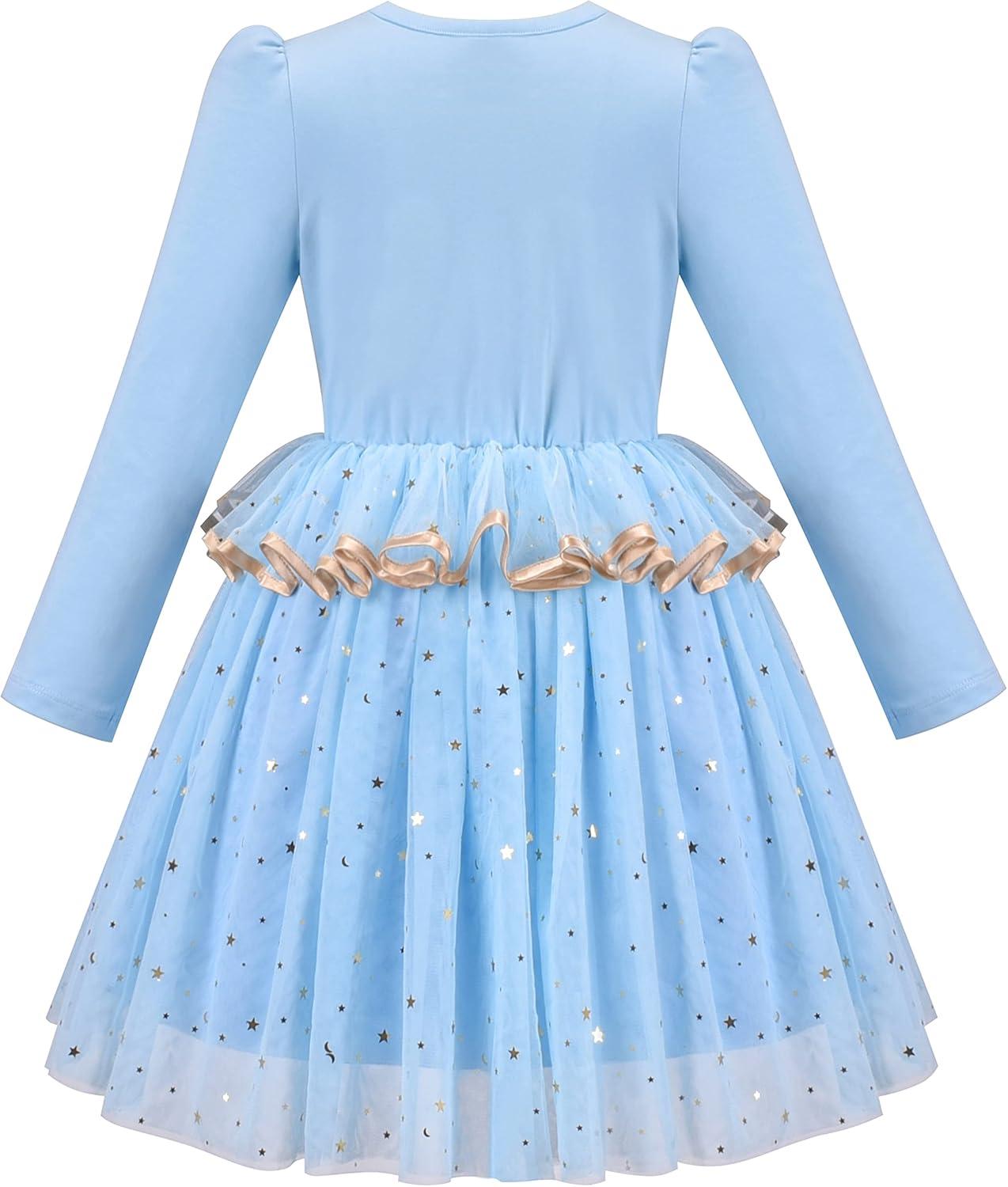 - Sunny Fashion Girls Dress Unicorn Rainbow Long Sleeve Casual Dress Size 3-8(Blue Rainbow Cloud)