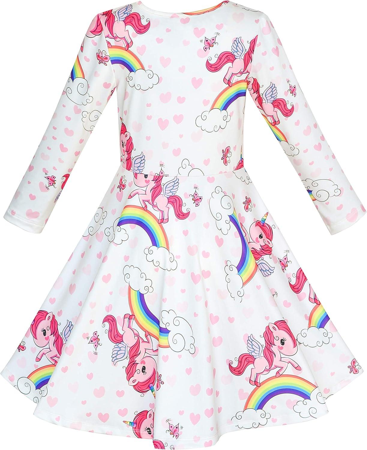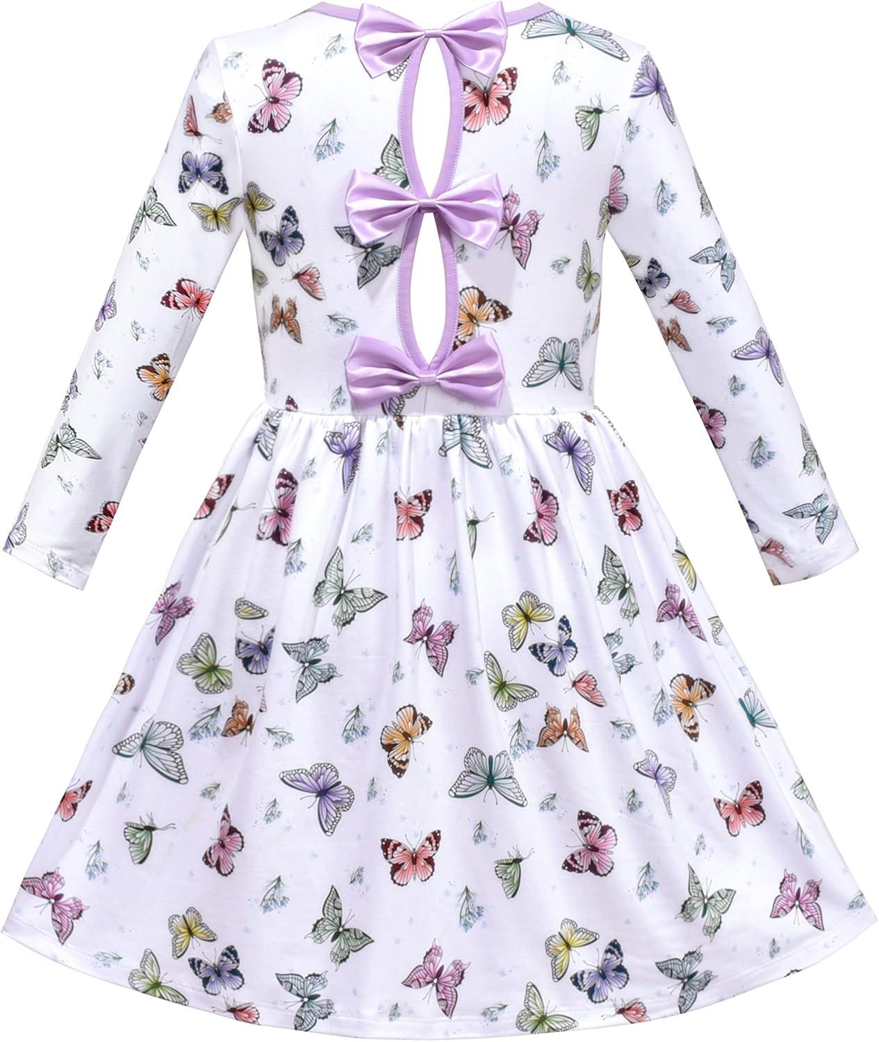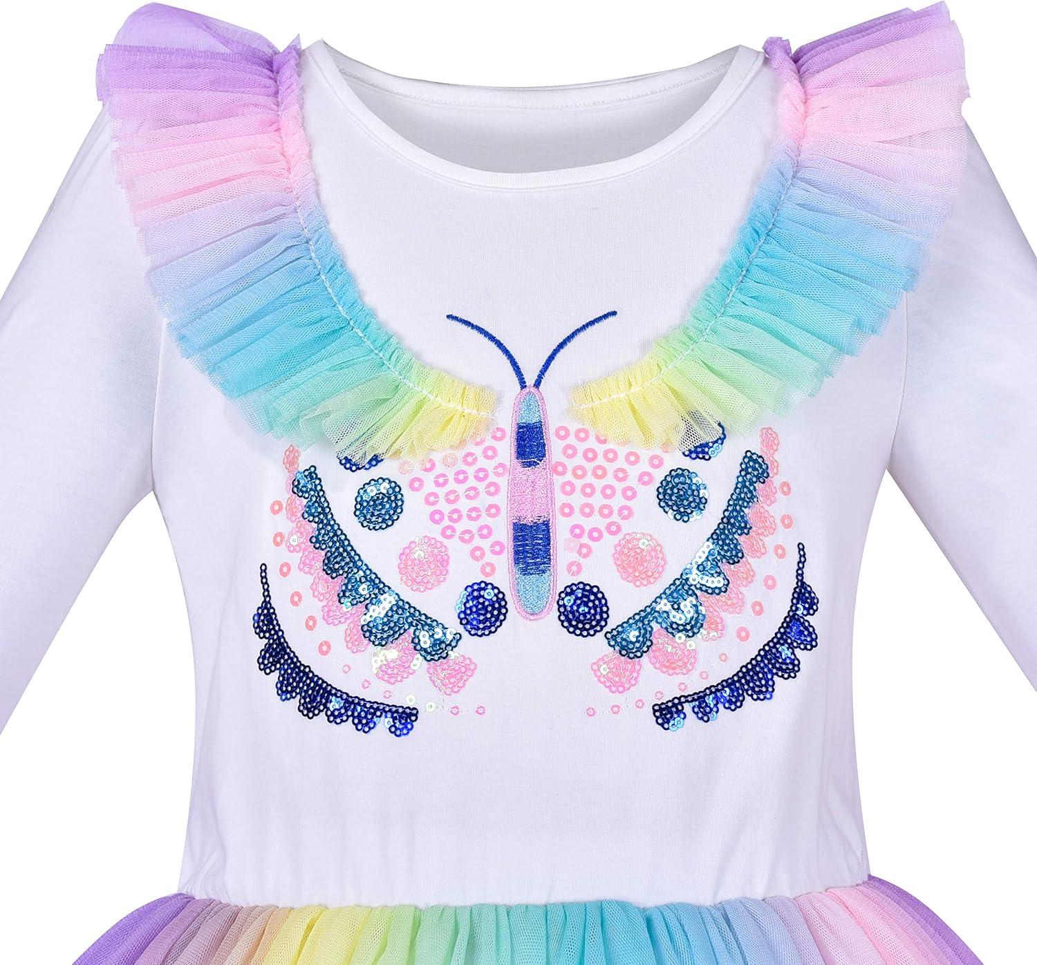 - Sunny Fashion Girls Dress Unicorn Rainbow Long Sleeve Casual Dress Size 3-8(White Butterfly)