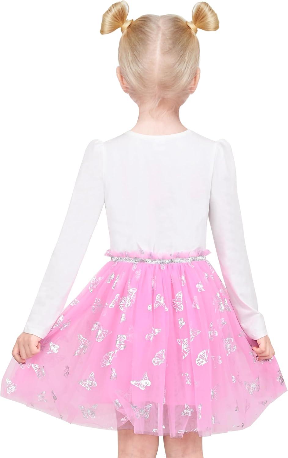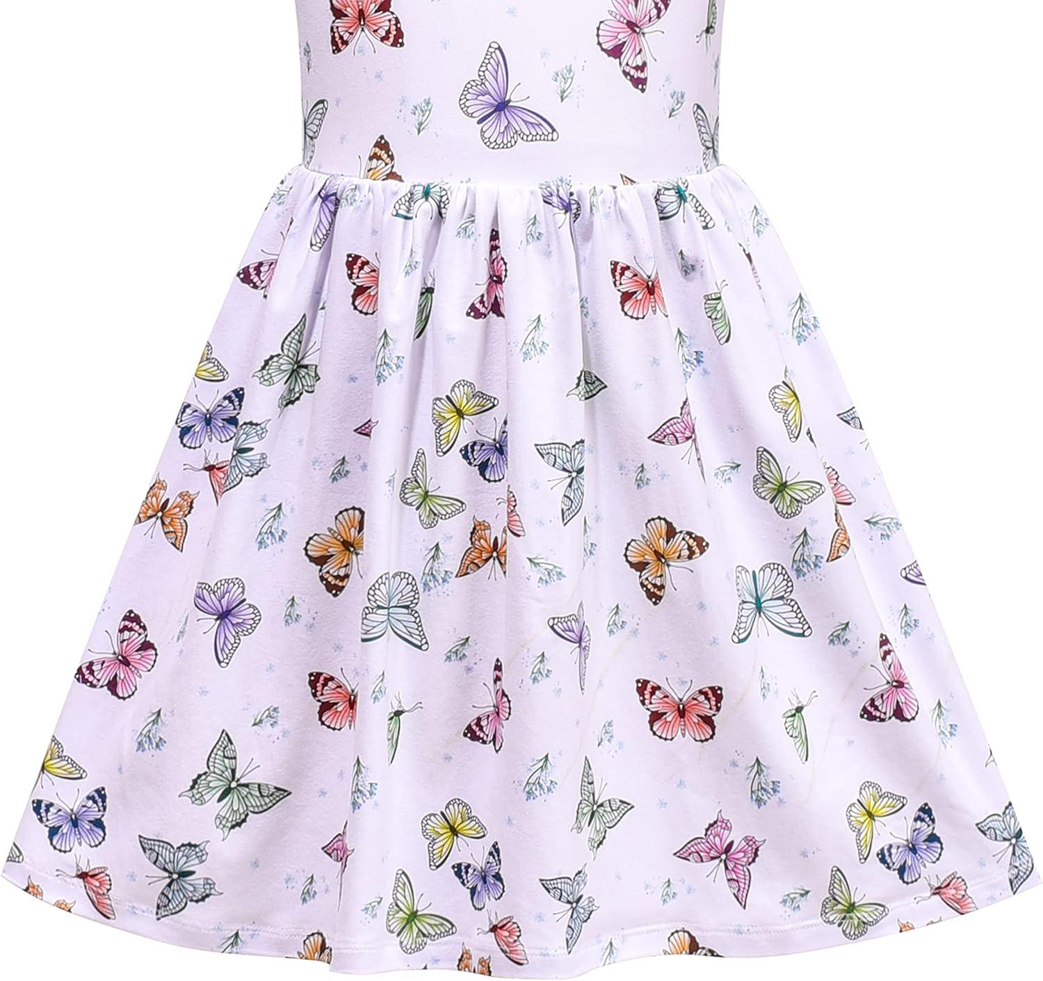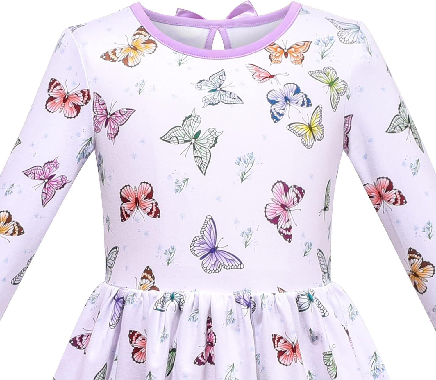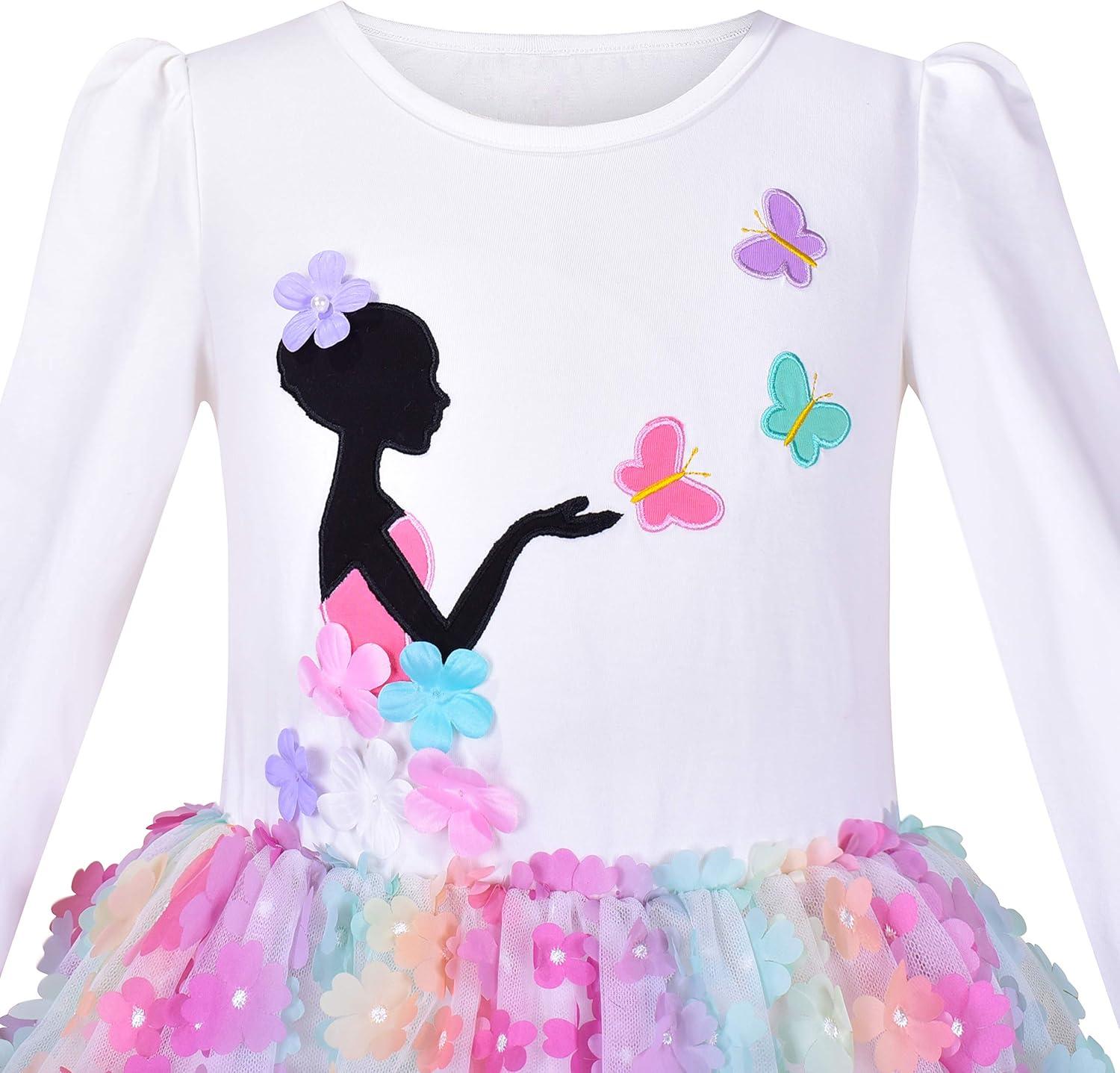 - Sunny Fashion Girls Dress Unicorn Rainbow Long Sleeve Casual Dress Size 3-8(White Butterfly)