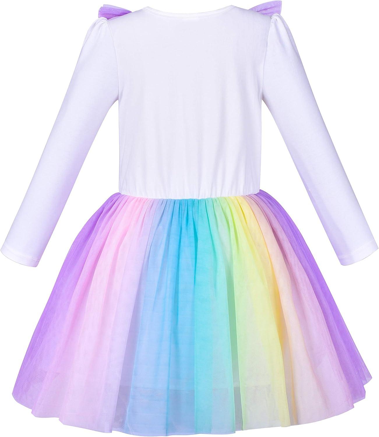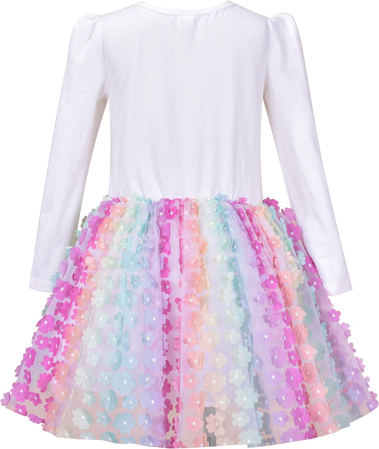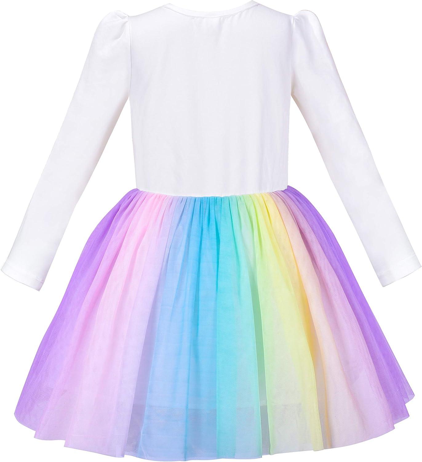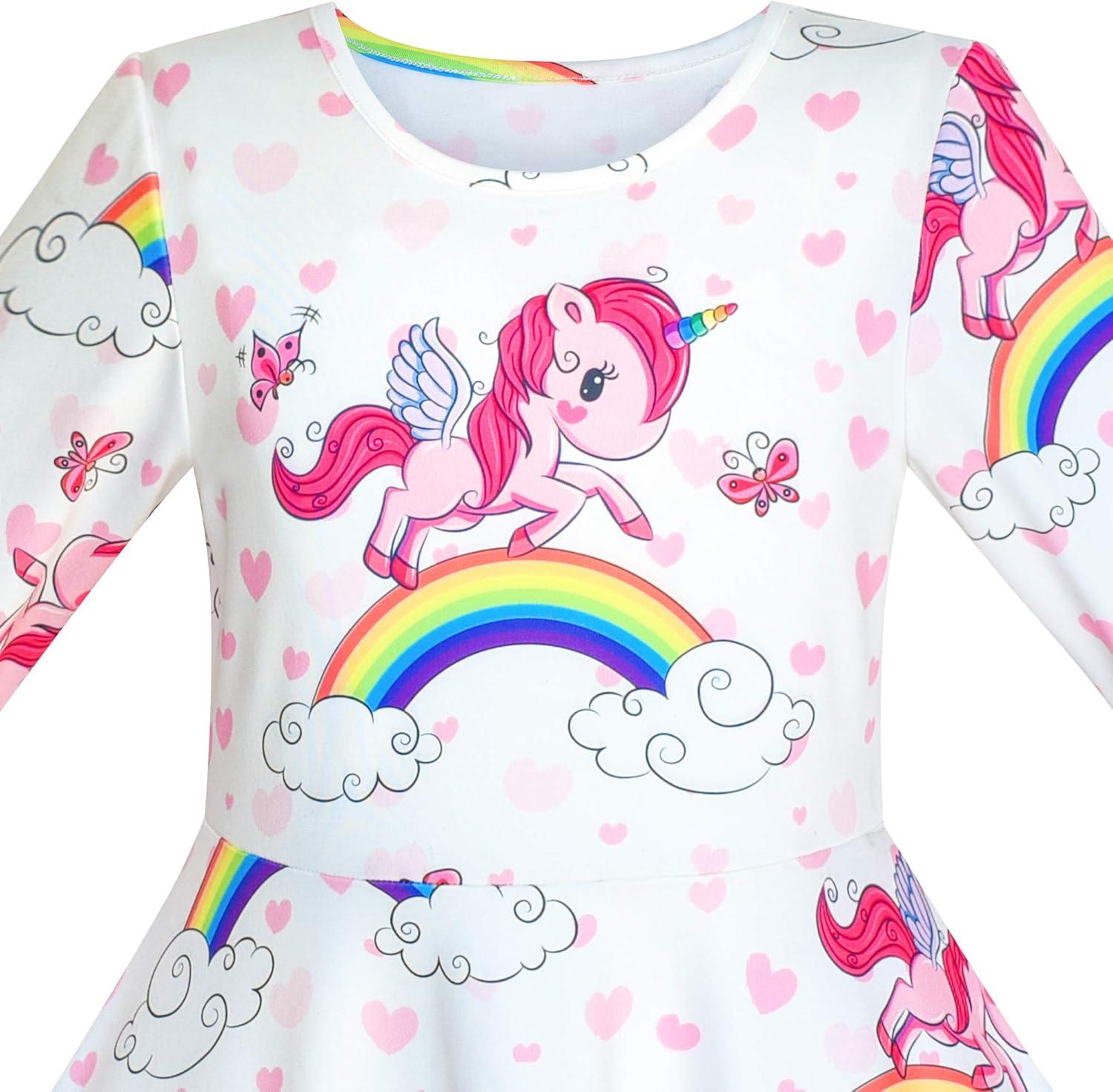 - Sunny Fashion Girls Dress Unicorn Rainbow Long Sleeve Casual Dress Size 3-8(White)