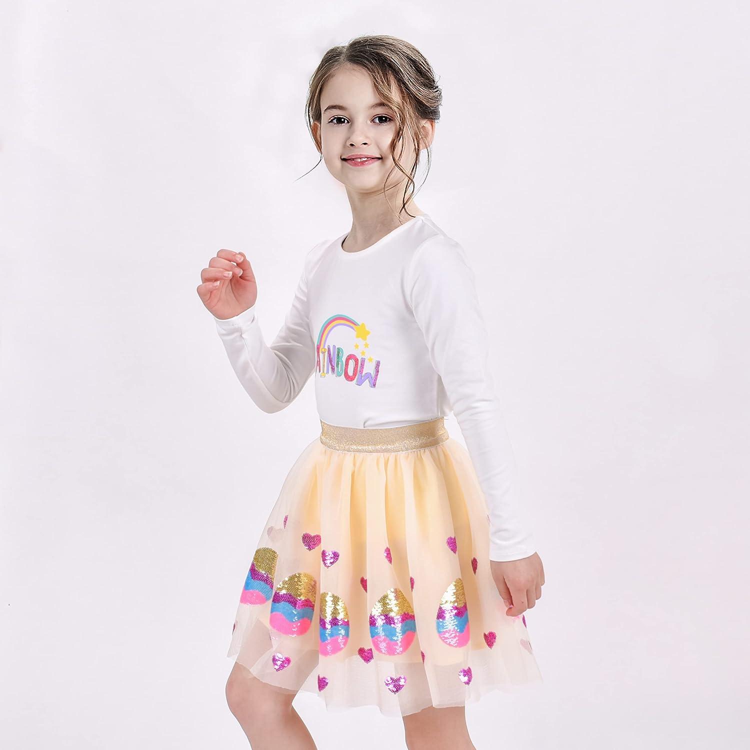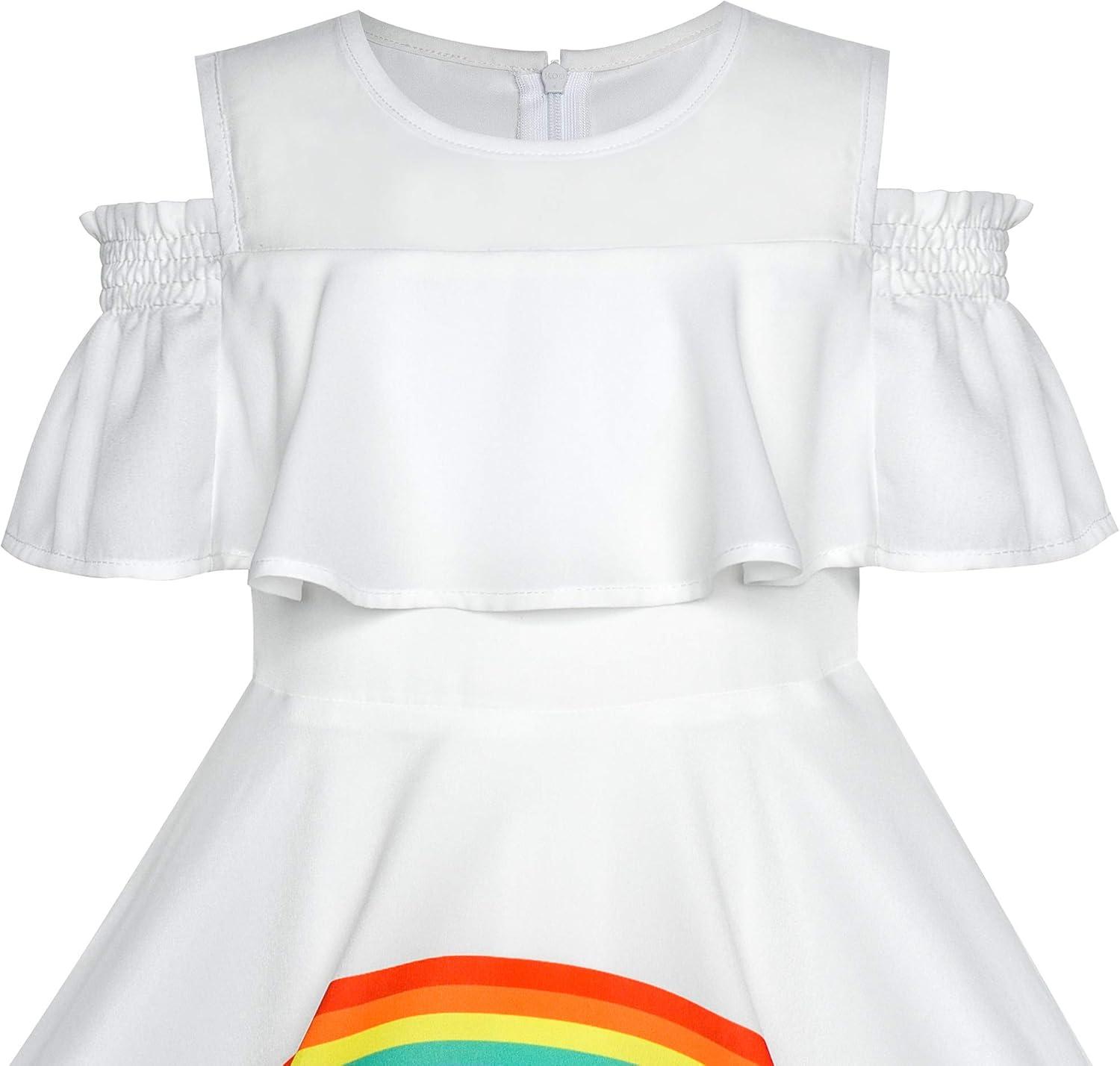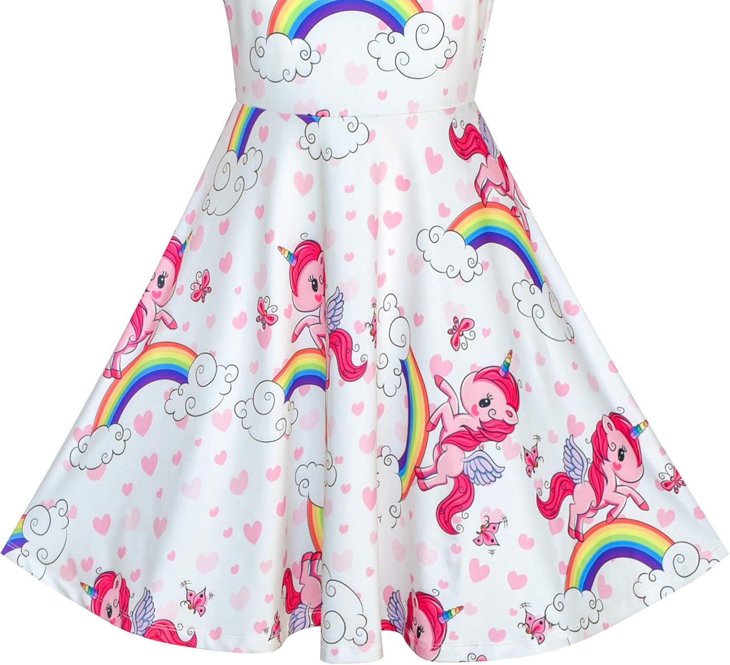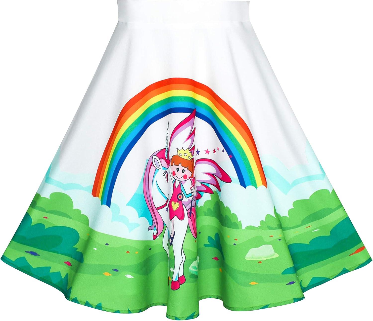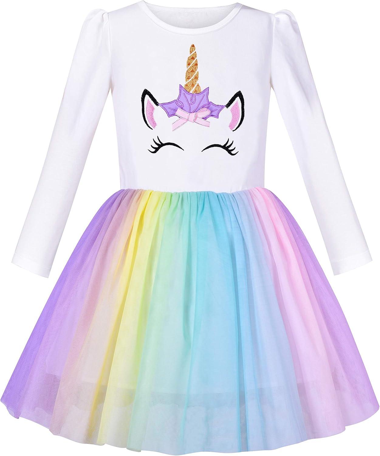 - Sunny Fashion Girls Dress Unicorn Rainbow Long Sleeve Casual Dress Size 3-8(White)