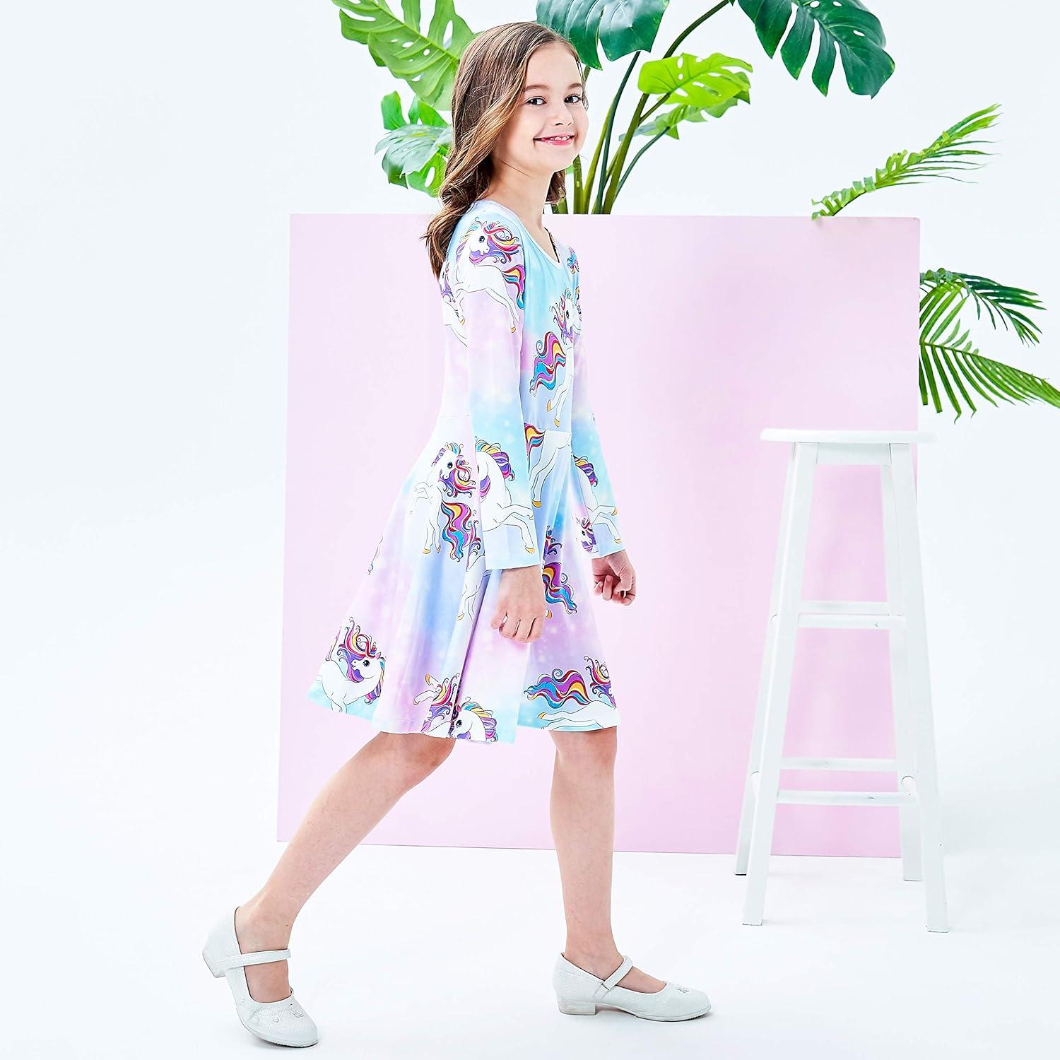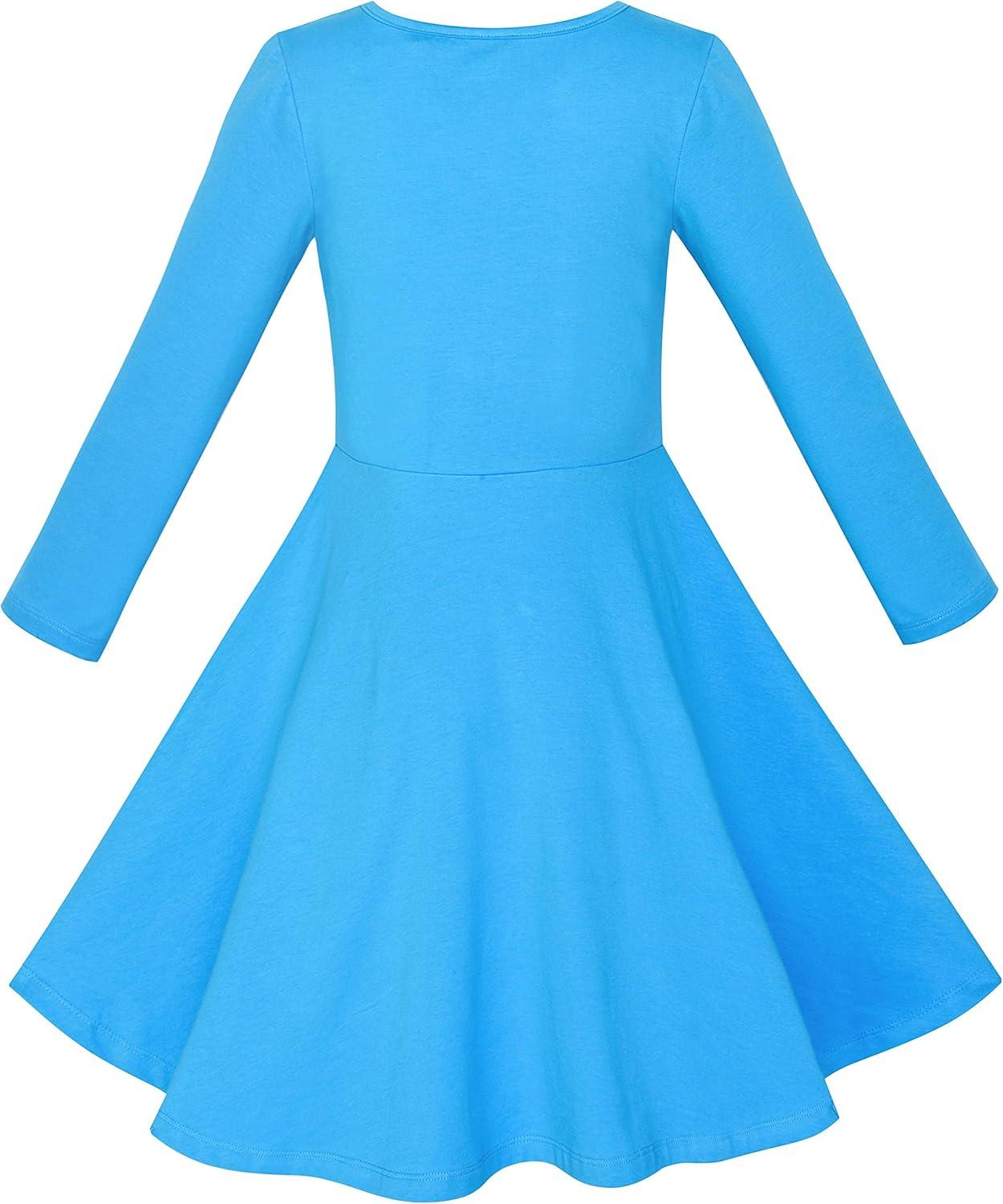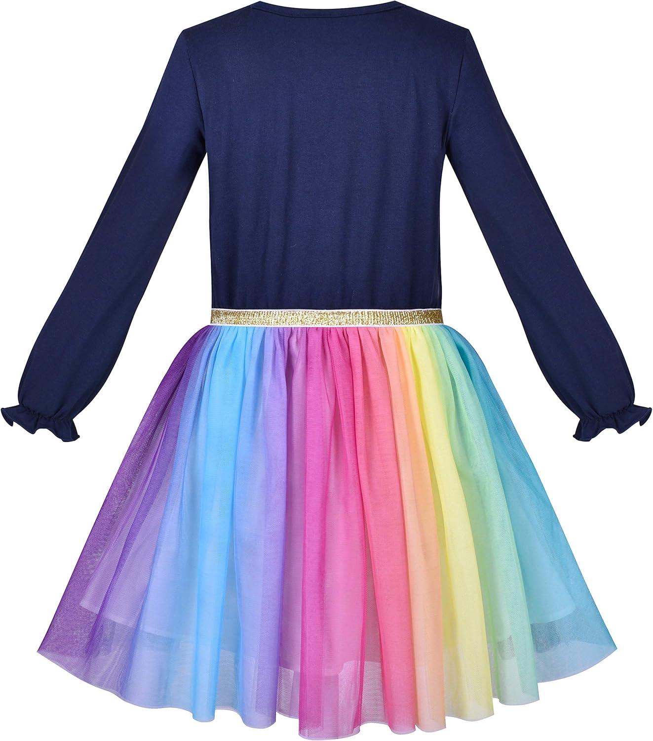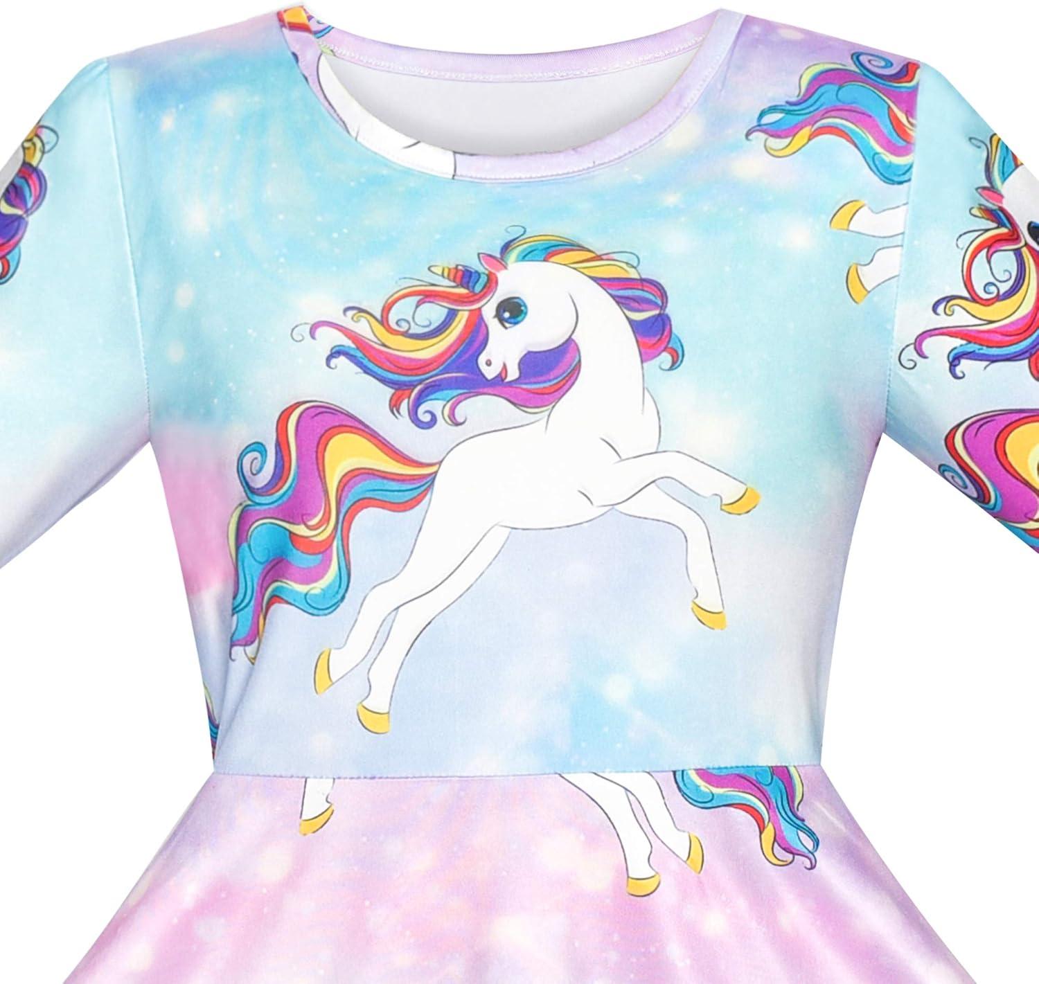 - Sunny Fashion Girls Dress Unicorn Rainbow Long Sleeve Casual Dress Size 3-8(Blue)