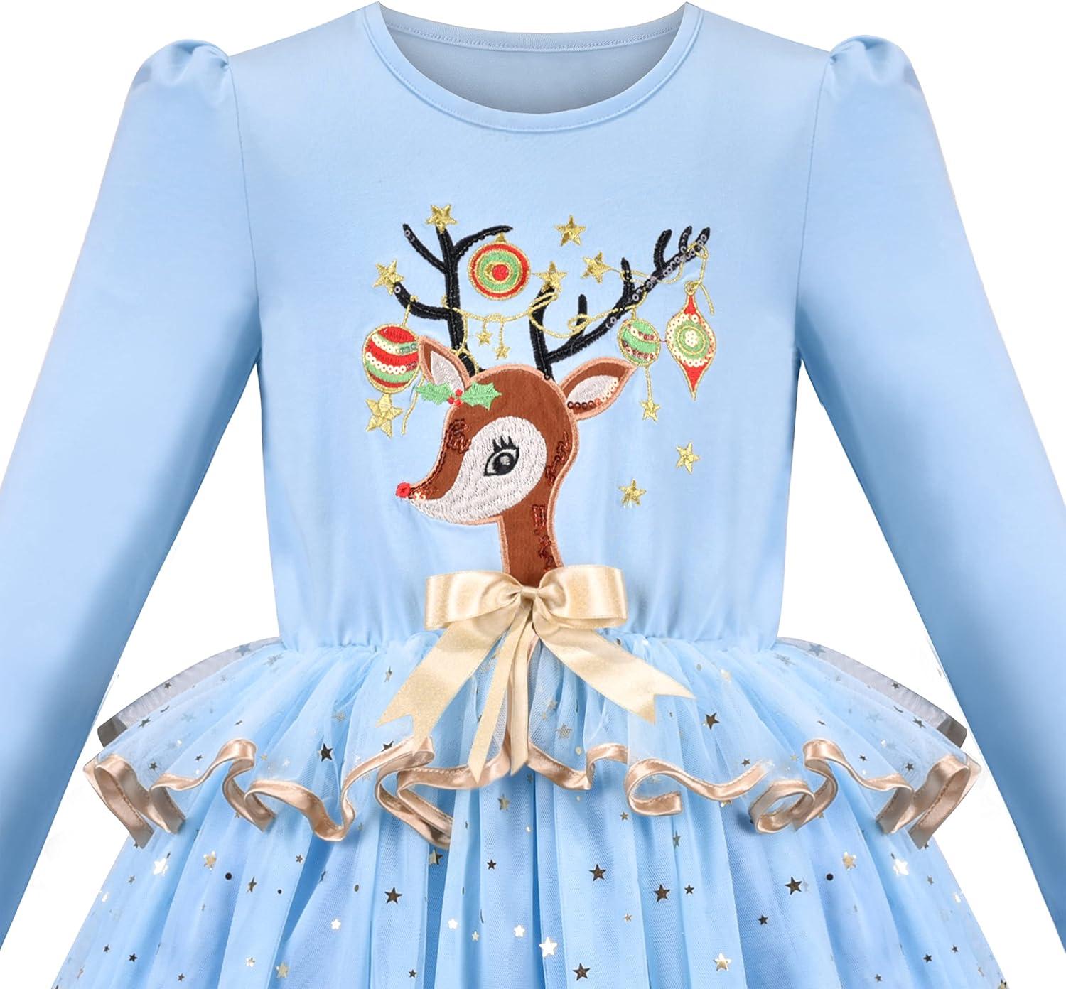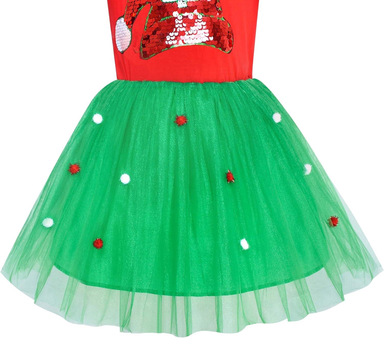 - Sunny Fashion Girls Dress Christmas Santa Hat Long Sleeve Party Dress Size 6-12(Red Green Reindeer Star)