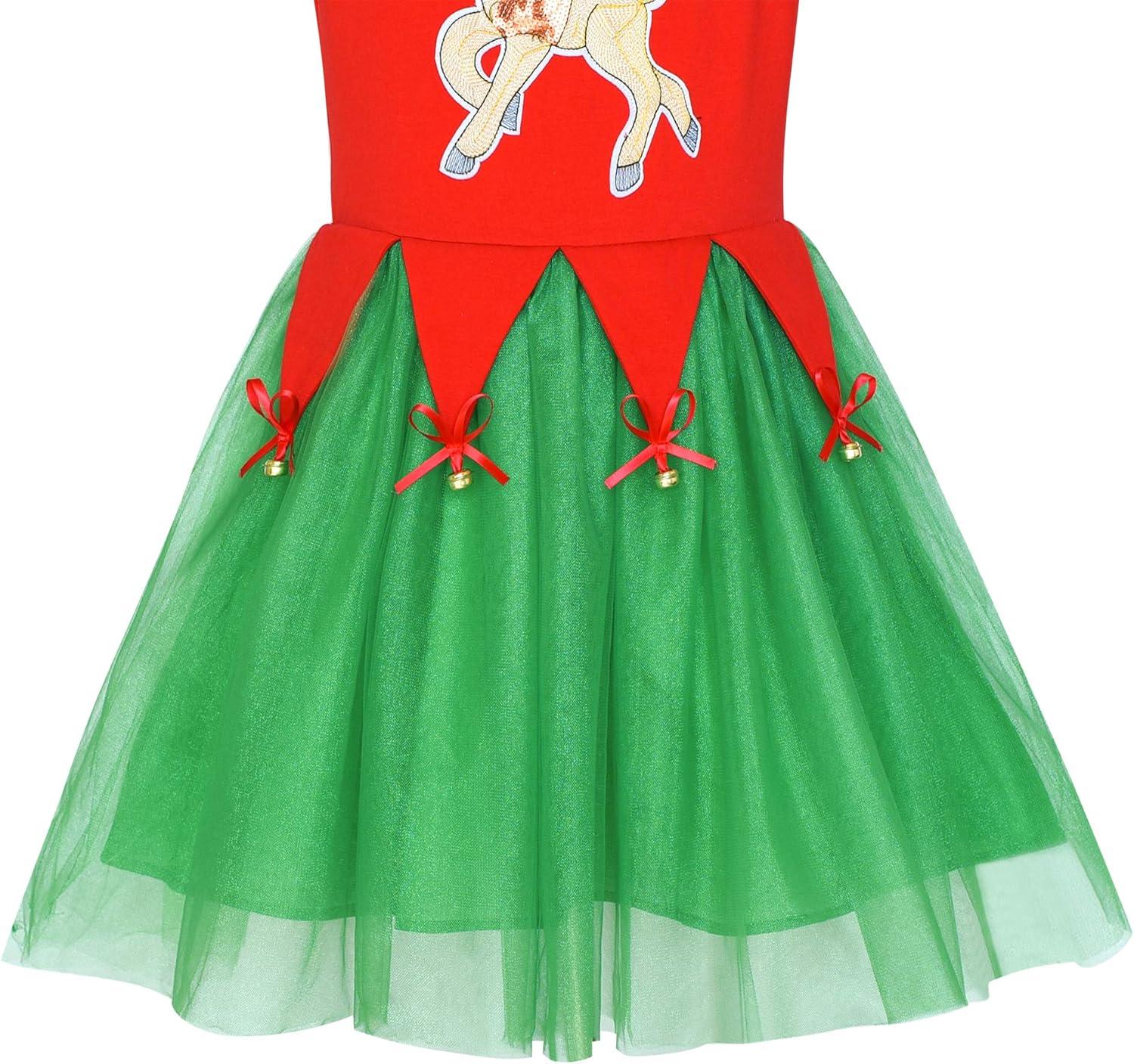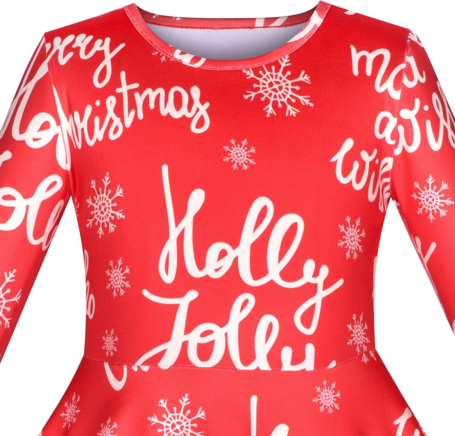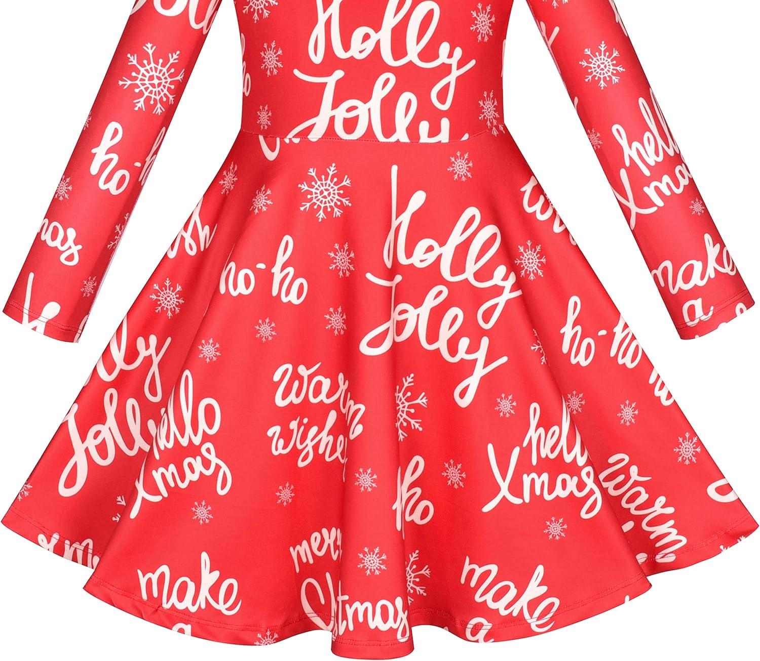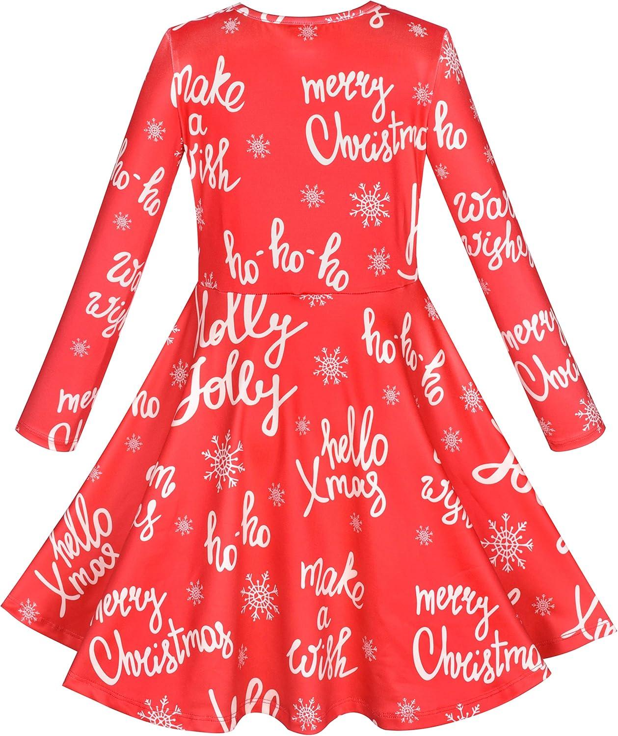 - Sunny Fashion Girls Dress Unicorn Rainbow Long Sleeve Casual Dress Size 3-8(Red Christmas)