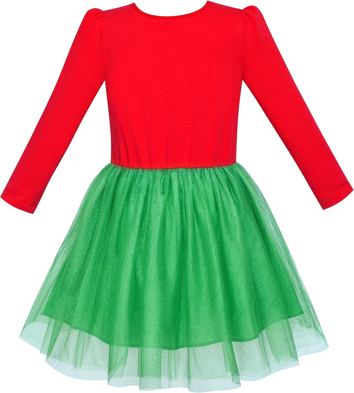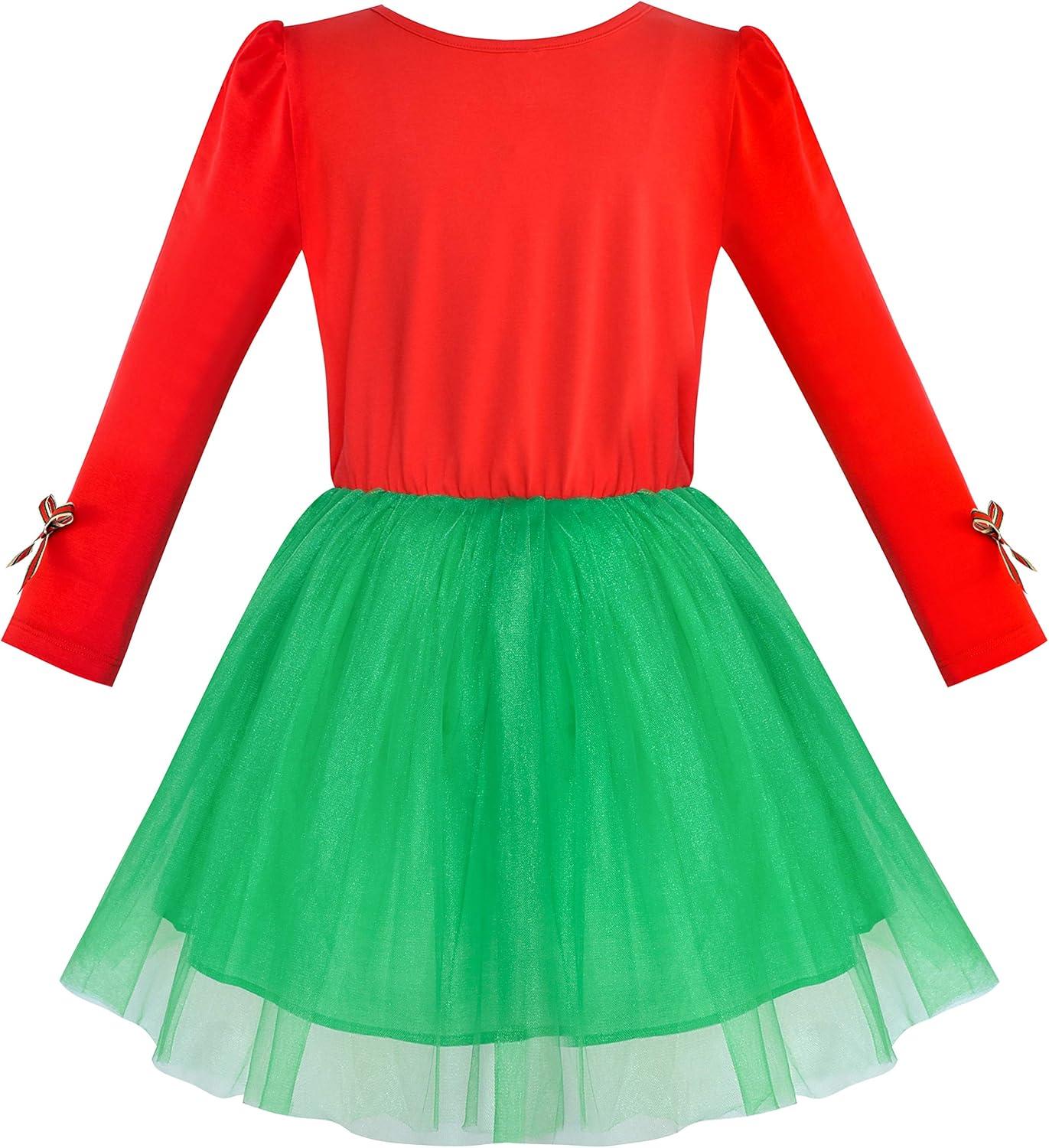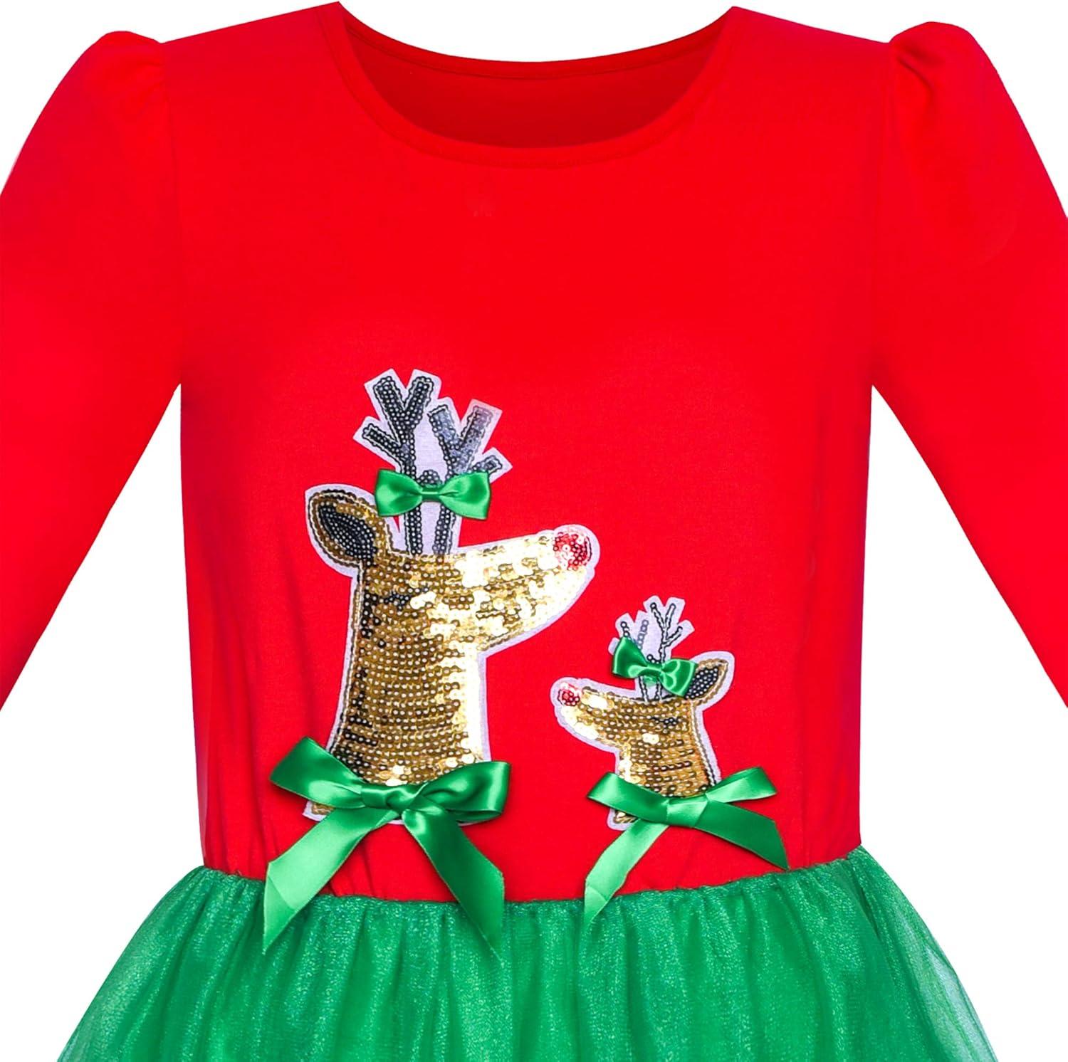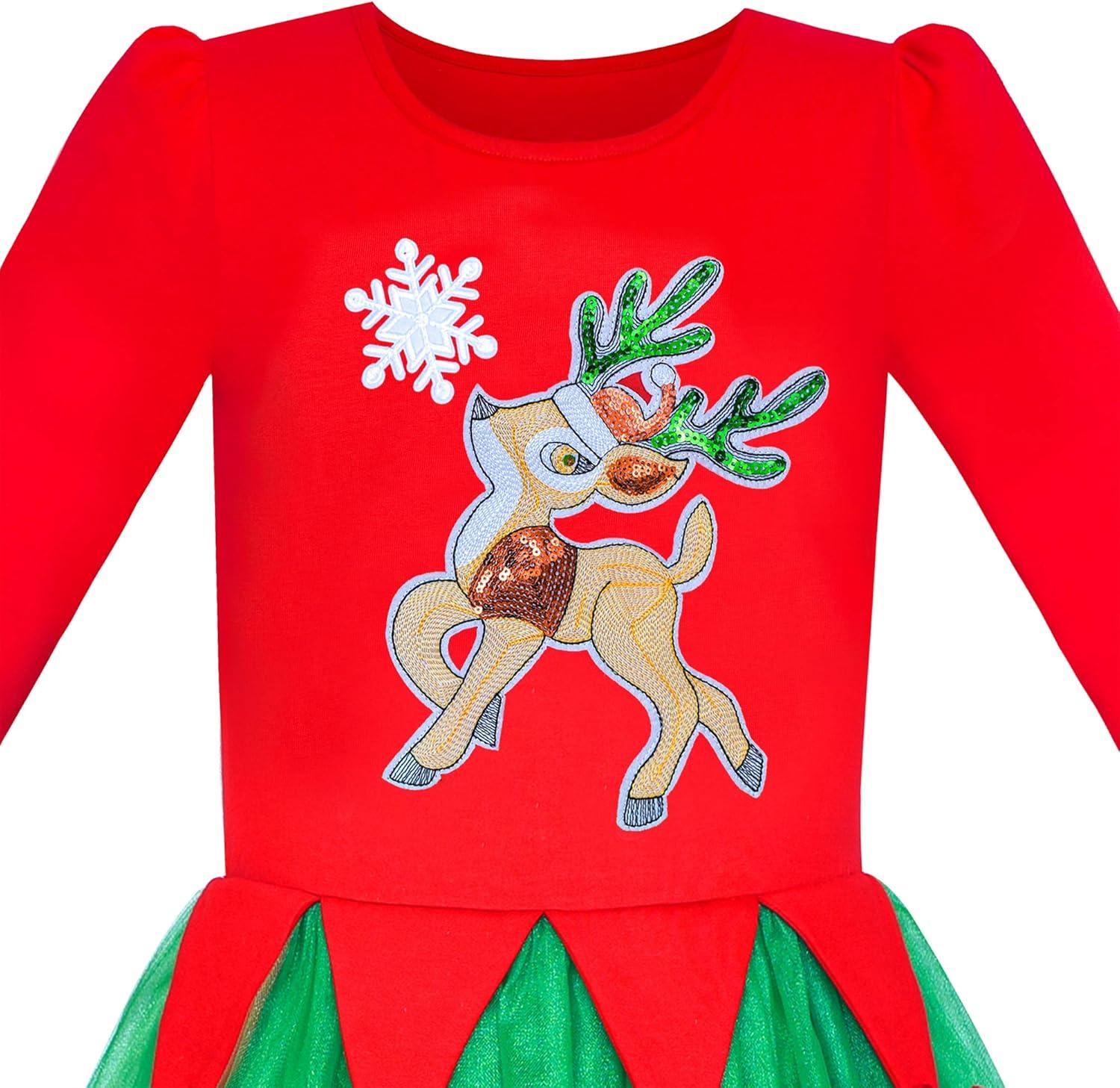- Sunny Fashion Girls Dress Unicorn Rainbow Long Sleeve Casual Dress Size 3-8(Red Christmas)